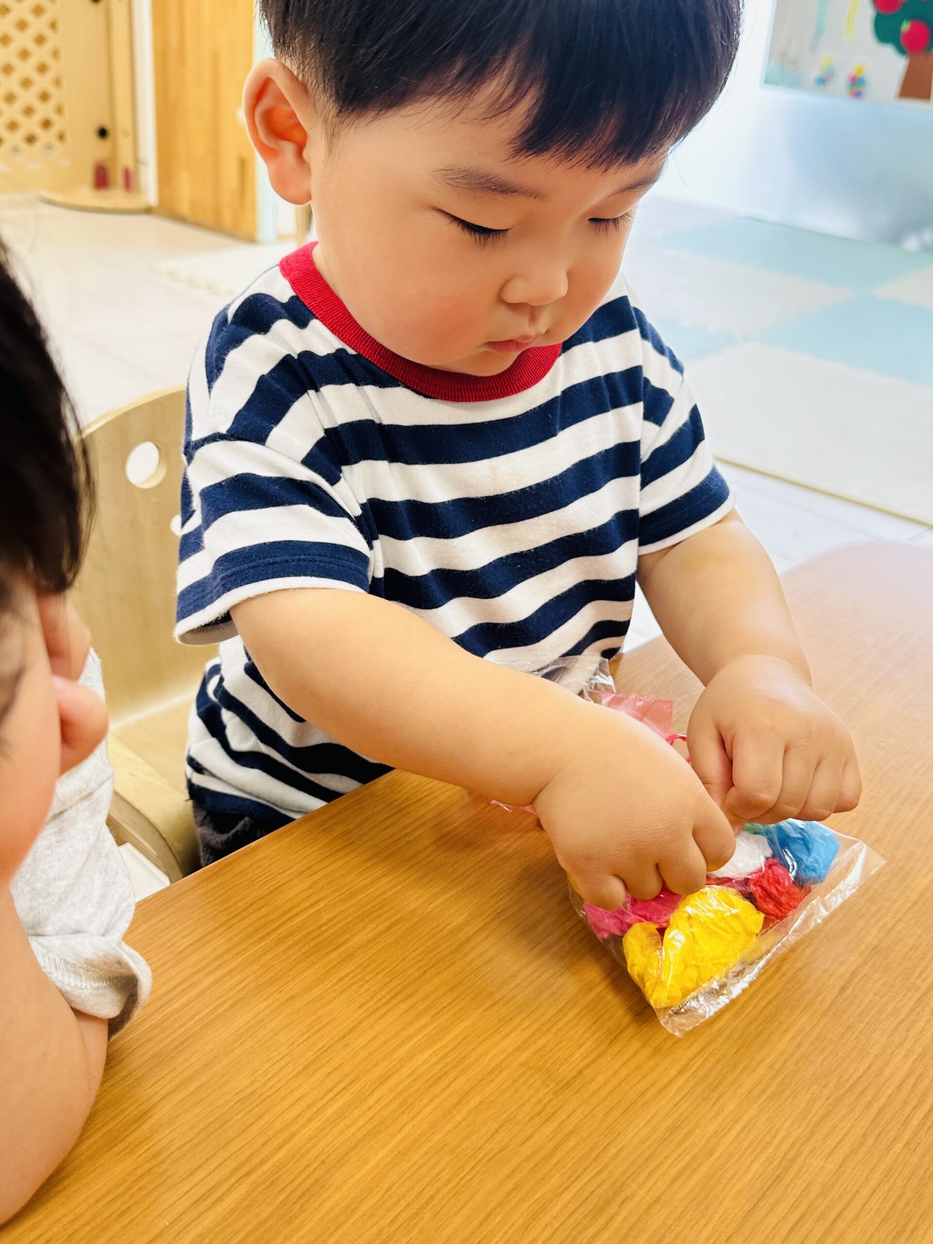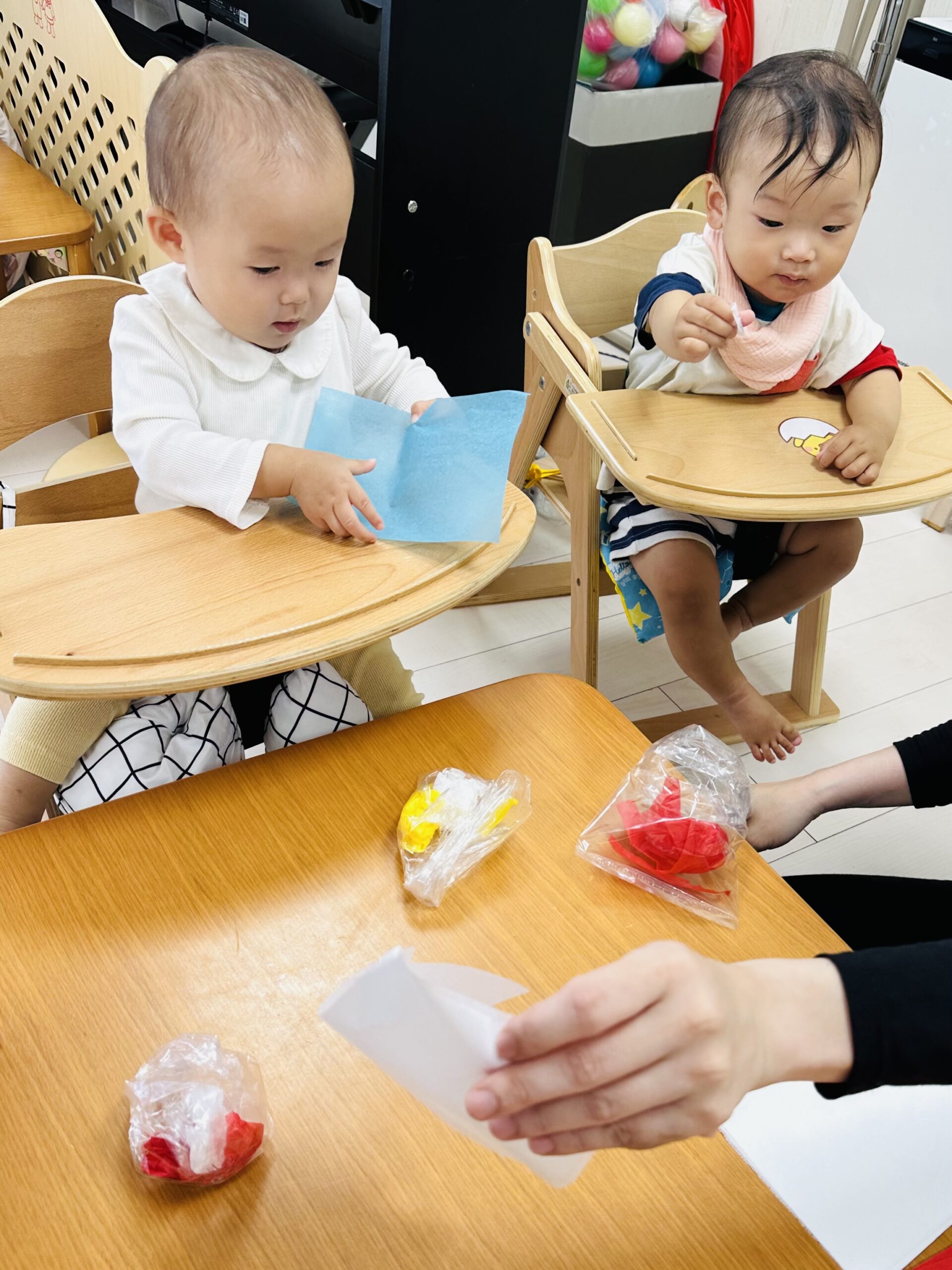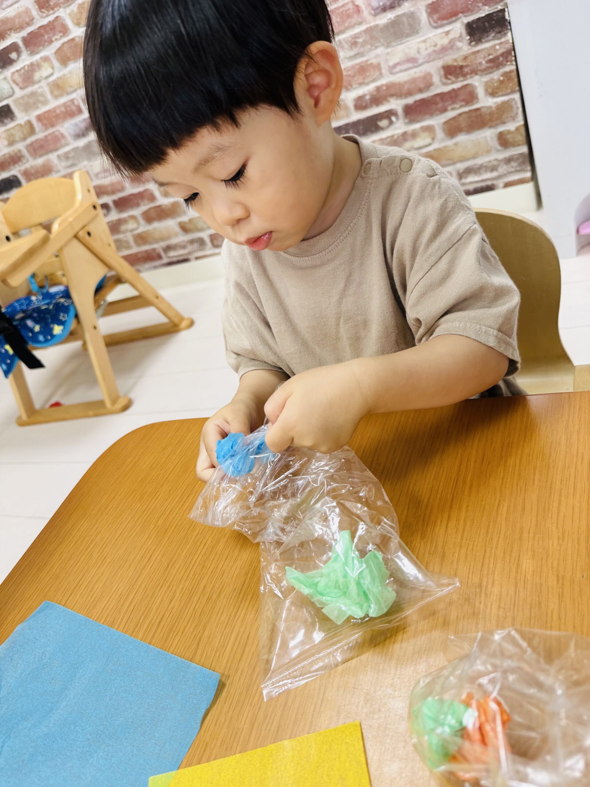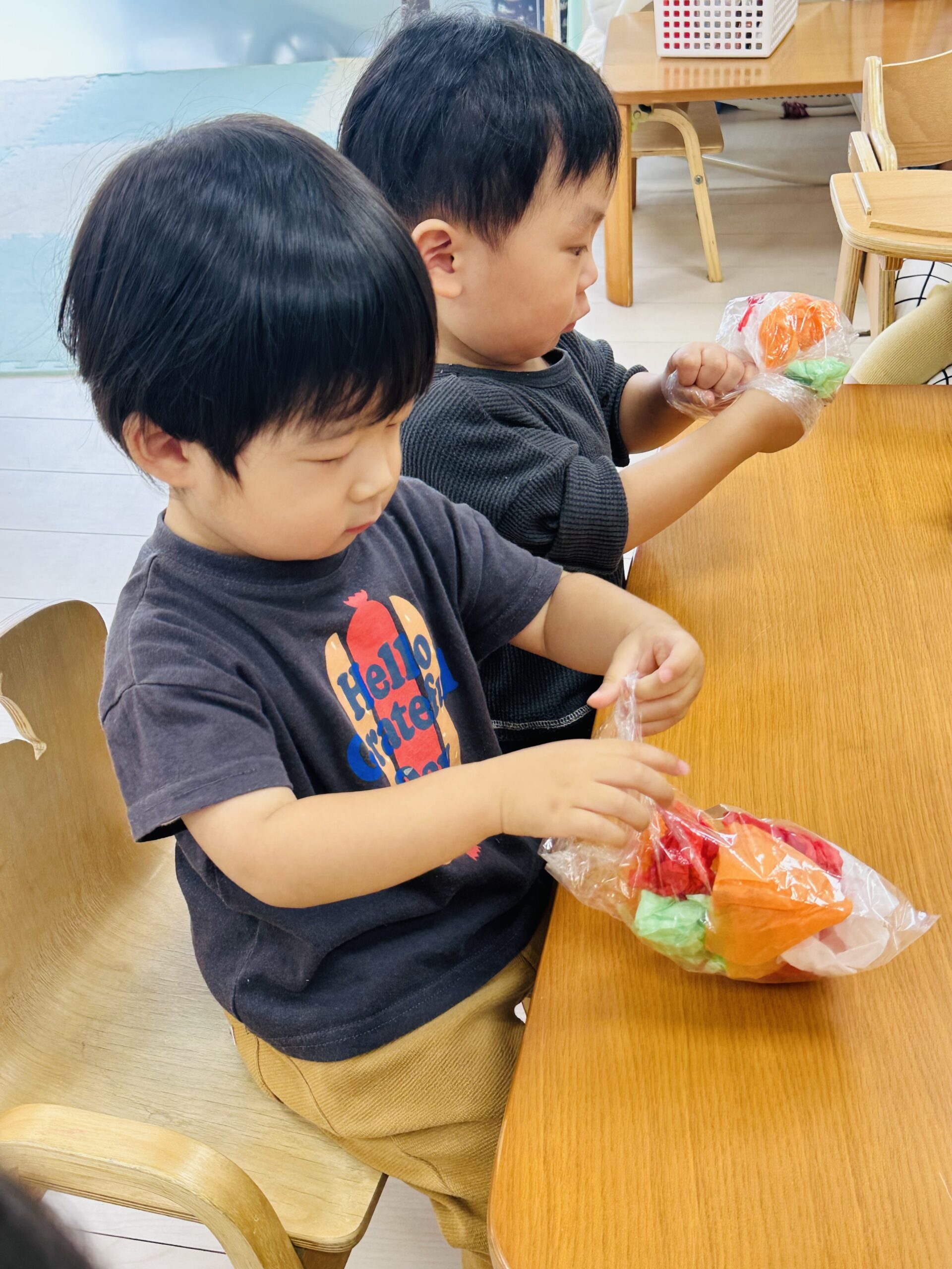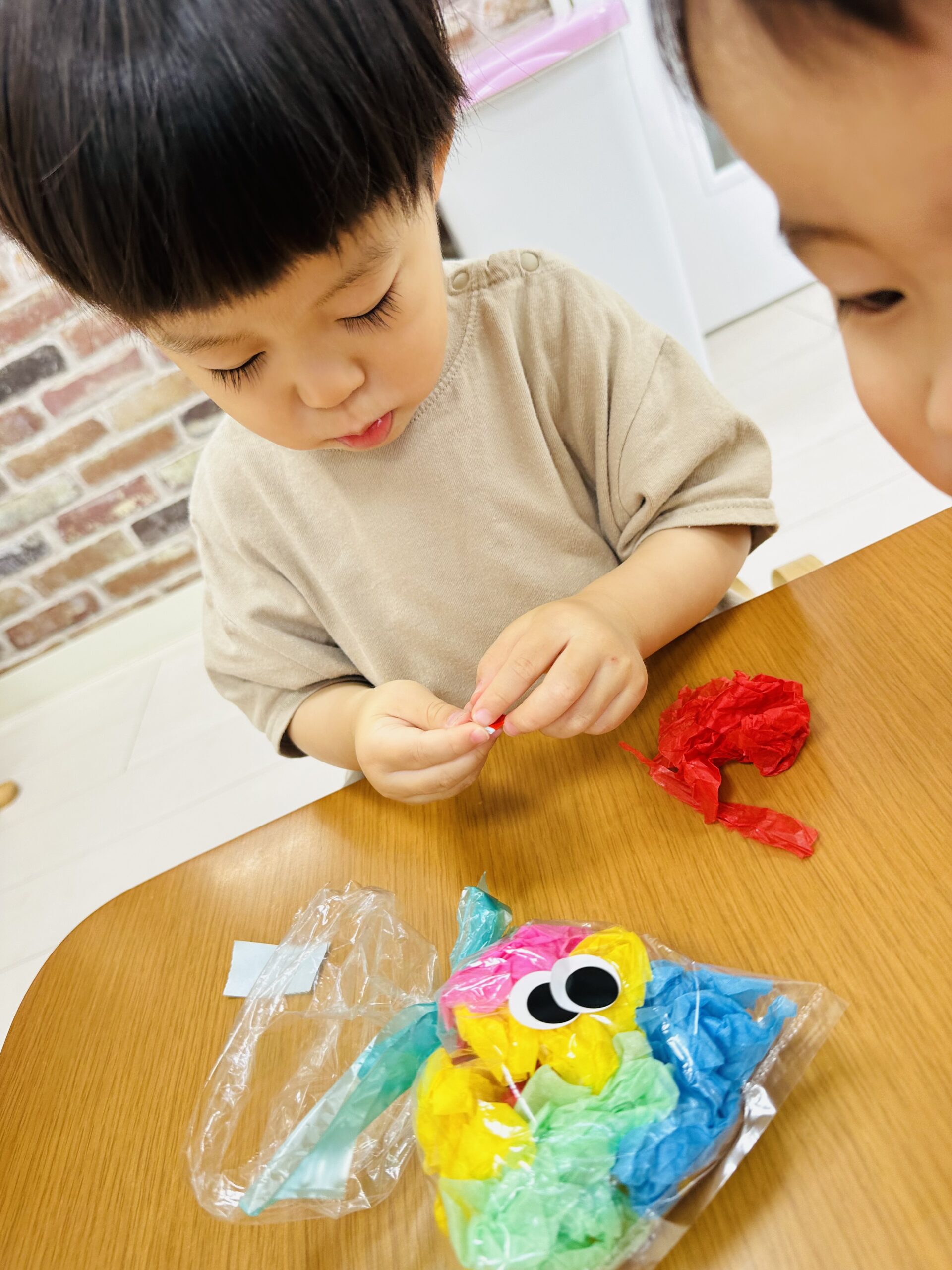 花紙をビニール袋に入れて、可愛いてるてる坊主も作りました☔️