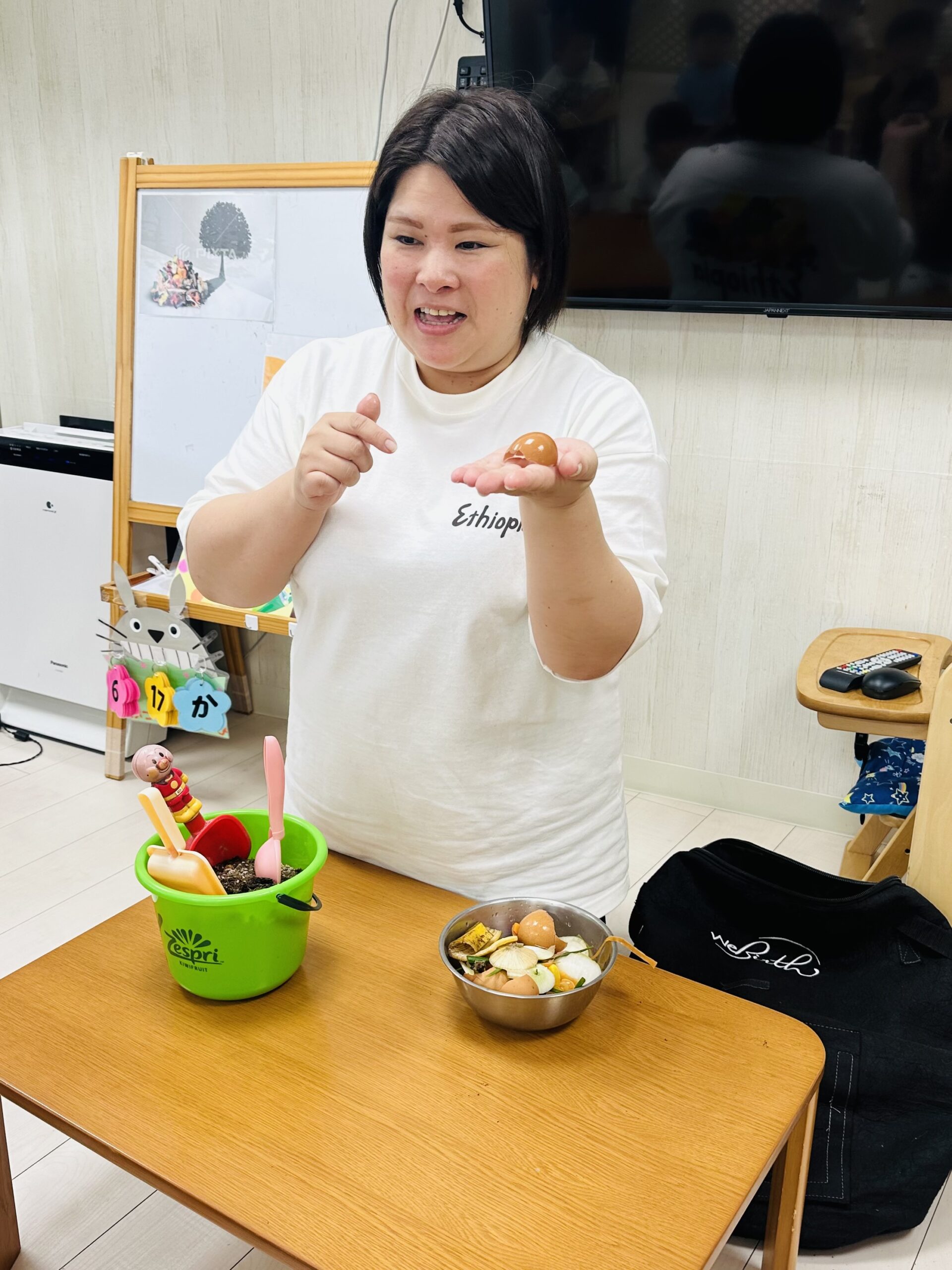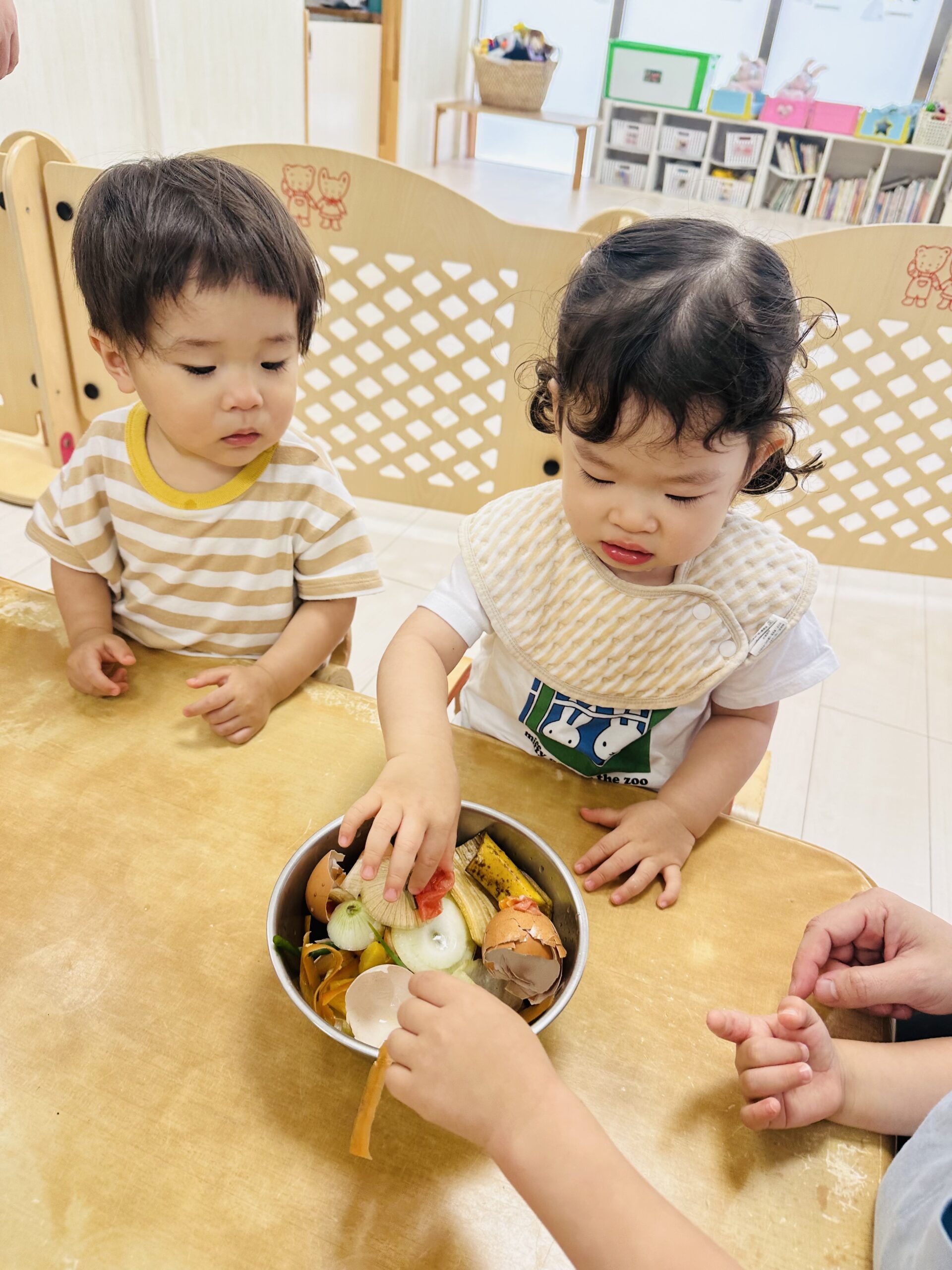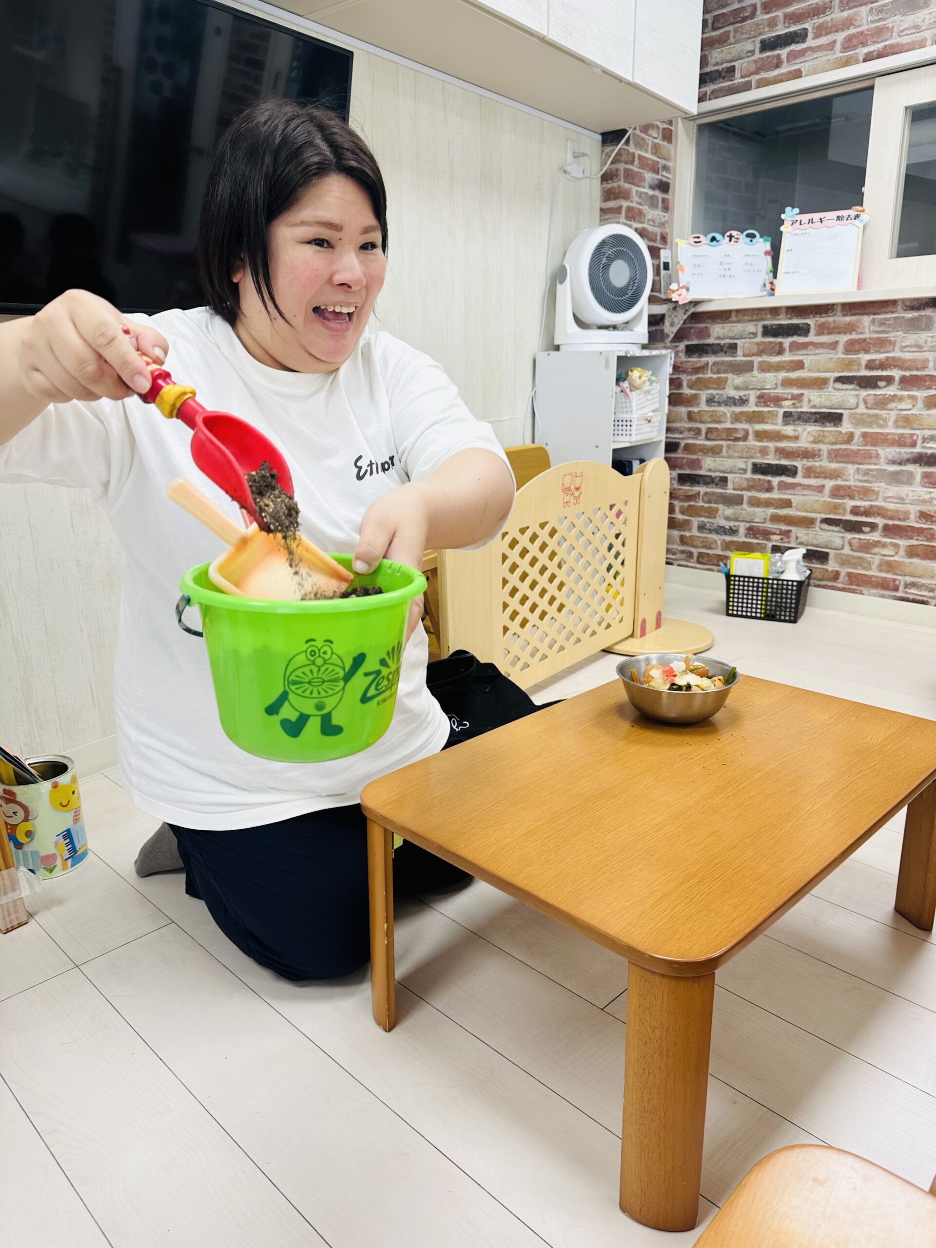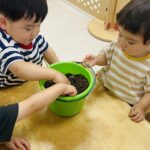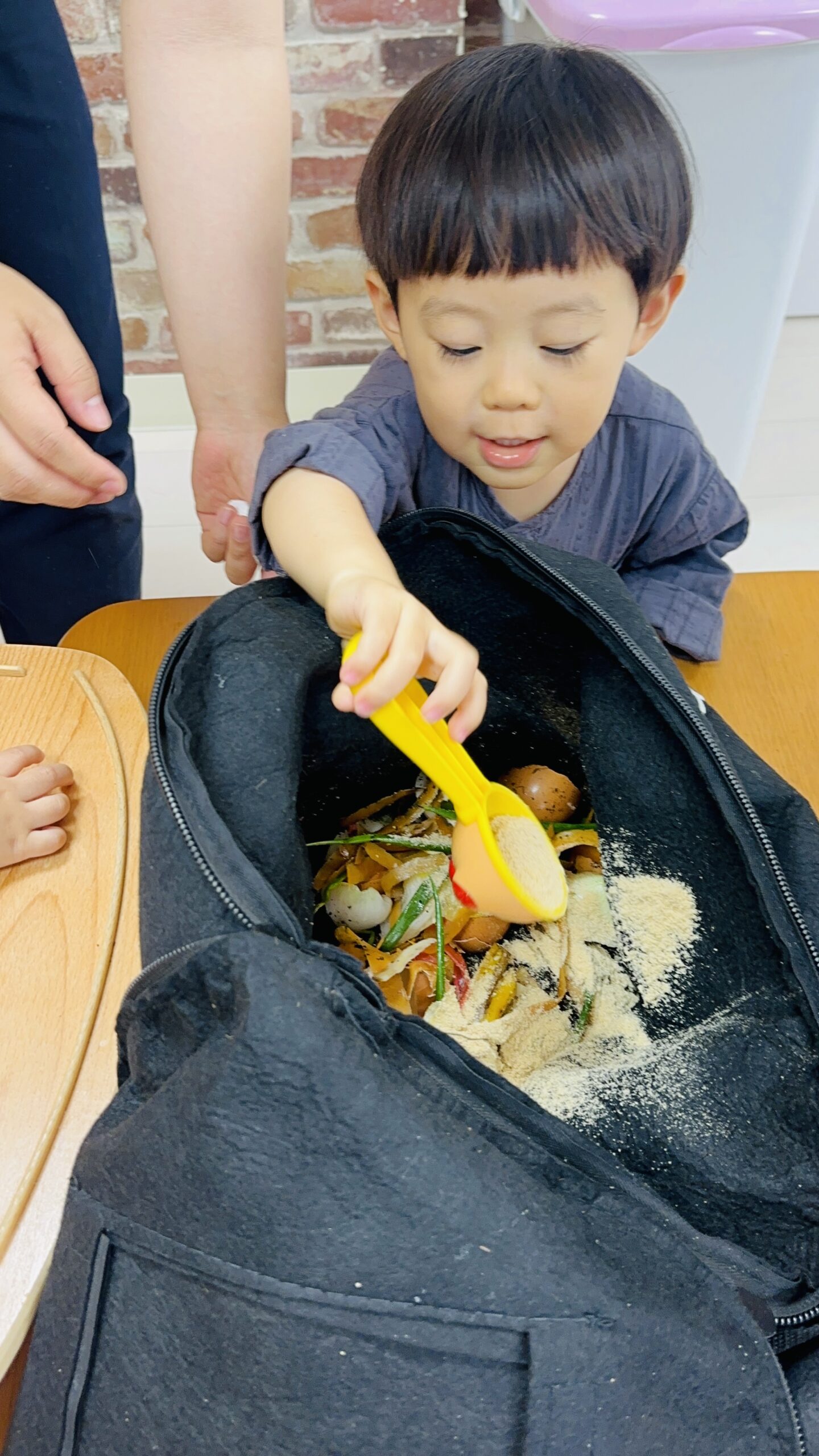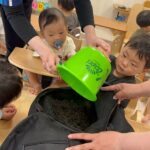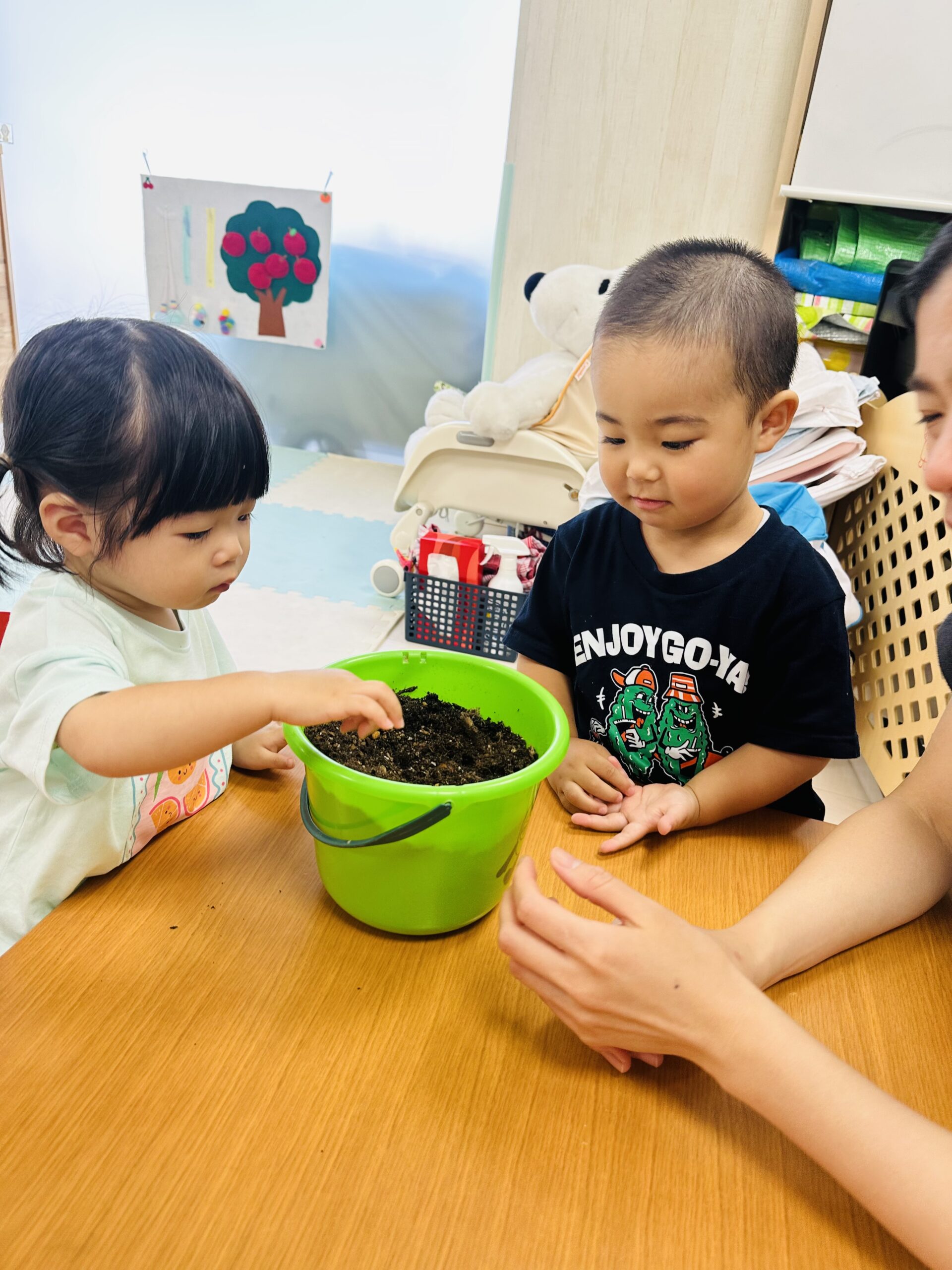 今日から保育園で出た生ゴミをコンポストバックに入れ、土や米ぬかと混ぜ、肥料作りをスタートしました😊