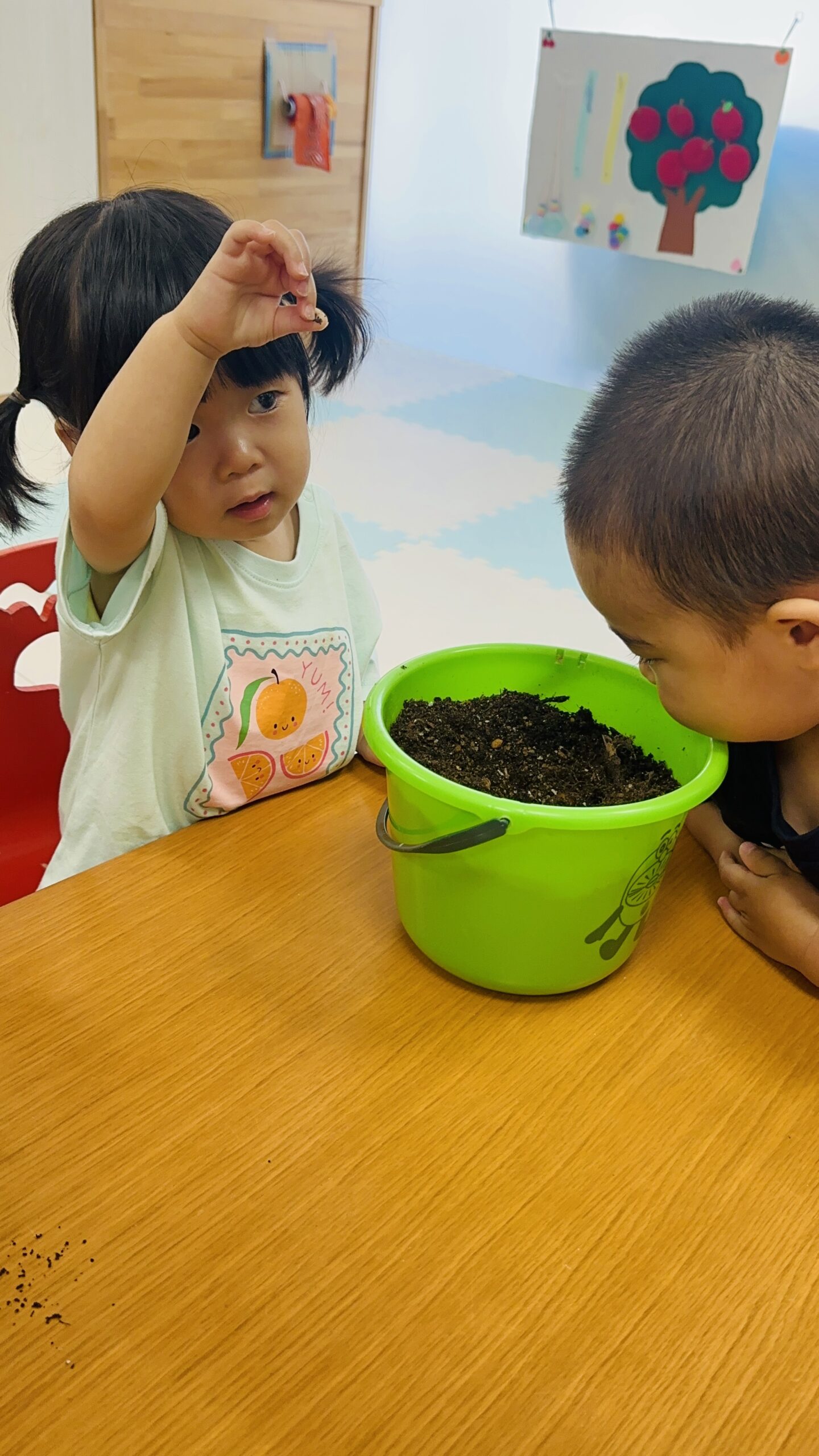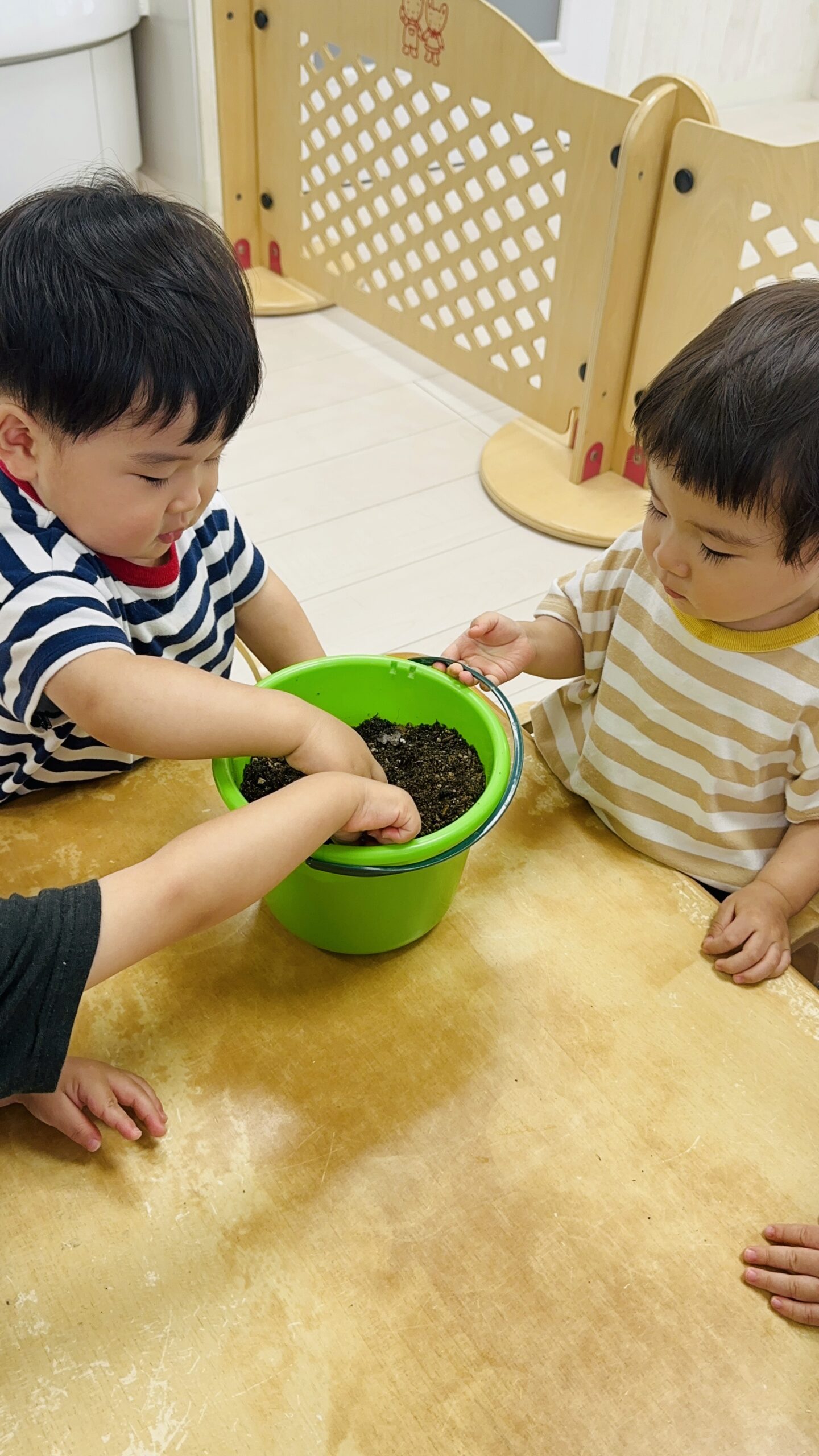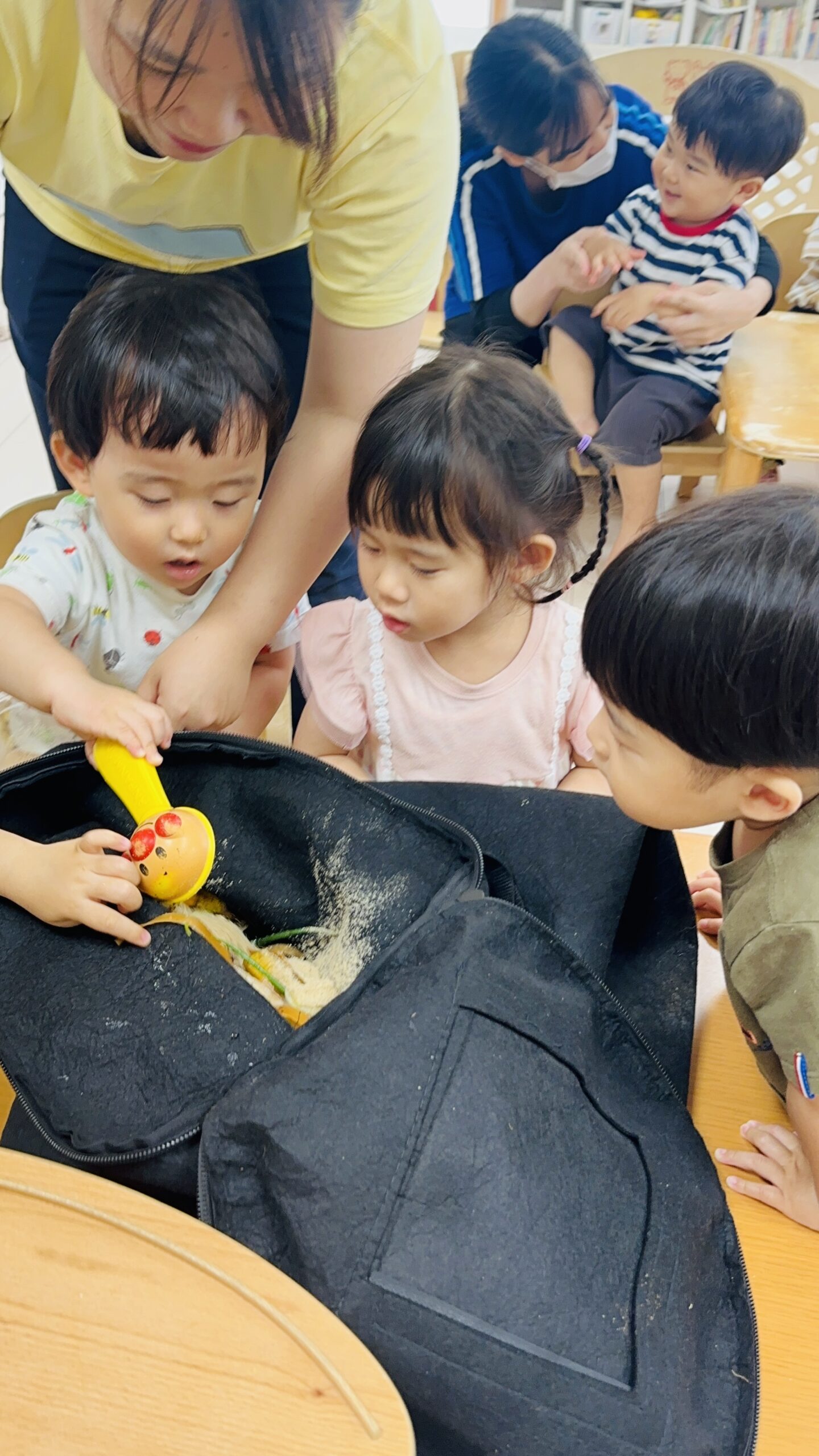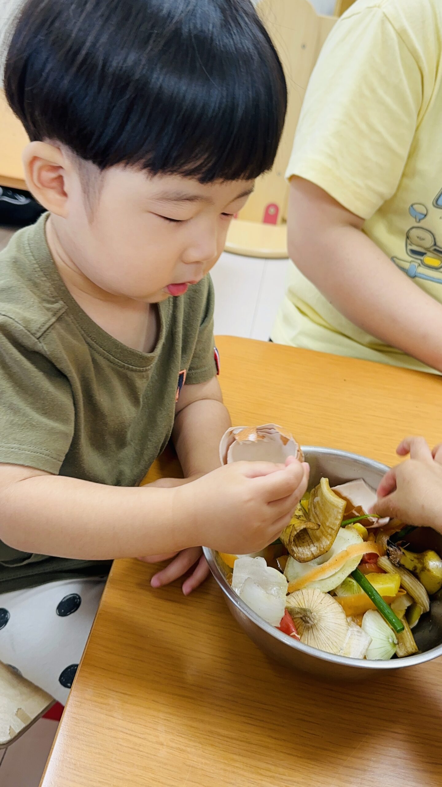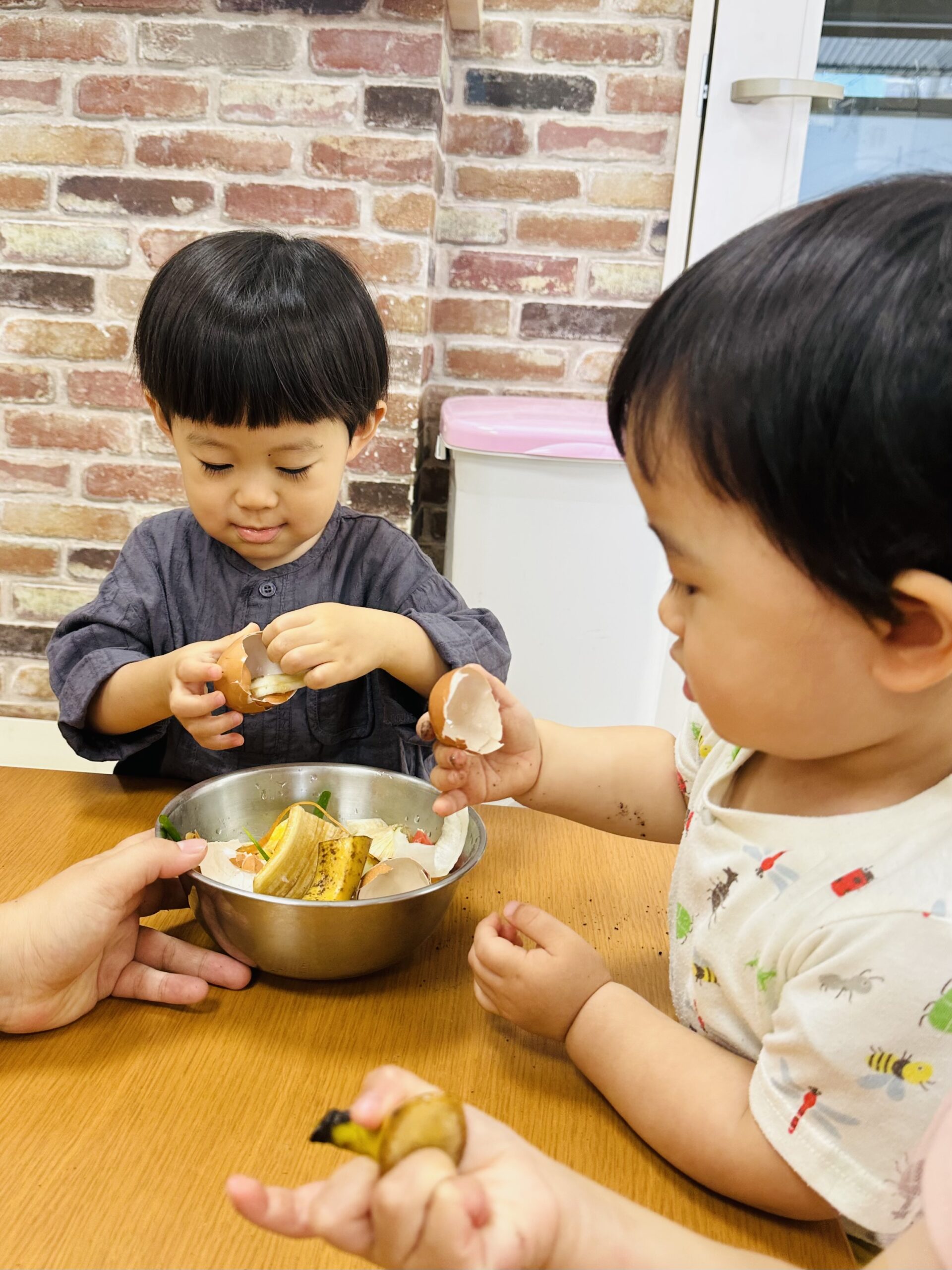 今日から保育園で出た生ゴミをコンポストバックに入れ、土や米ぬかと混ぜ、肥料作りをスタートしました😊