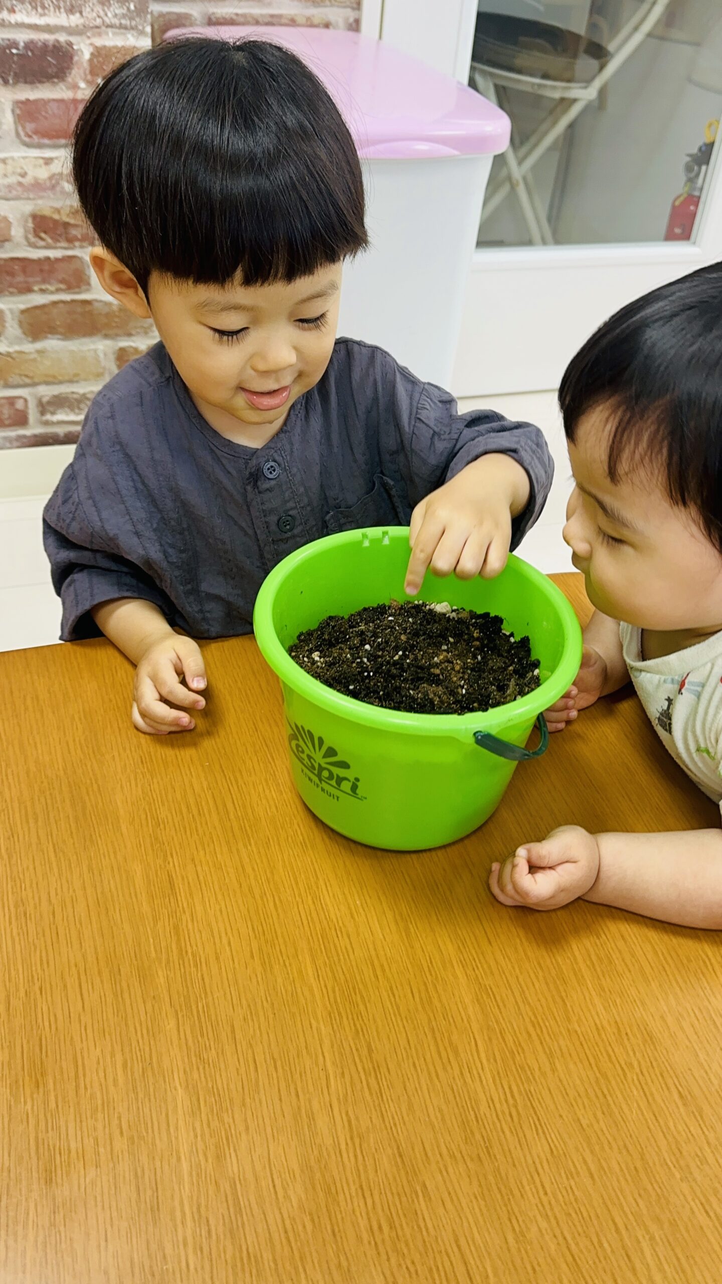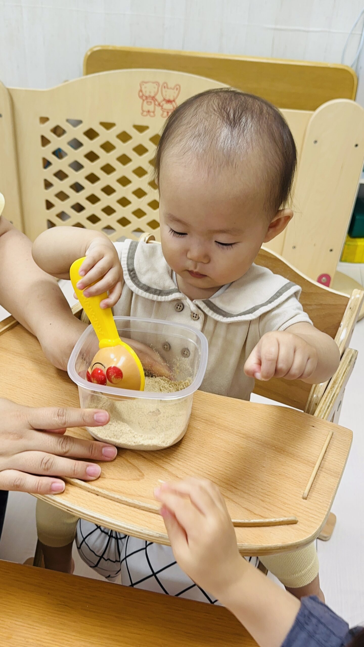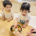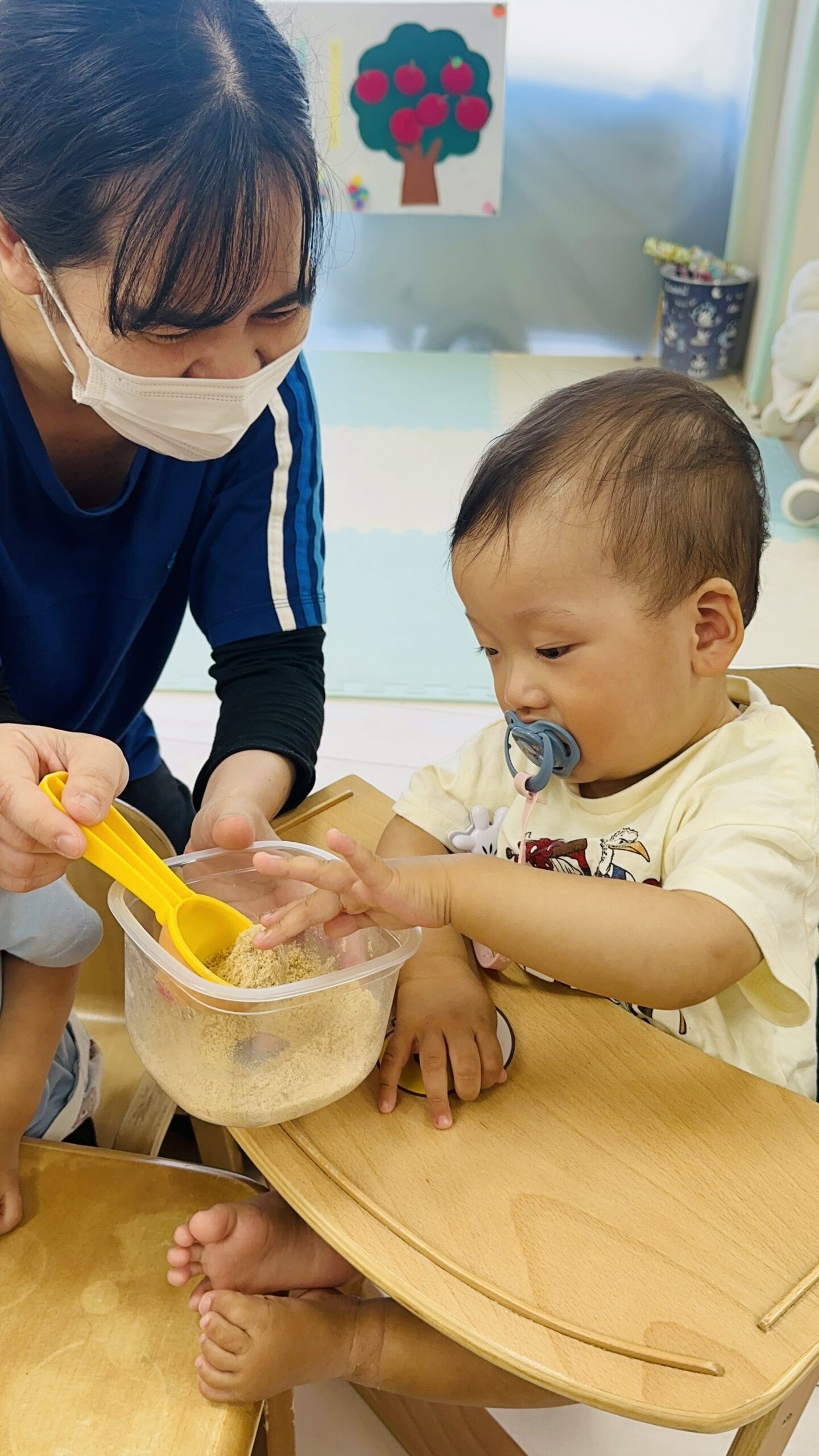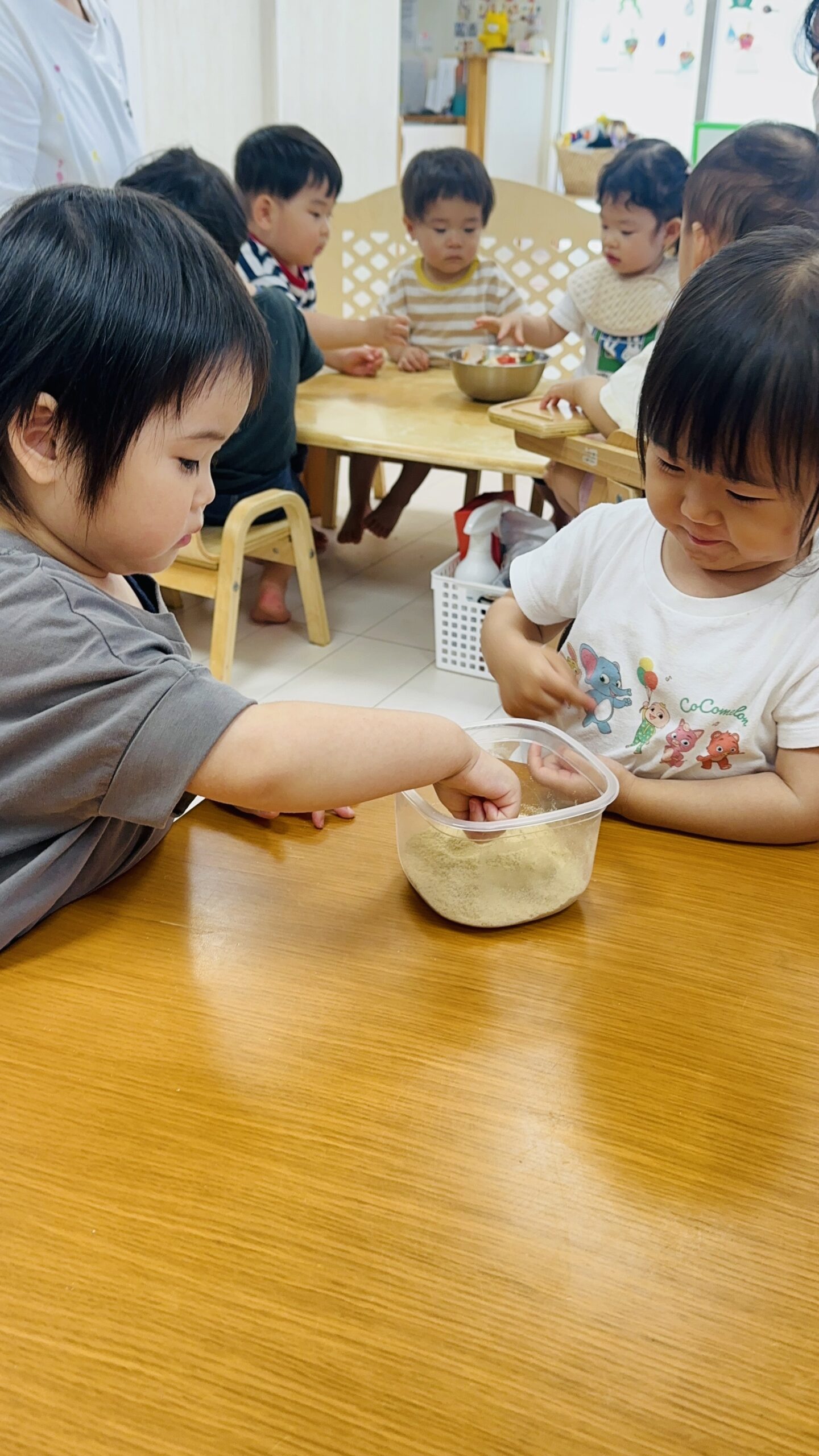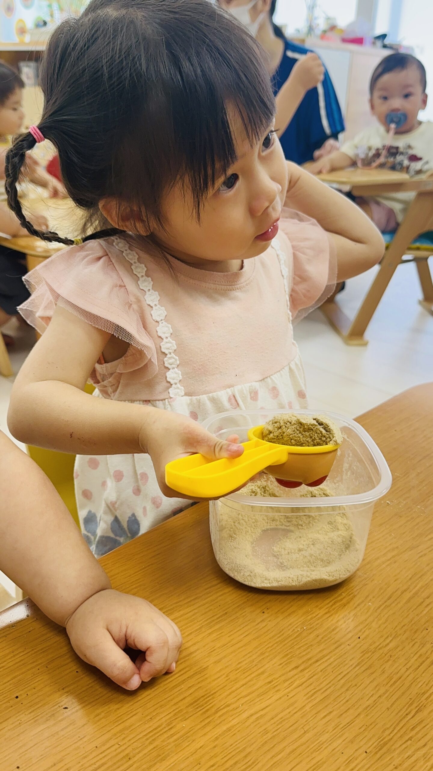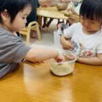 米ぬかや、土にも触れ、触り心地や香りを確かめています☺️