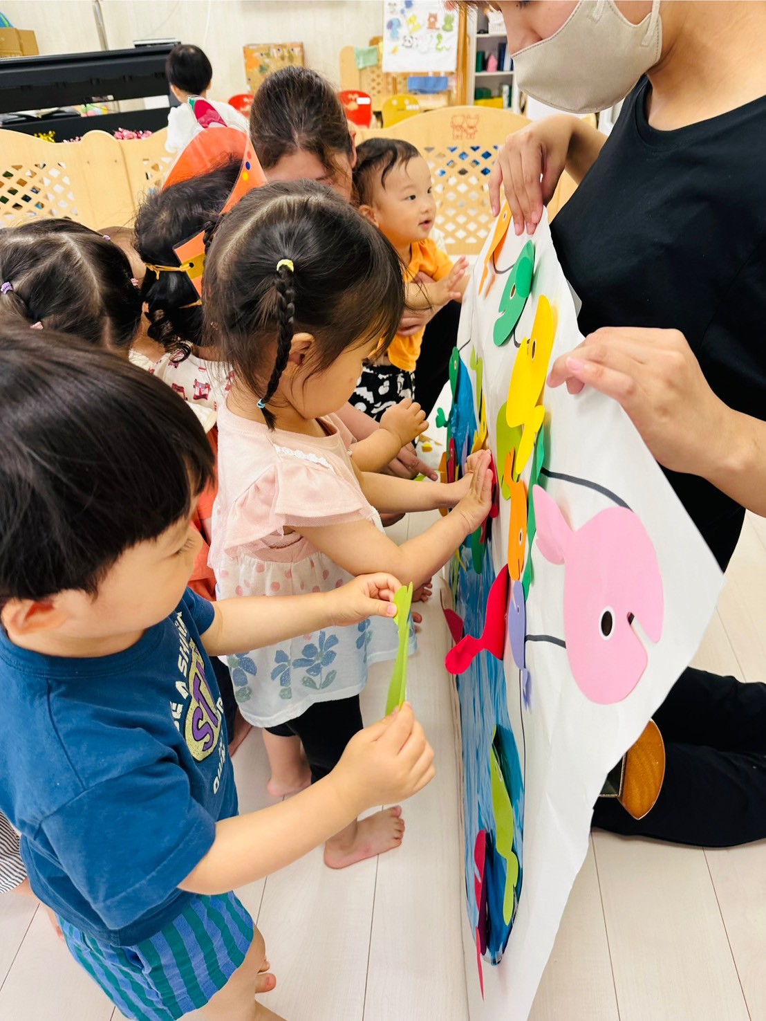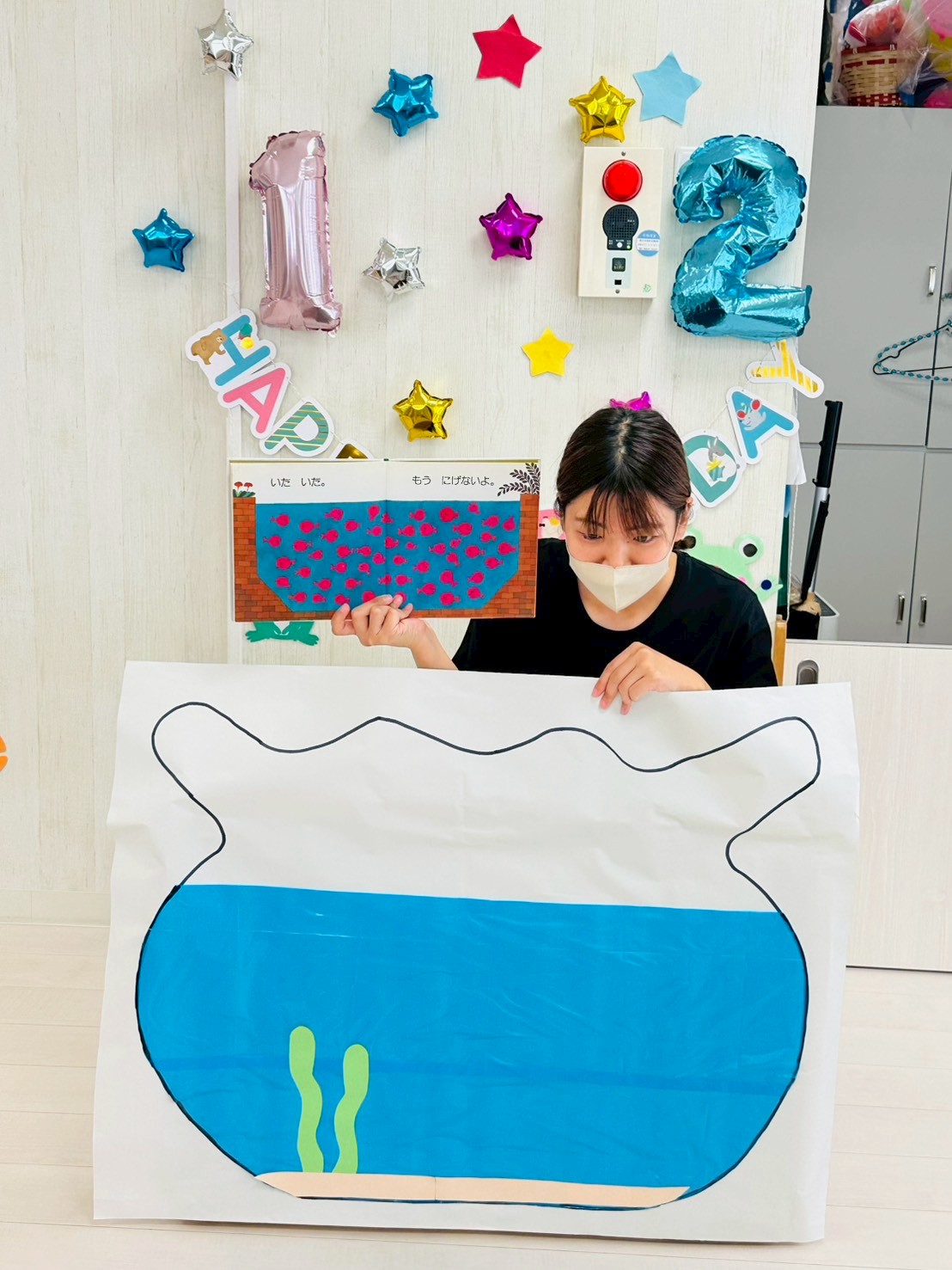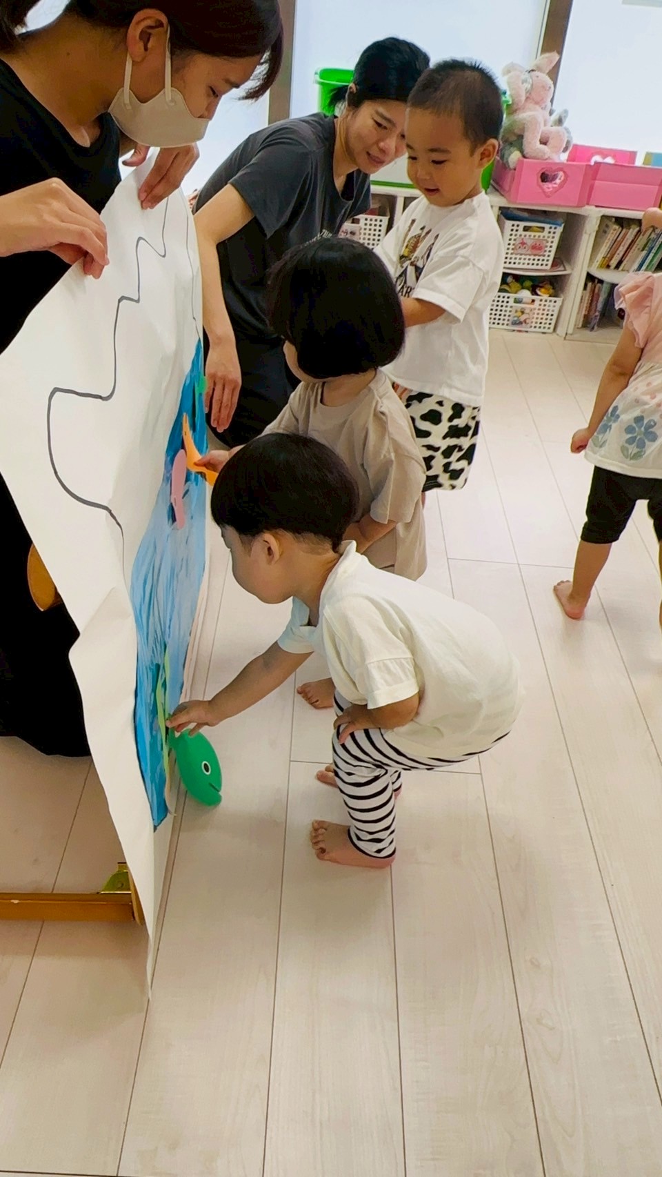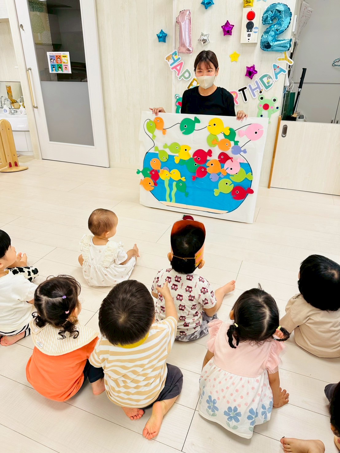 次は、金魚が逃げたの絵本の中の逃げた金魚をみんなが教えてくれました🐟