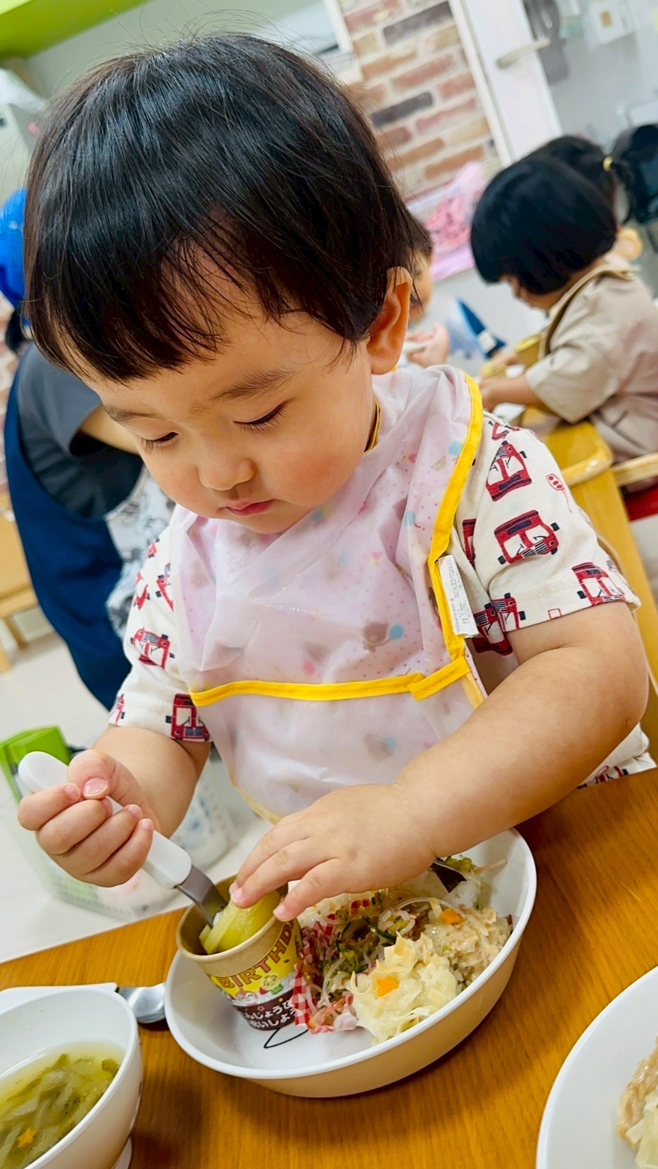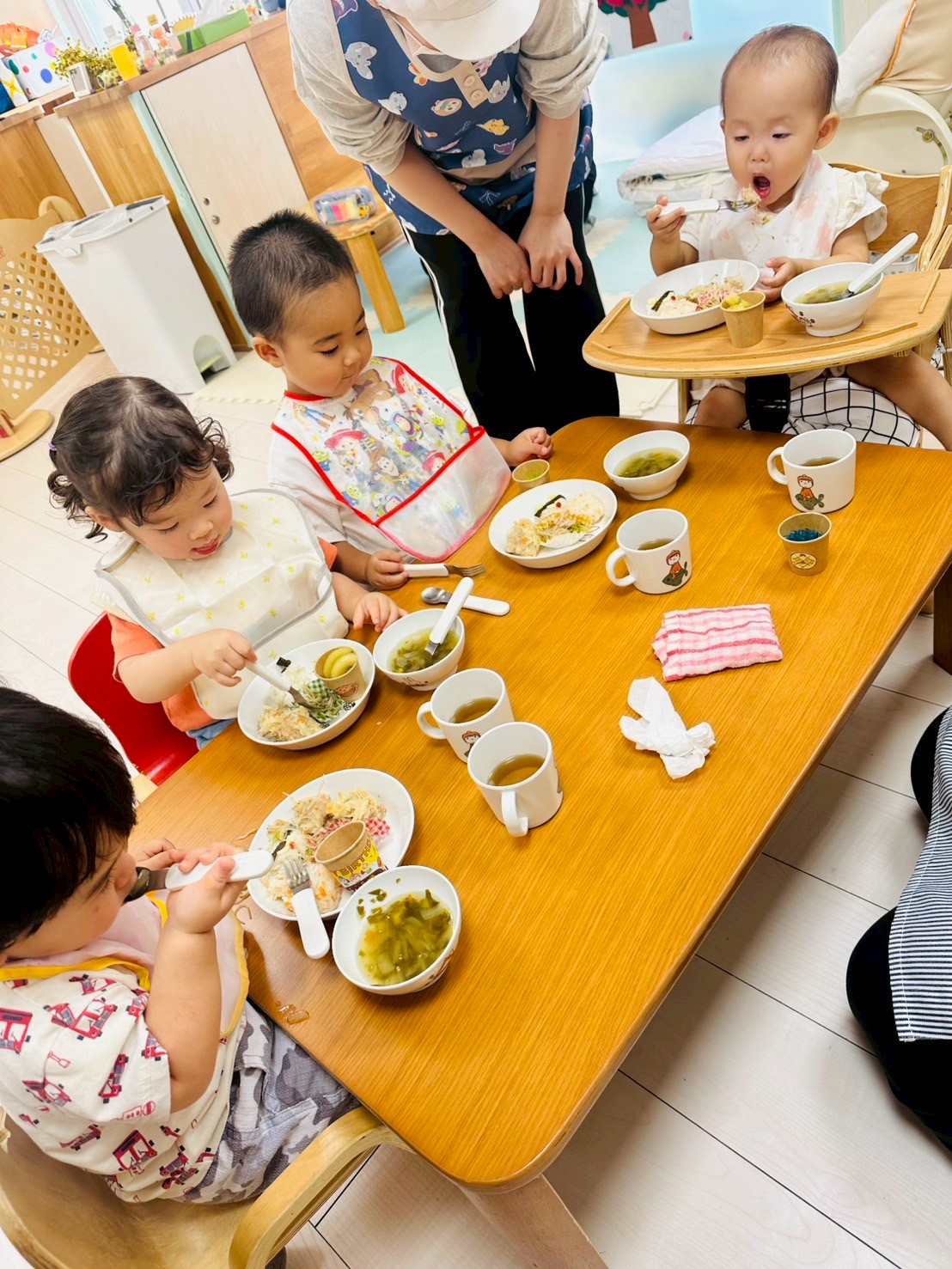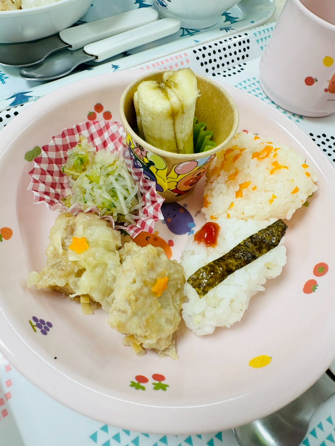 みんな大好きなパトカーのおにぎり🚔やシュウマイに春雨サラダ…みんな美味しそうにぱくぱく食べていましたよ💓
