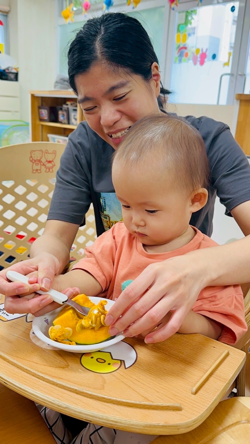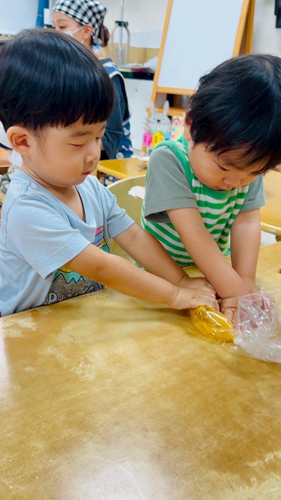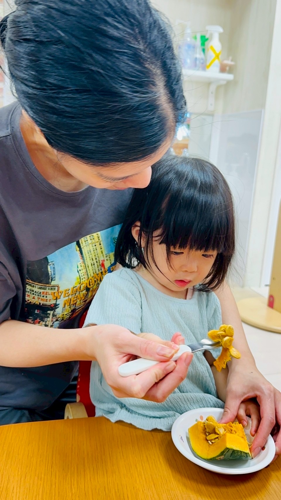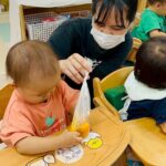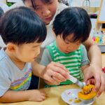 最後は茹でたかぼちゃをつぶすお手伝いをしてくれました✨