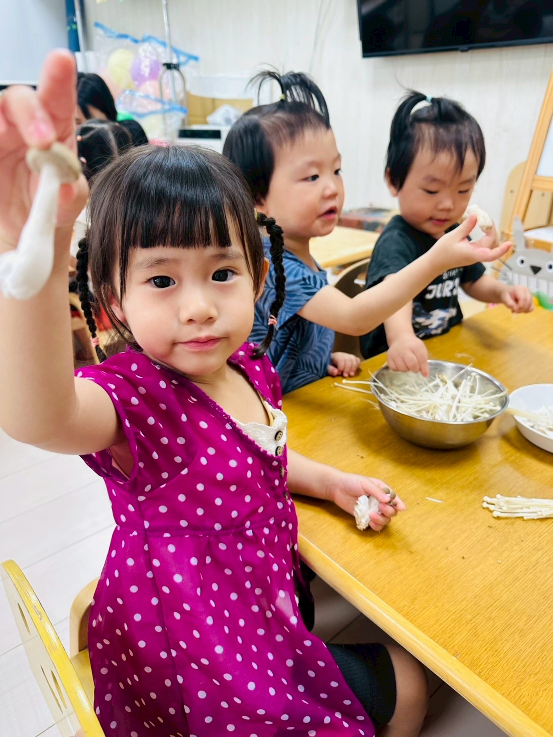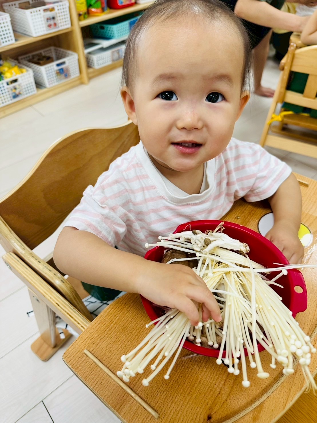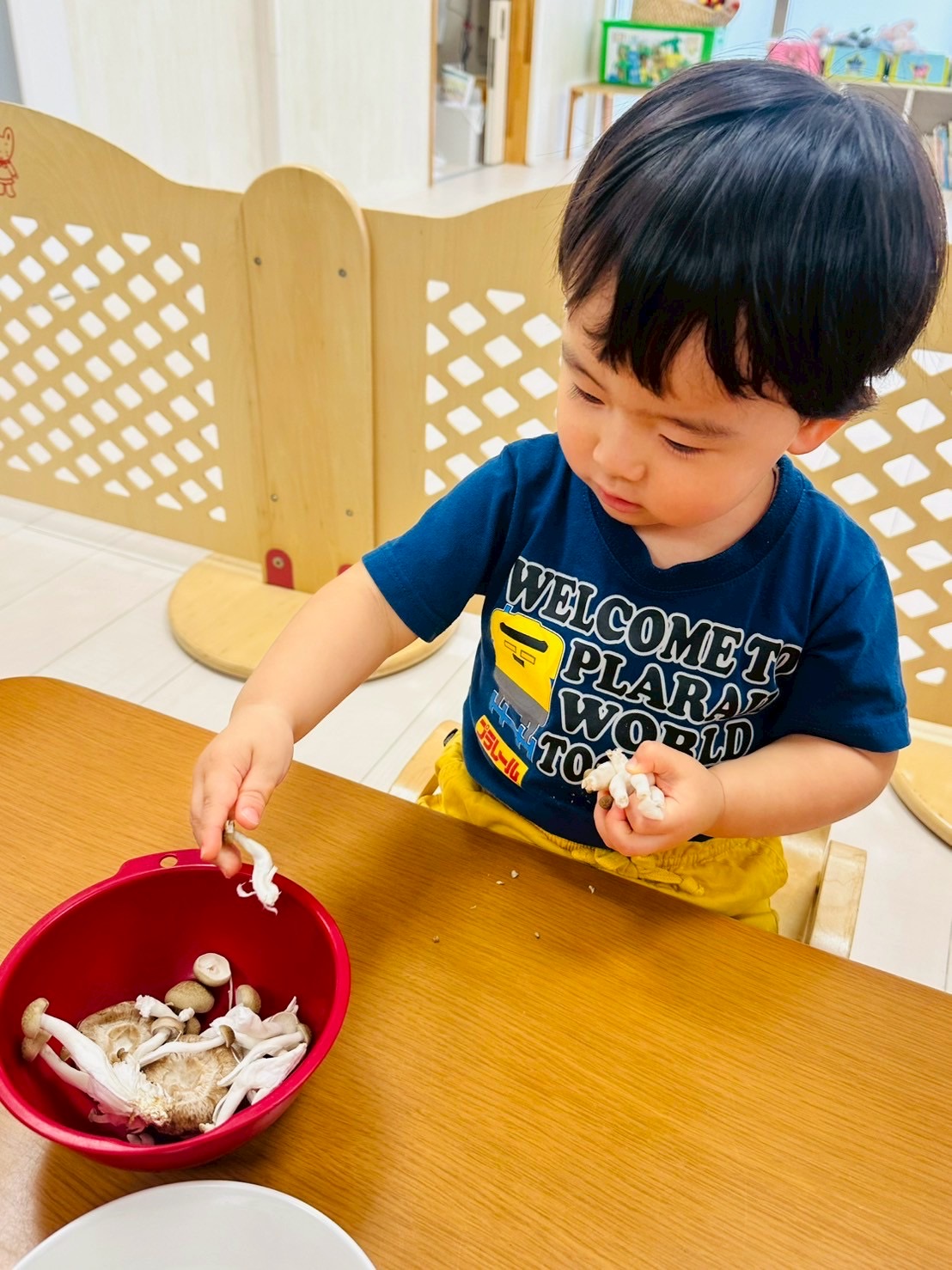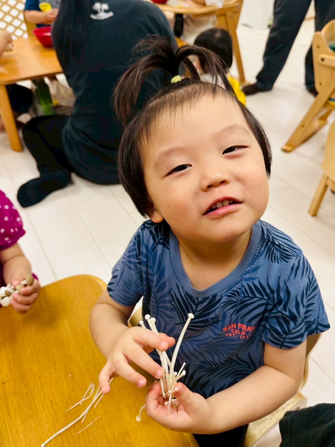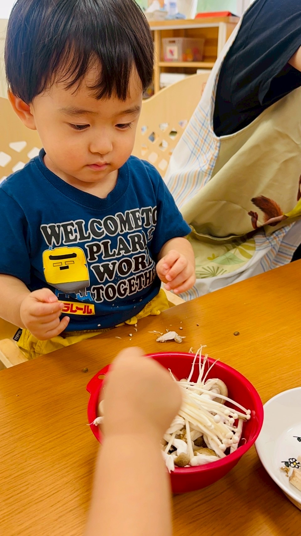 みんなにもきのこを割いてもらうお手伝いをしてもらいました🥰