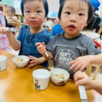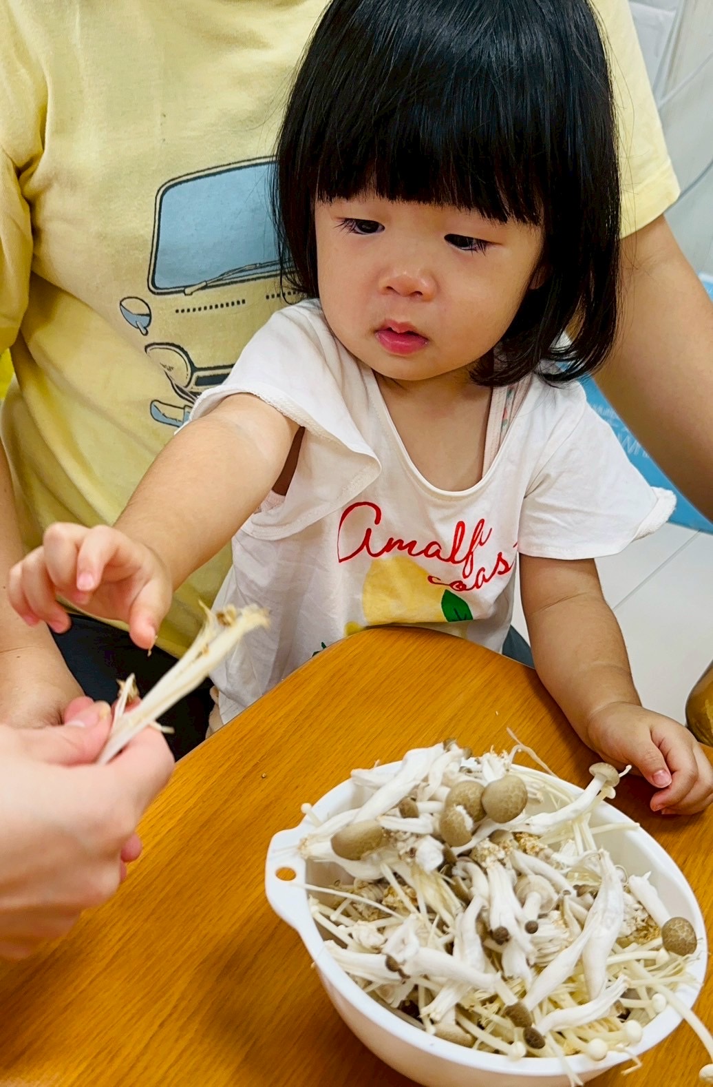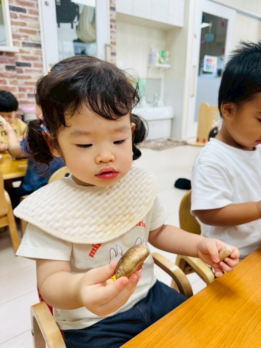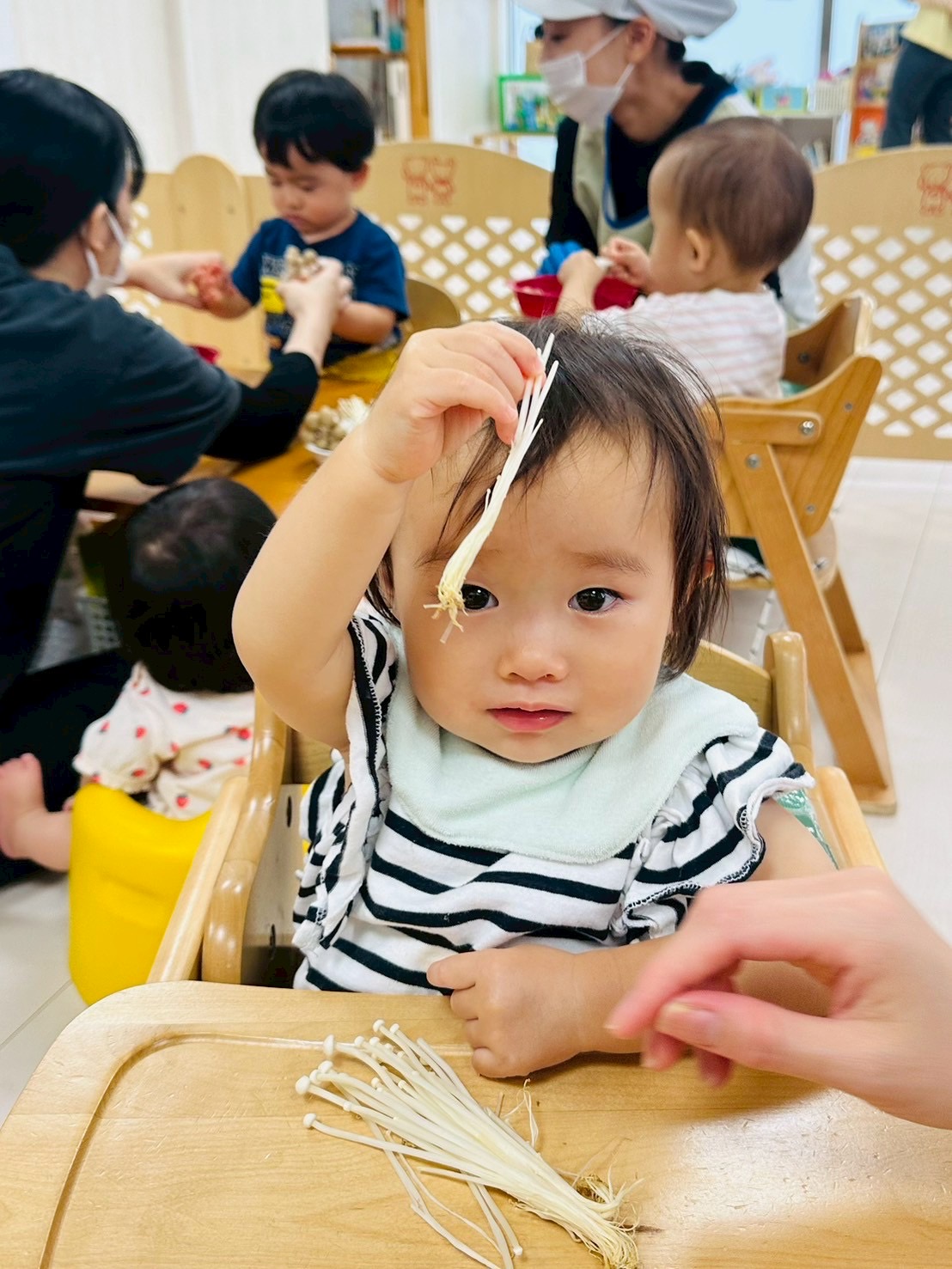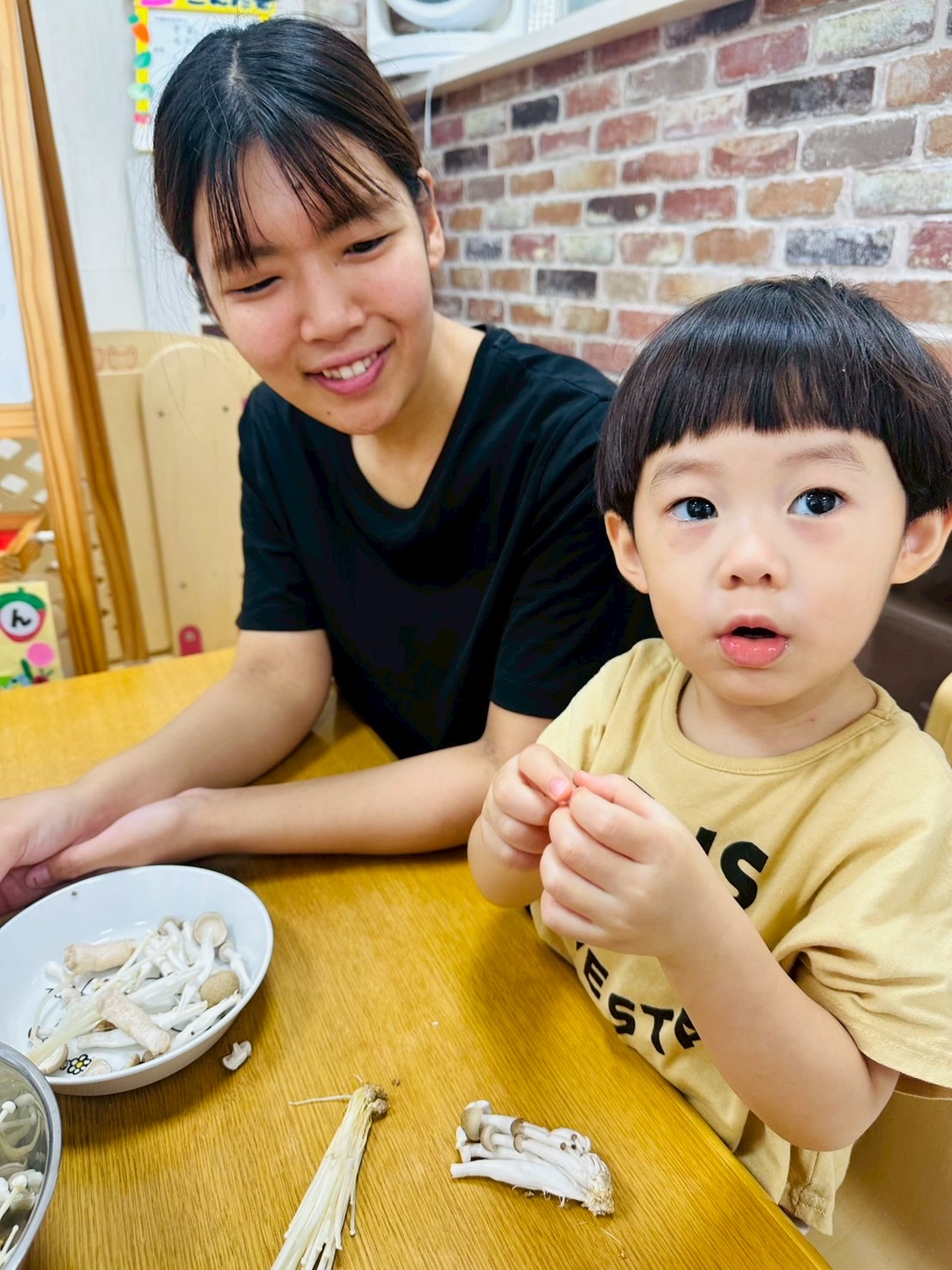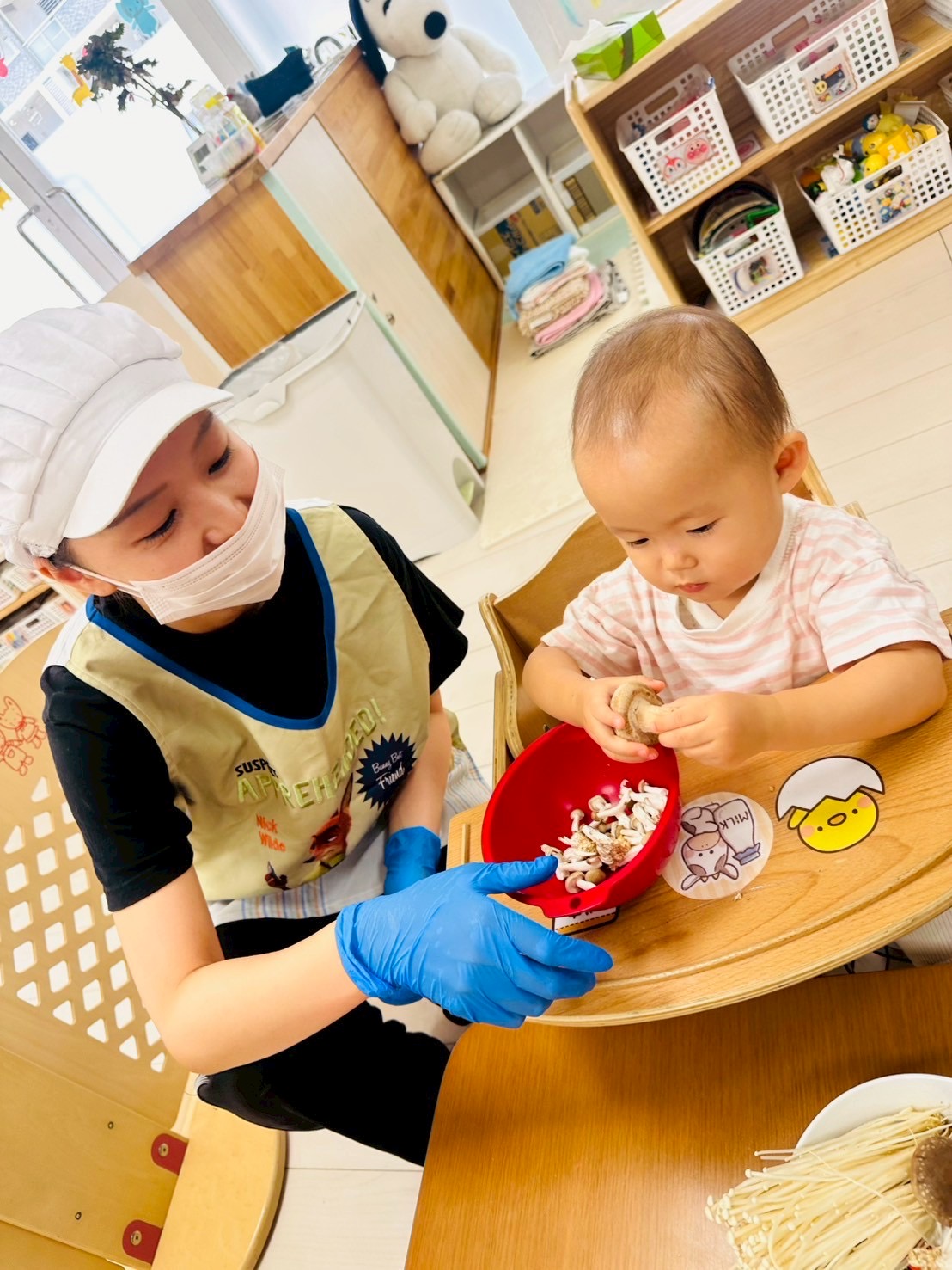 みんなにもきのこを割いてもらうお手伝いをしてもらいました🥰