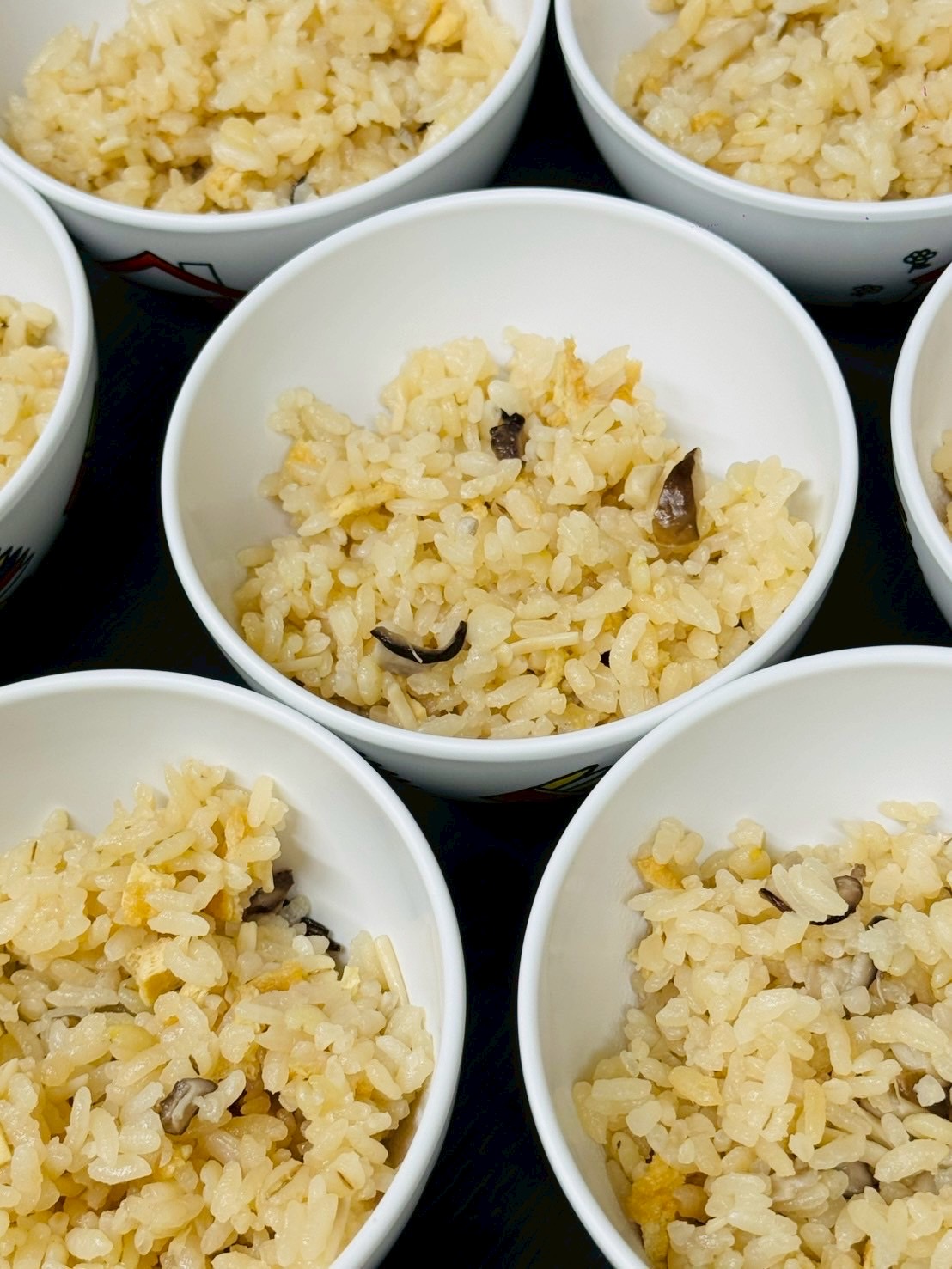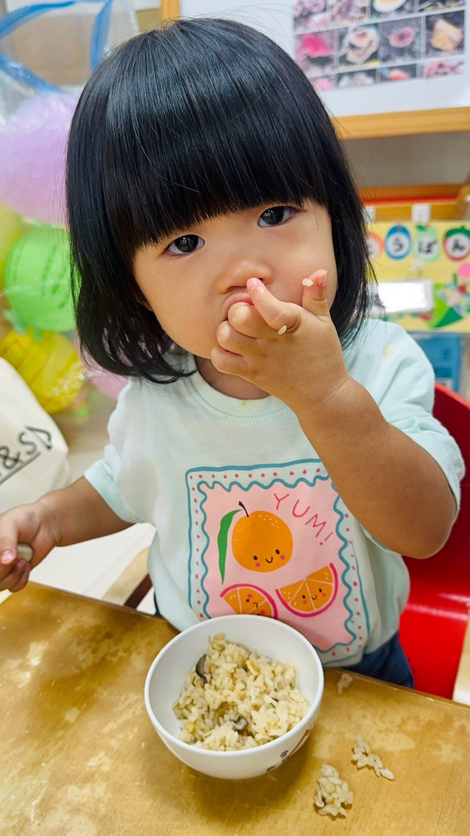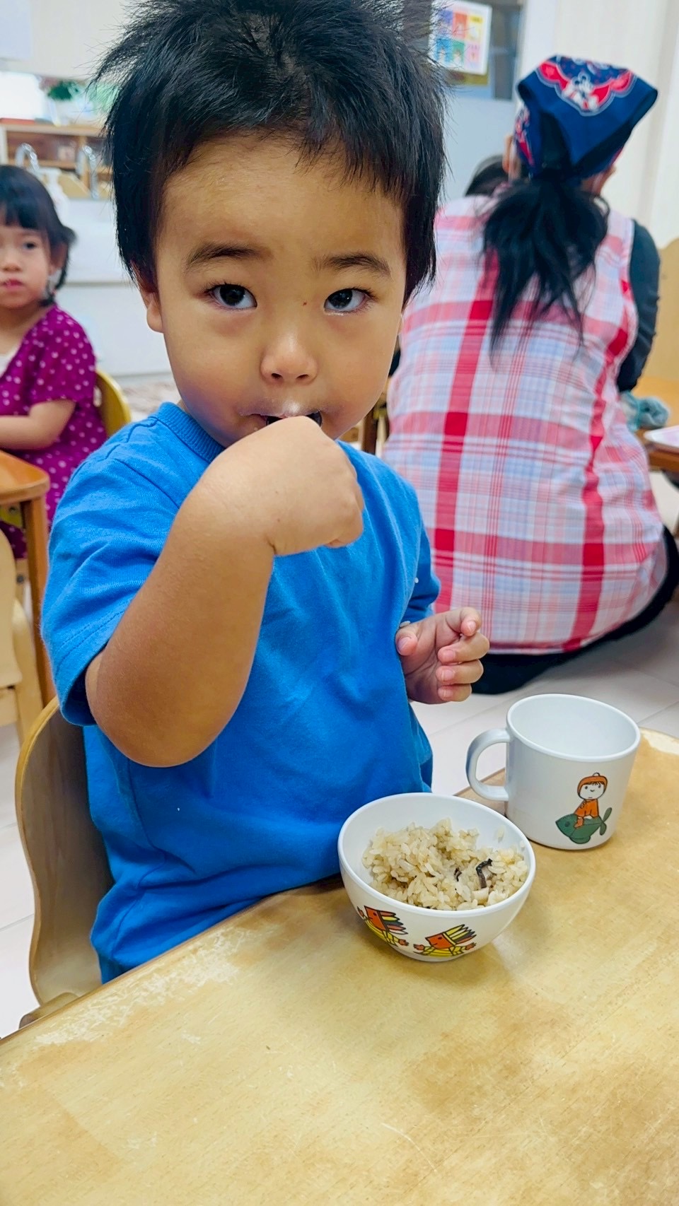 給食の先生が夕方のおやつでみんなが割いてくれたきのこできのこご飯にしてくれました🌟