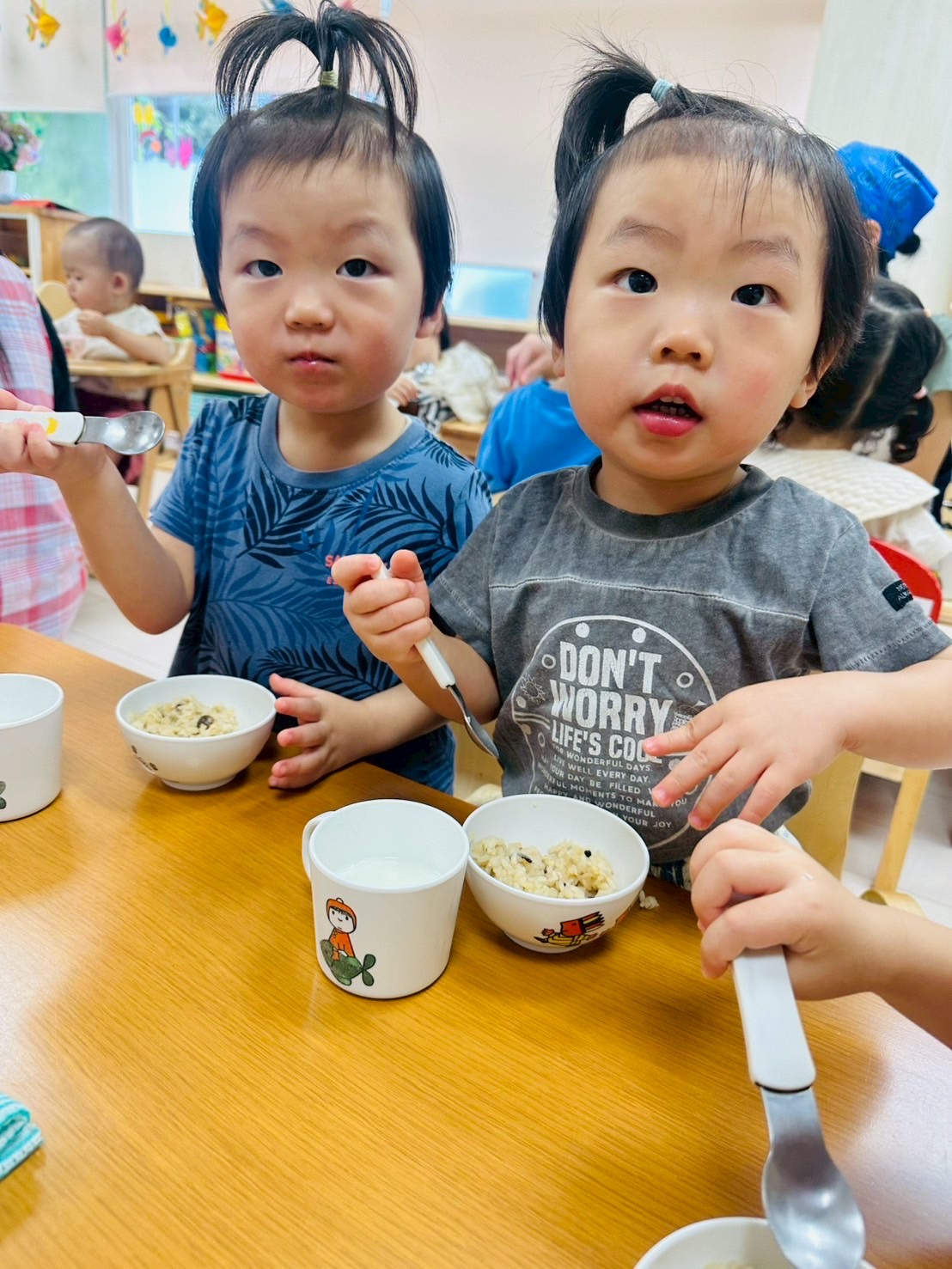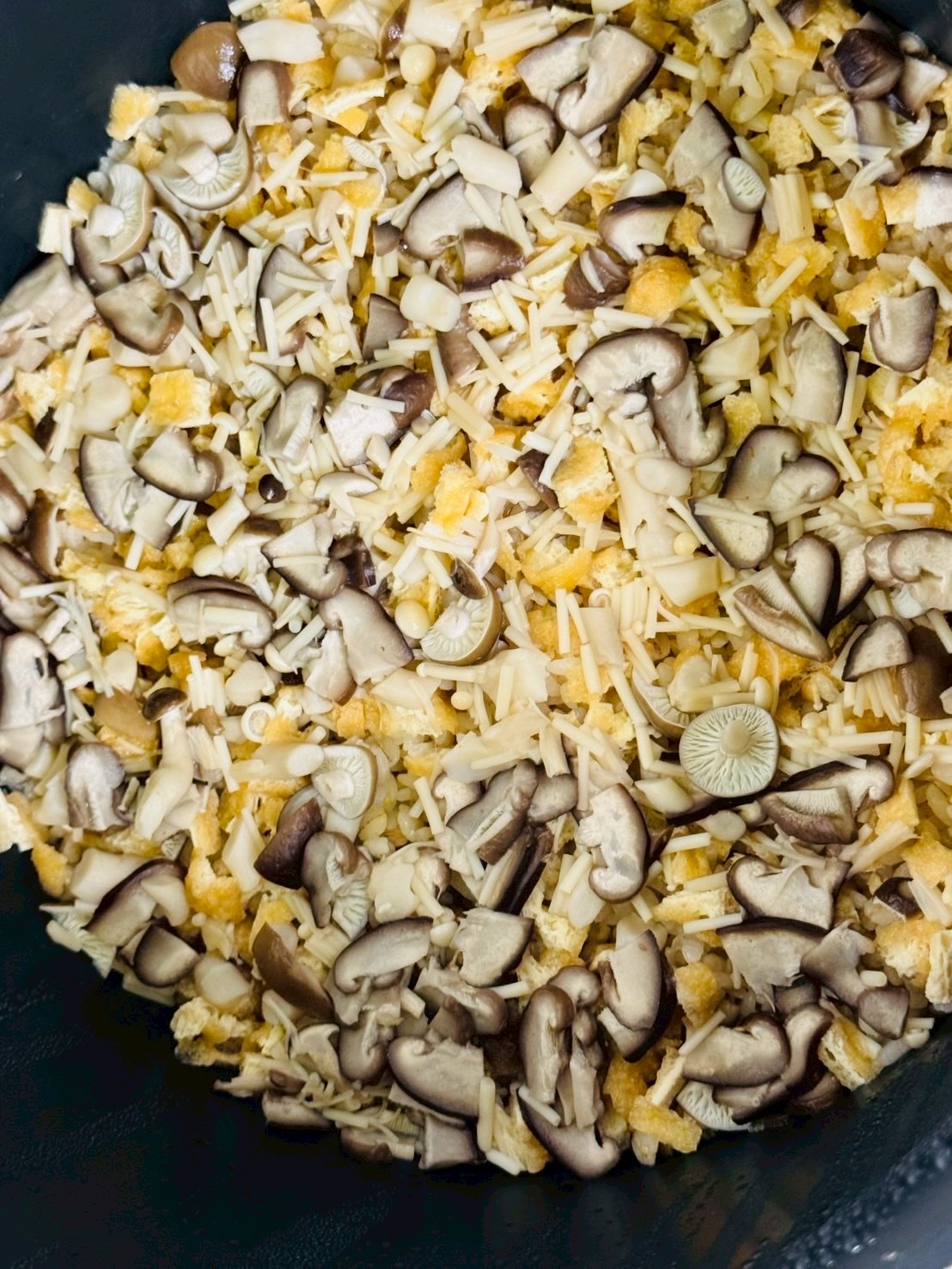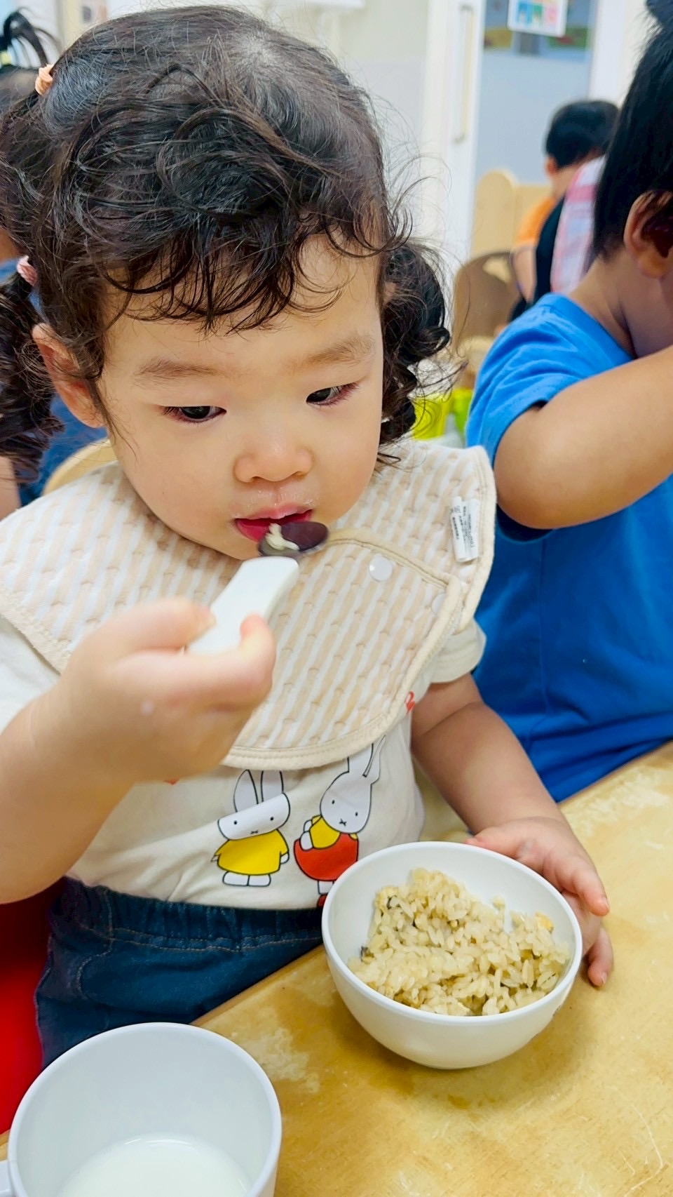 給食の先生が夕方のおやつでみんなが割いてくれたきのこできのこご飯にしてくれました🌟
