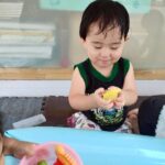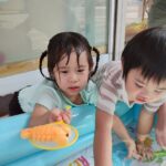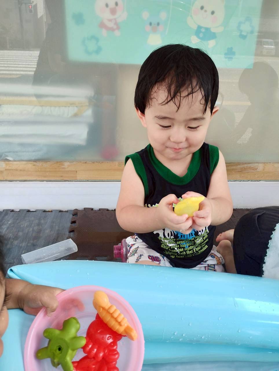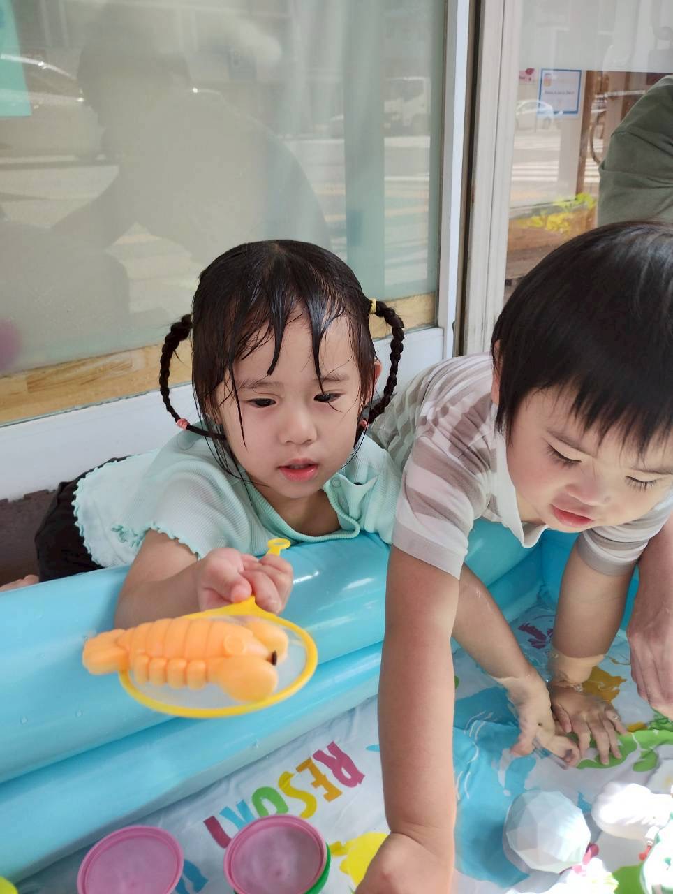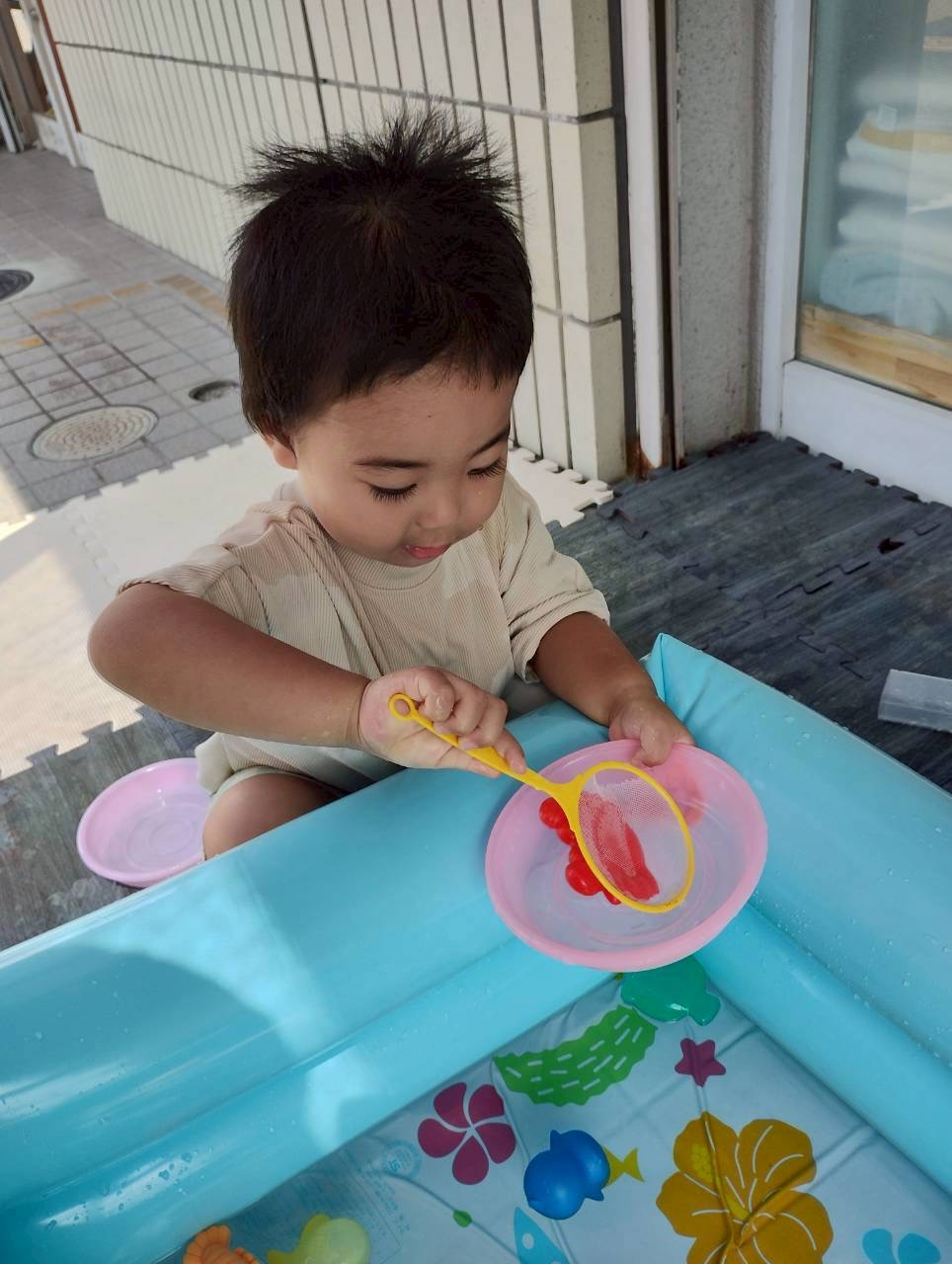 魚釣り🎣やペットボトルでお水を出したり入れたりと色々な玩具で楽しんでいましたよ🎶