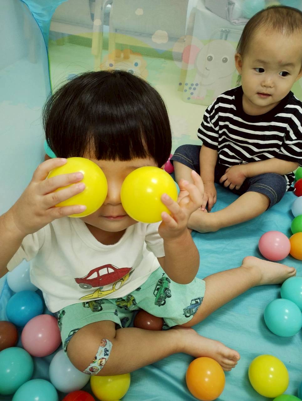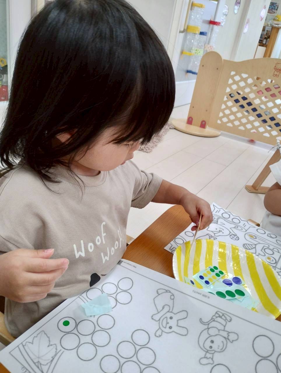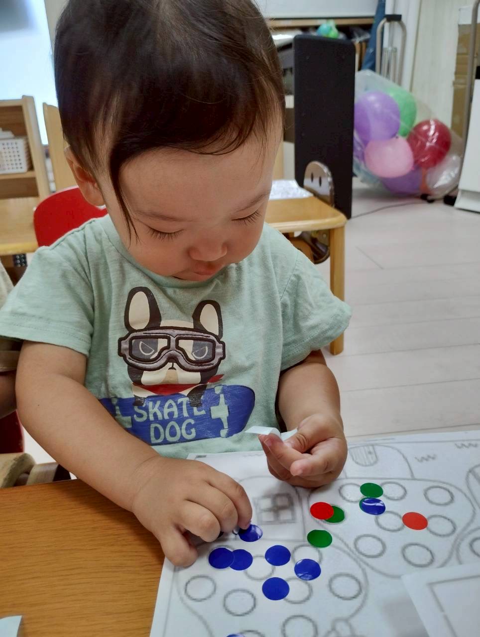 その後は、カラーボールとシール貼りをしました💓