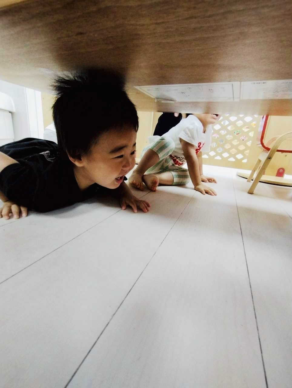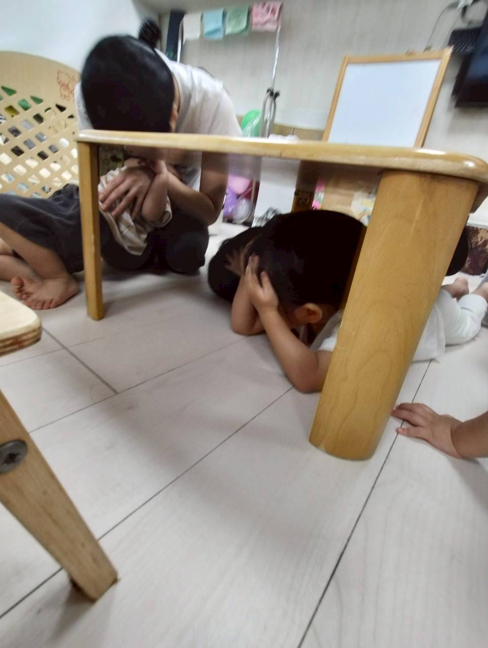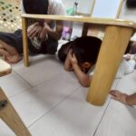 地震の時は、机の下に避難するよ🌟