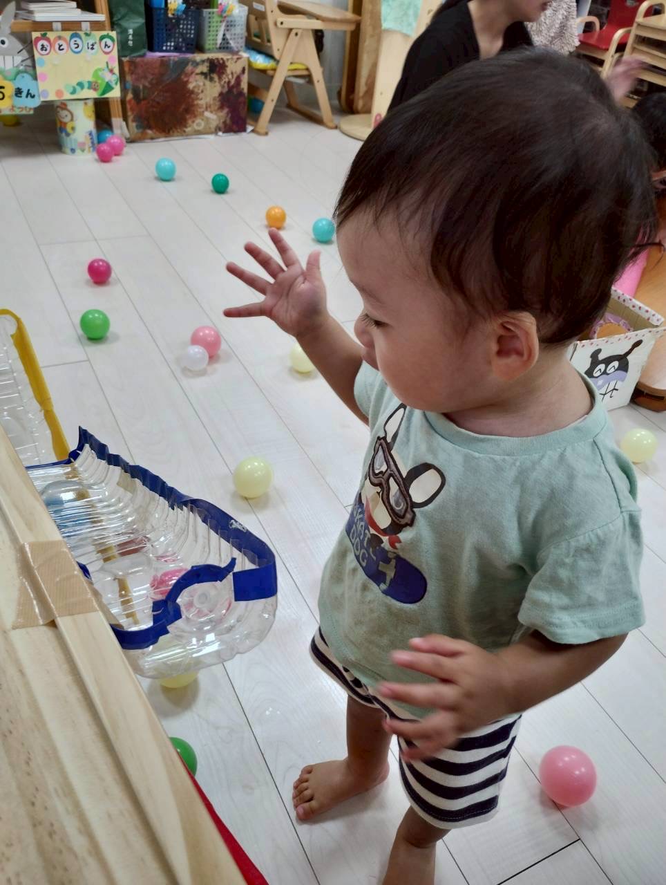 上からボールが転がってきたよ✨