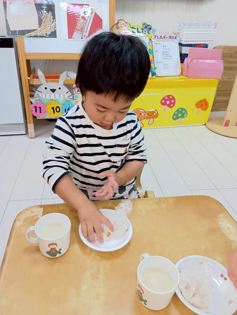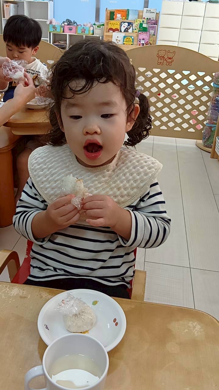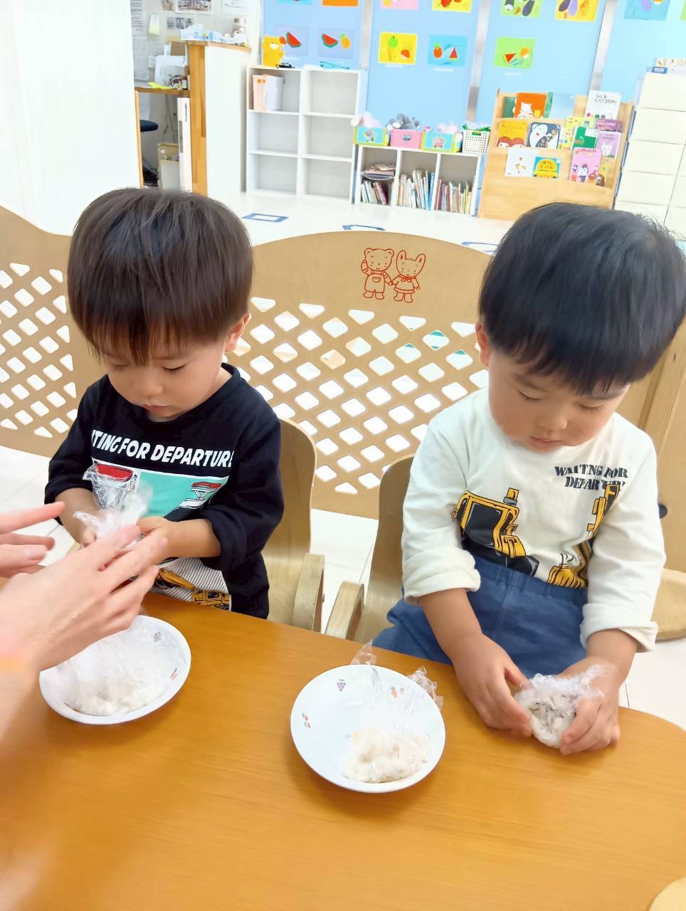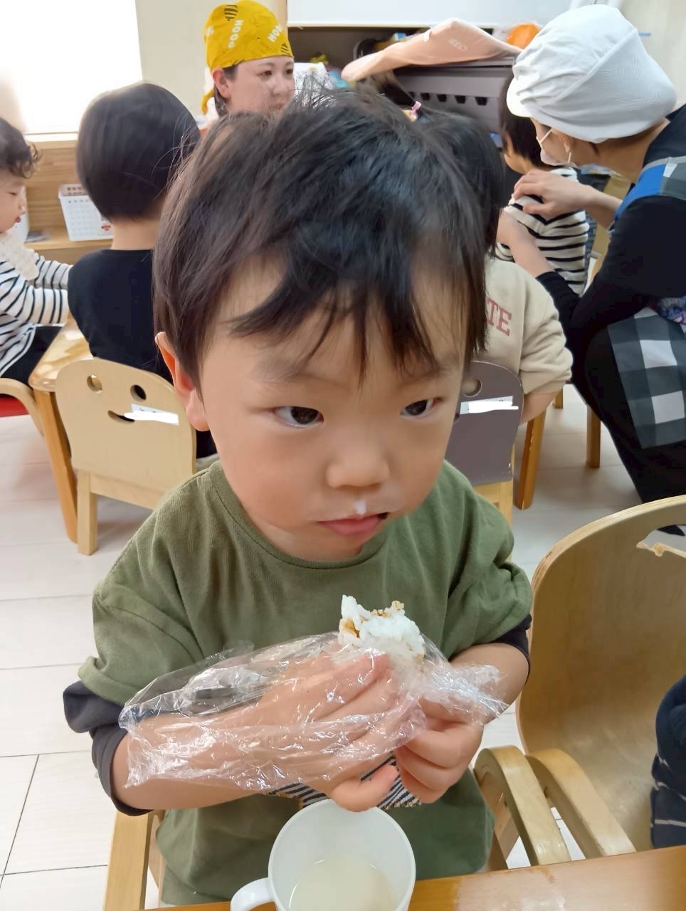 みんなが研いでくれたお米は給食の先生が夕方おやつでおにぎりにしてくれたよ🍙