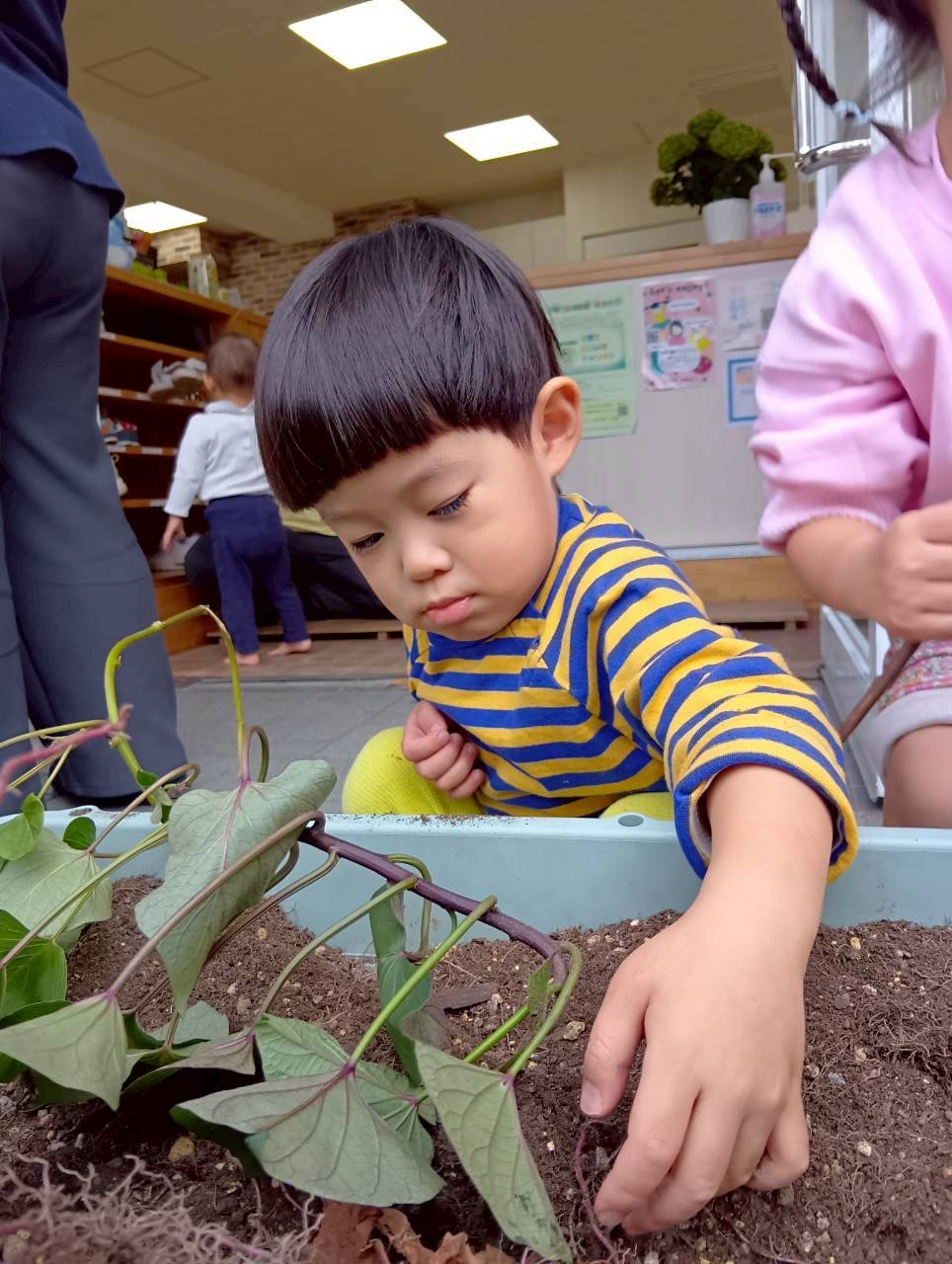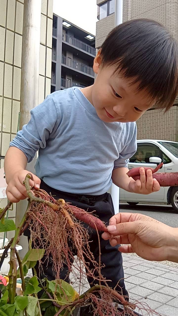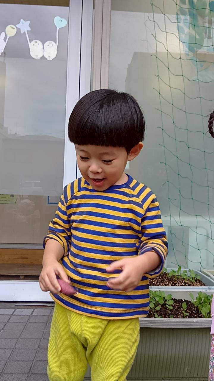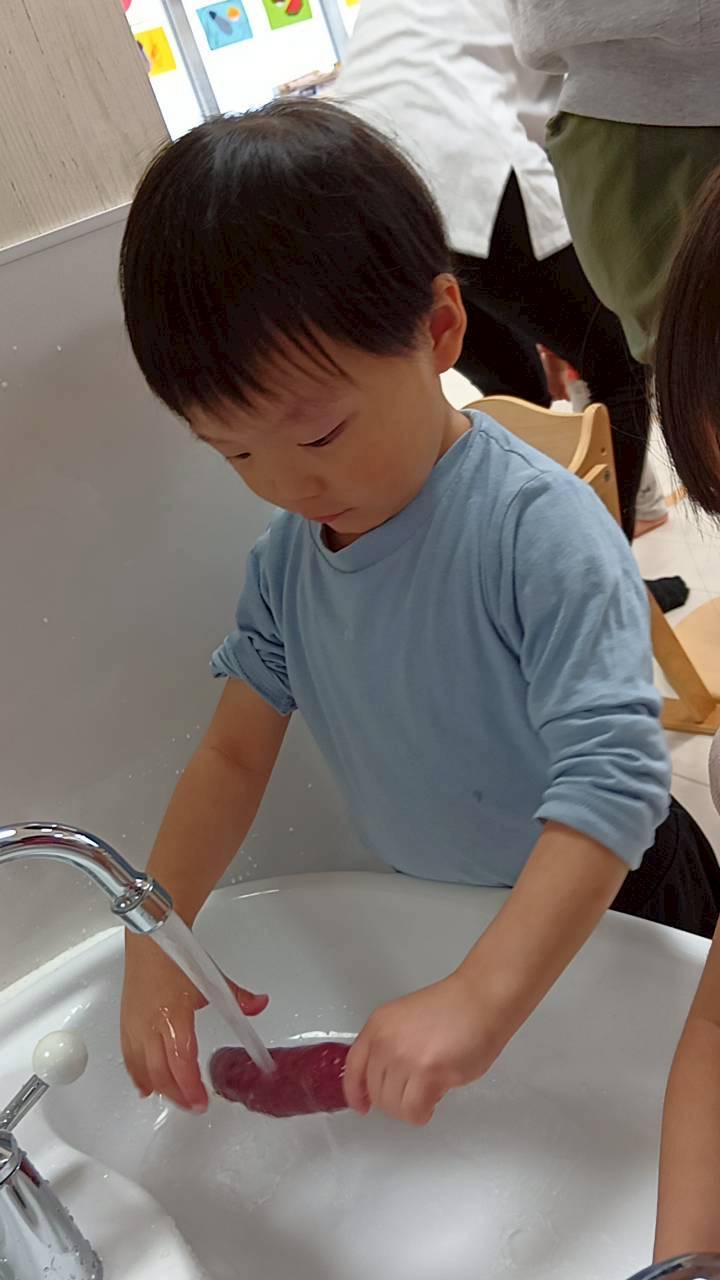 2歳児さんは、お芋を洗うお手伝いをしてくれました✨