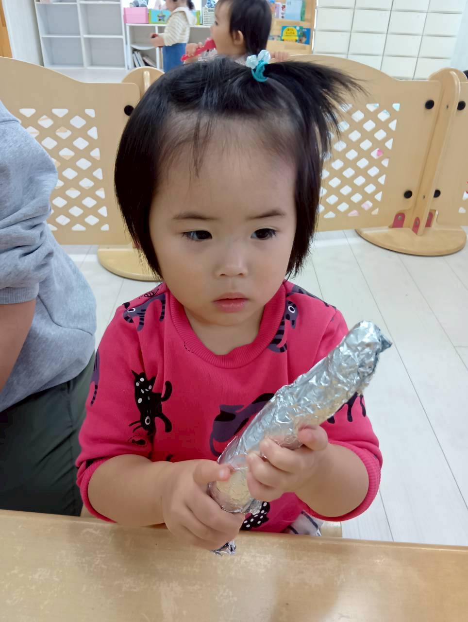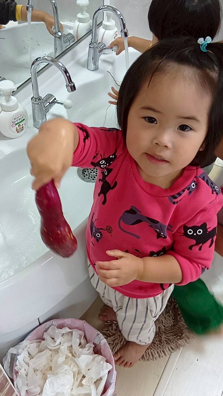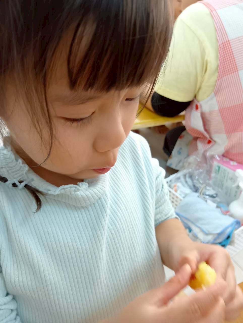 2歳児さんは、お芋を洗うお手伝いをしてくれました✨