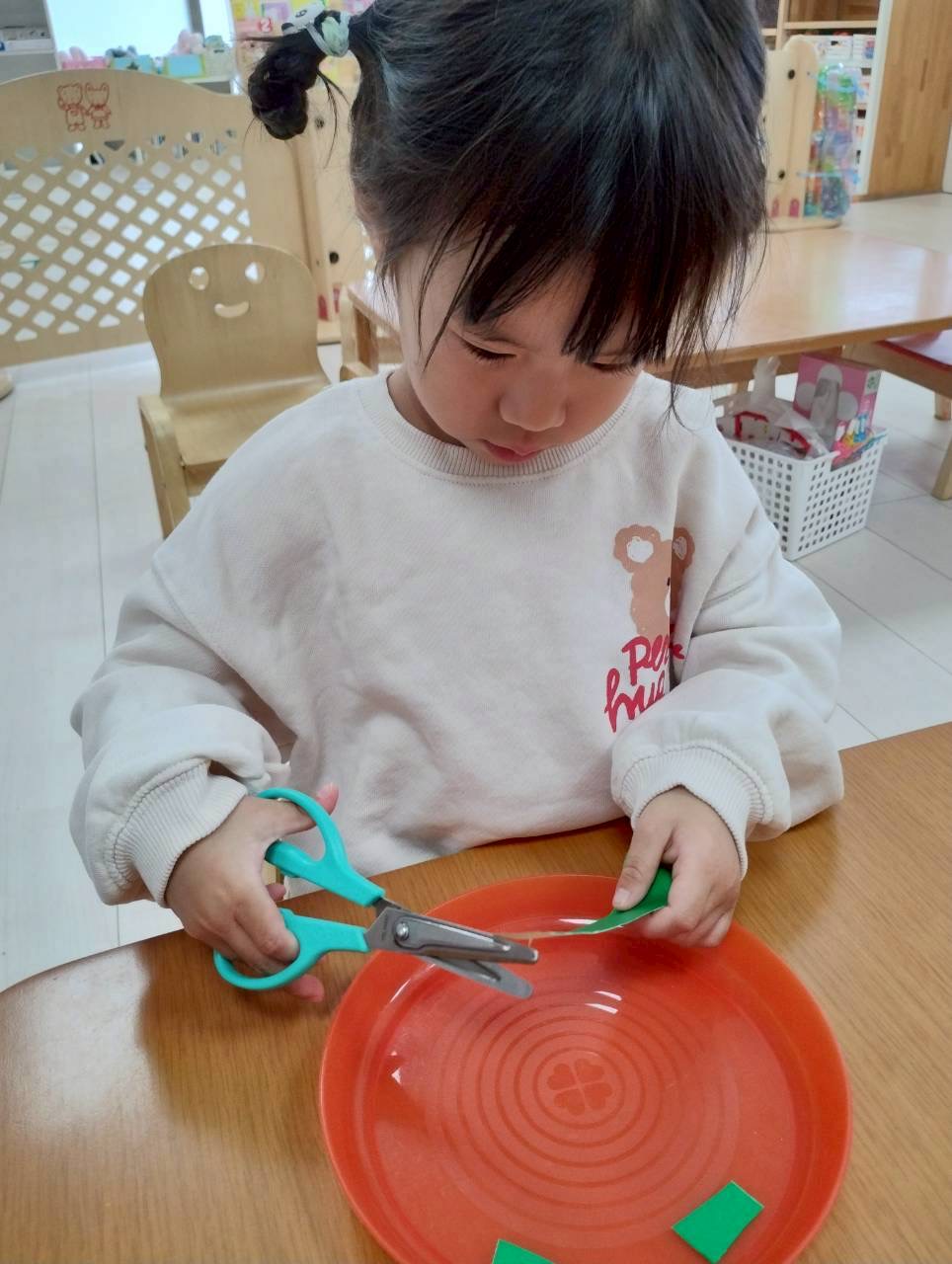 2歳児さんはハサミの1回切りに挑戦しました✂️✨