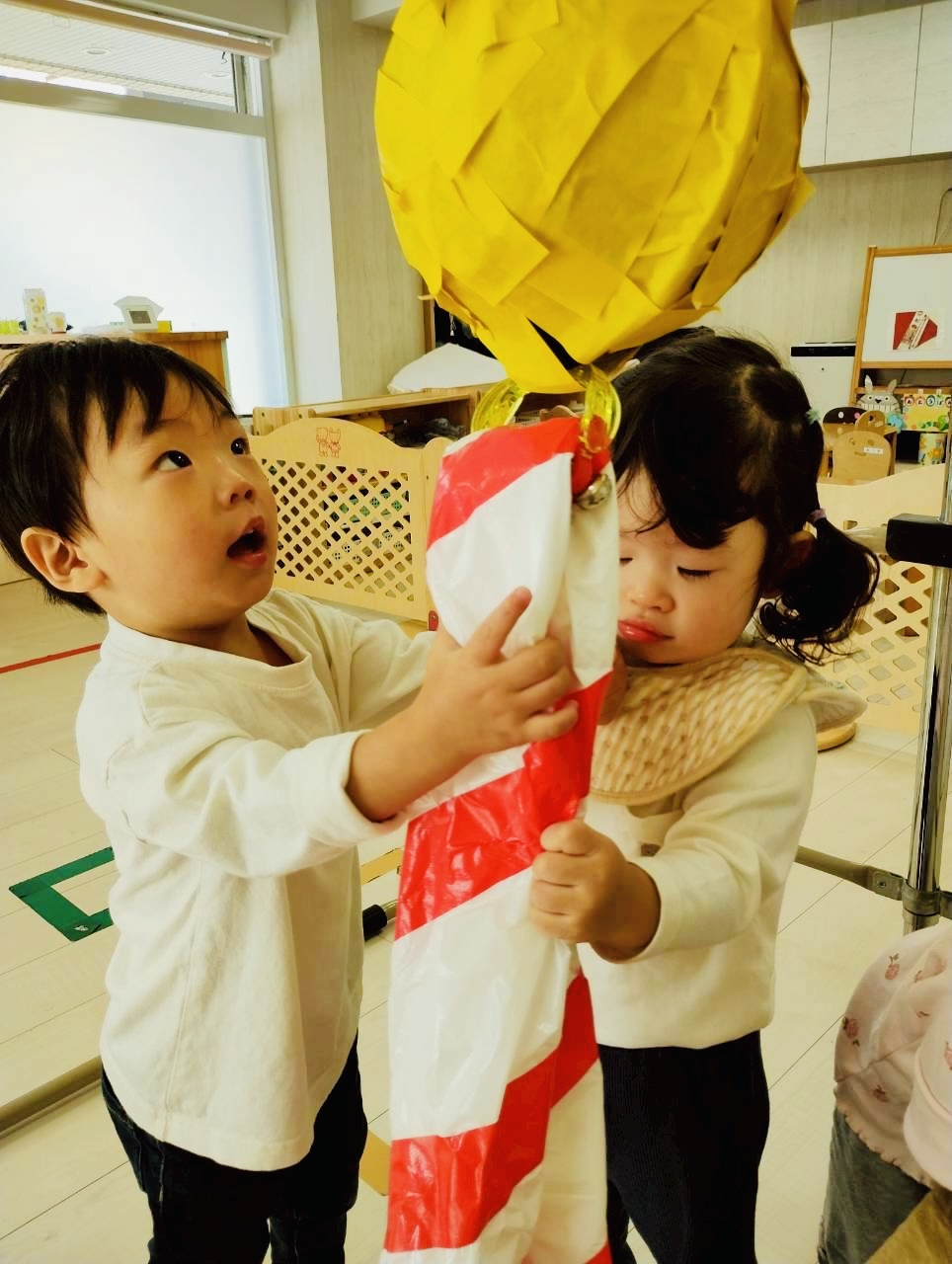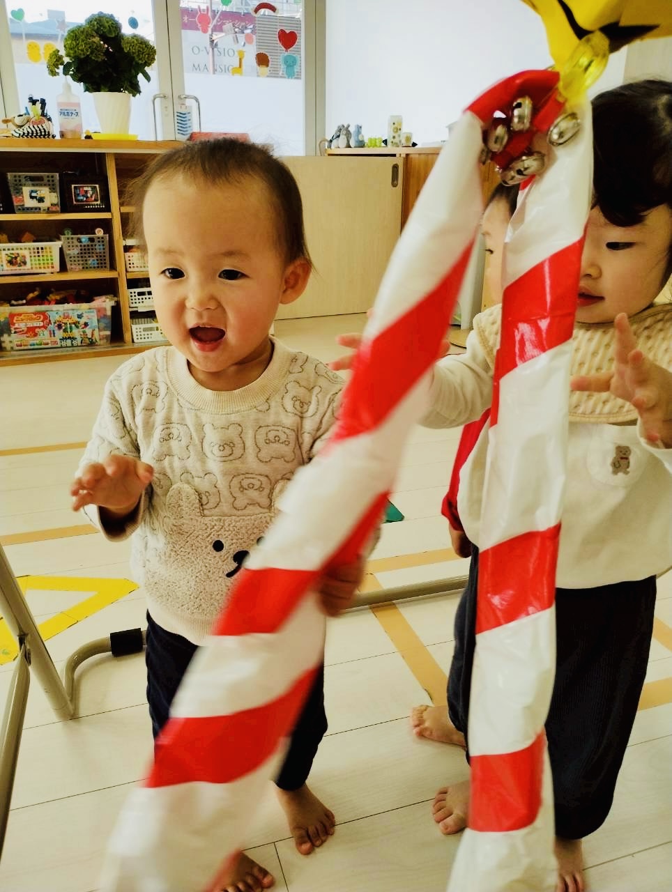 0.1歳児さんは、保育園で手作りの神社でお参りをしました🛎️