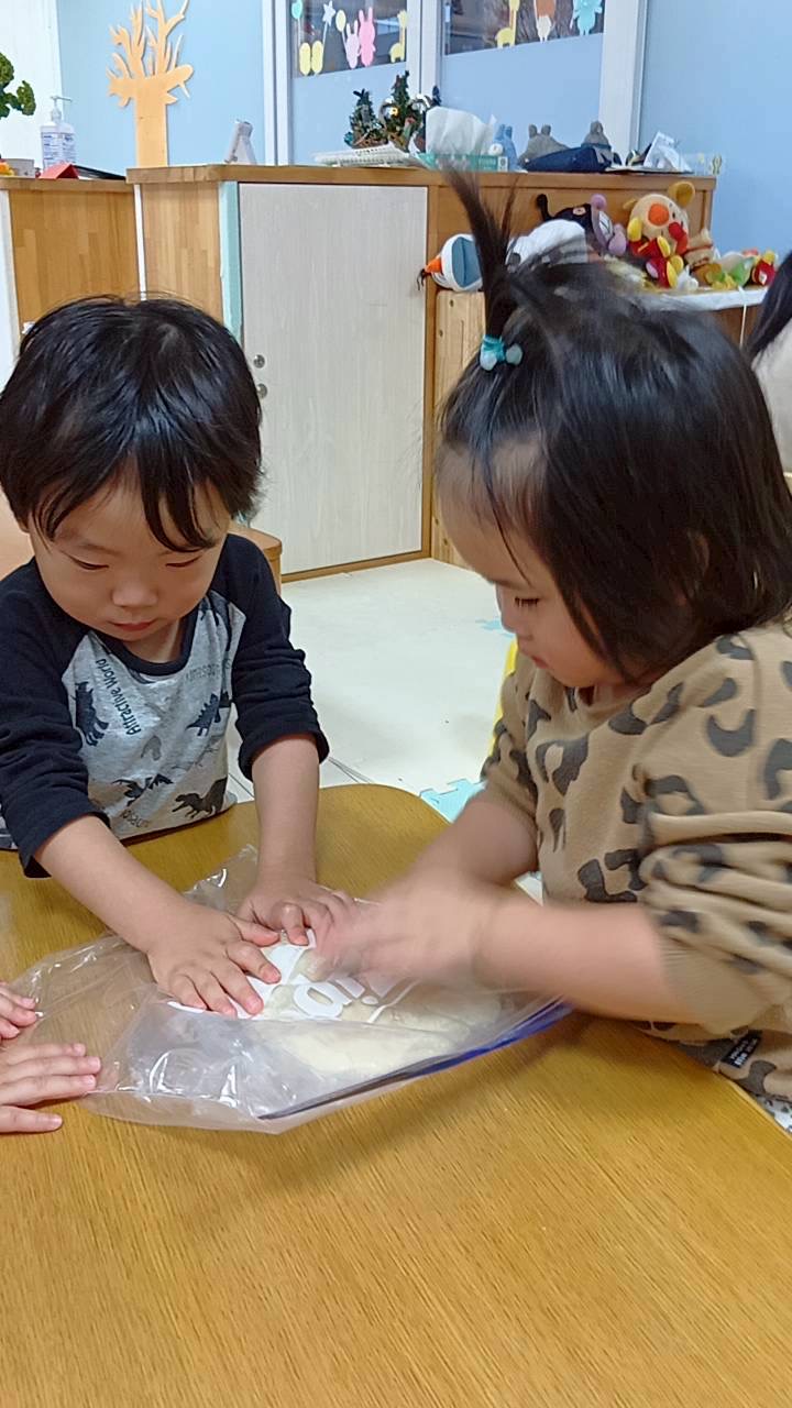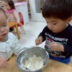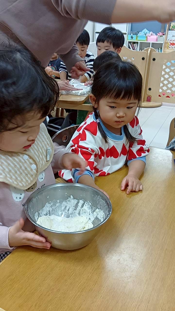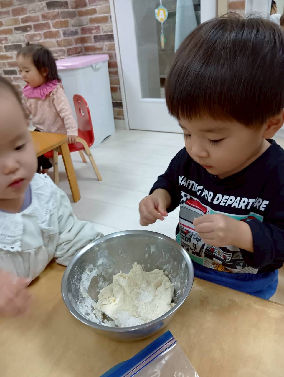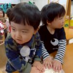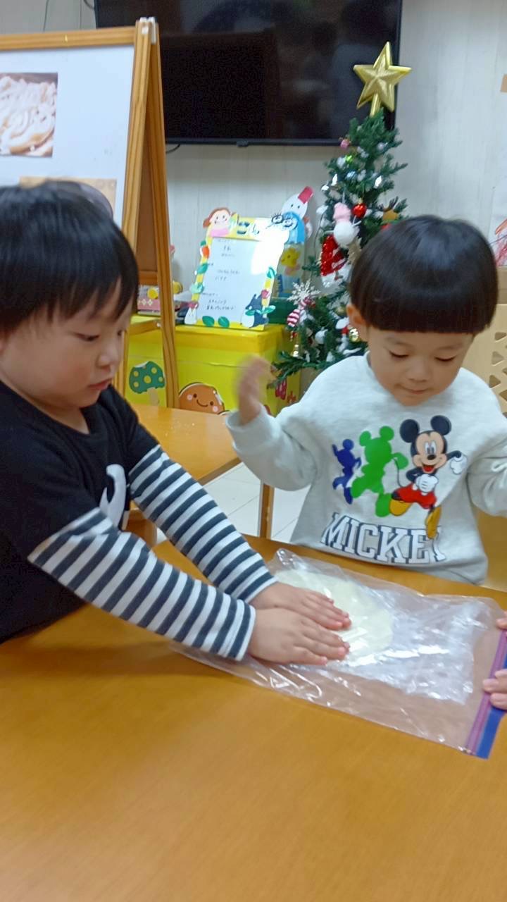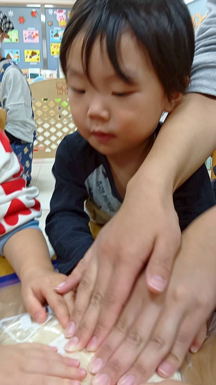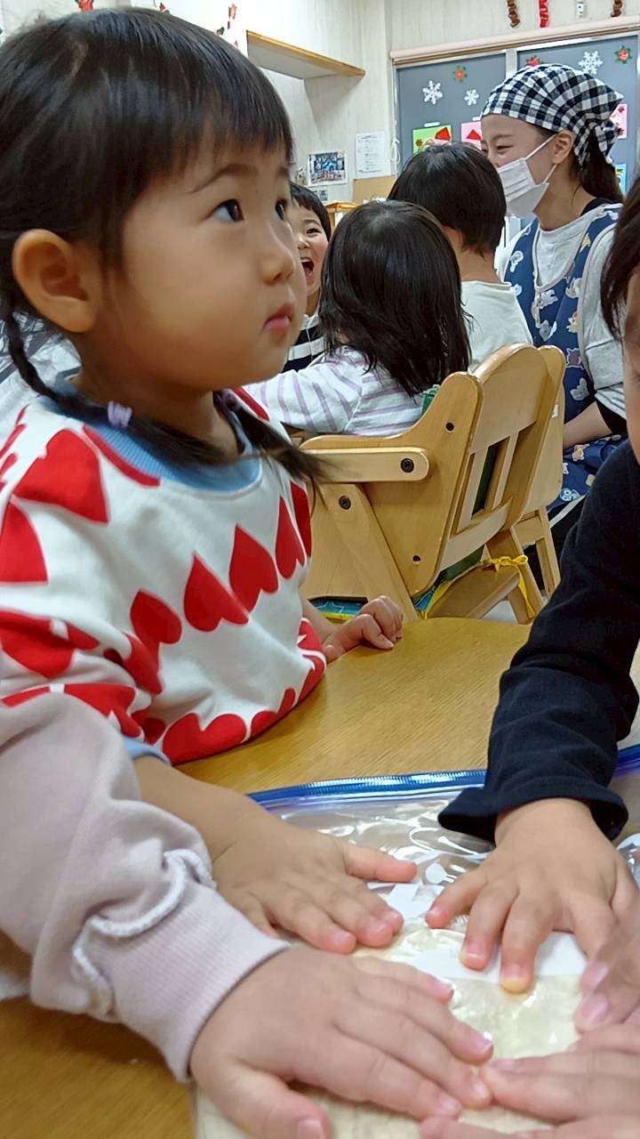 2歳児さんは足踏みで生地を伸ばすお手伝いもしてくれました☺️