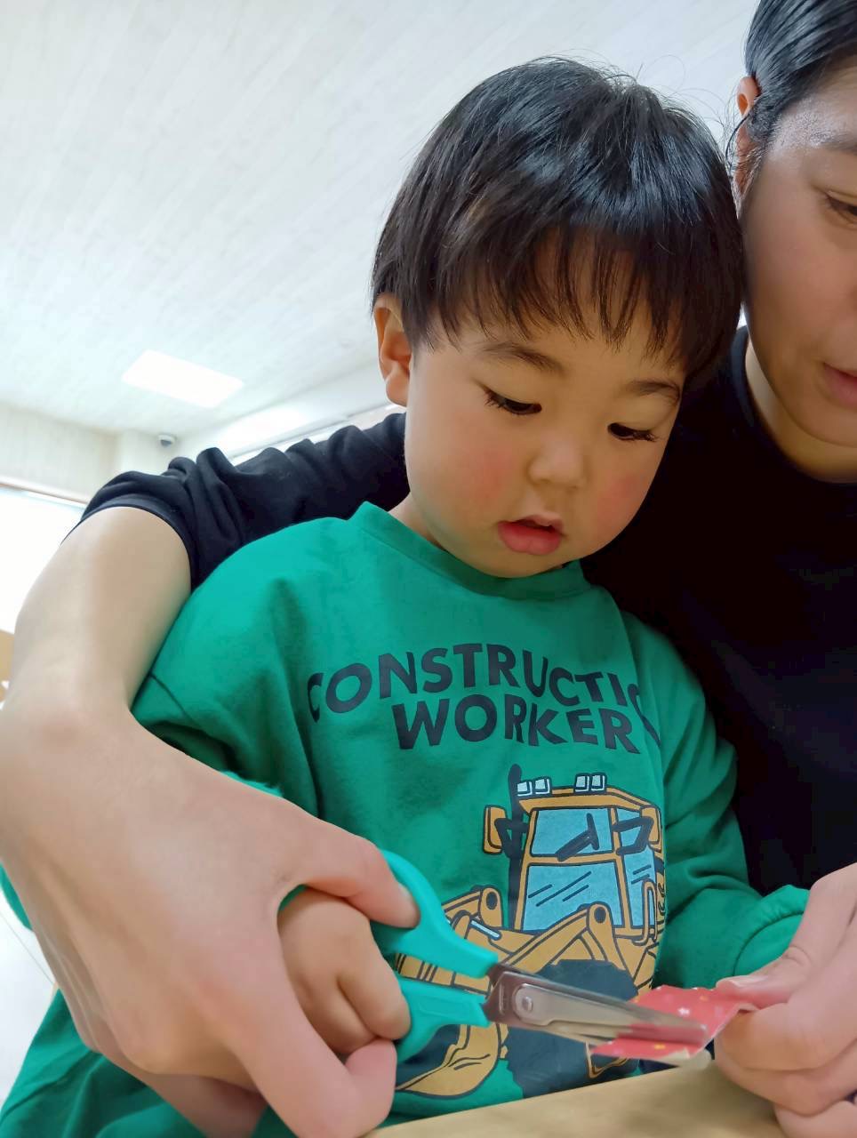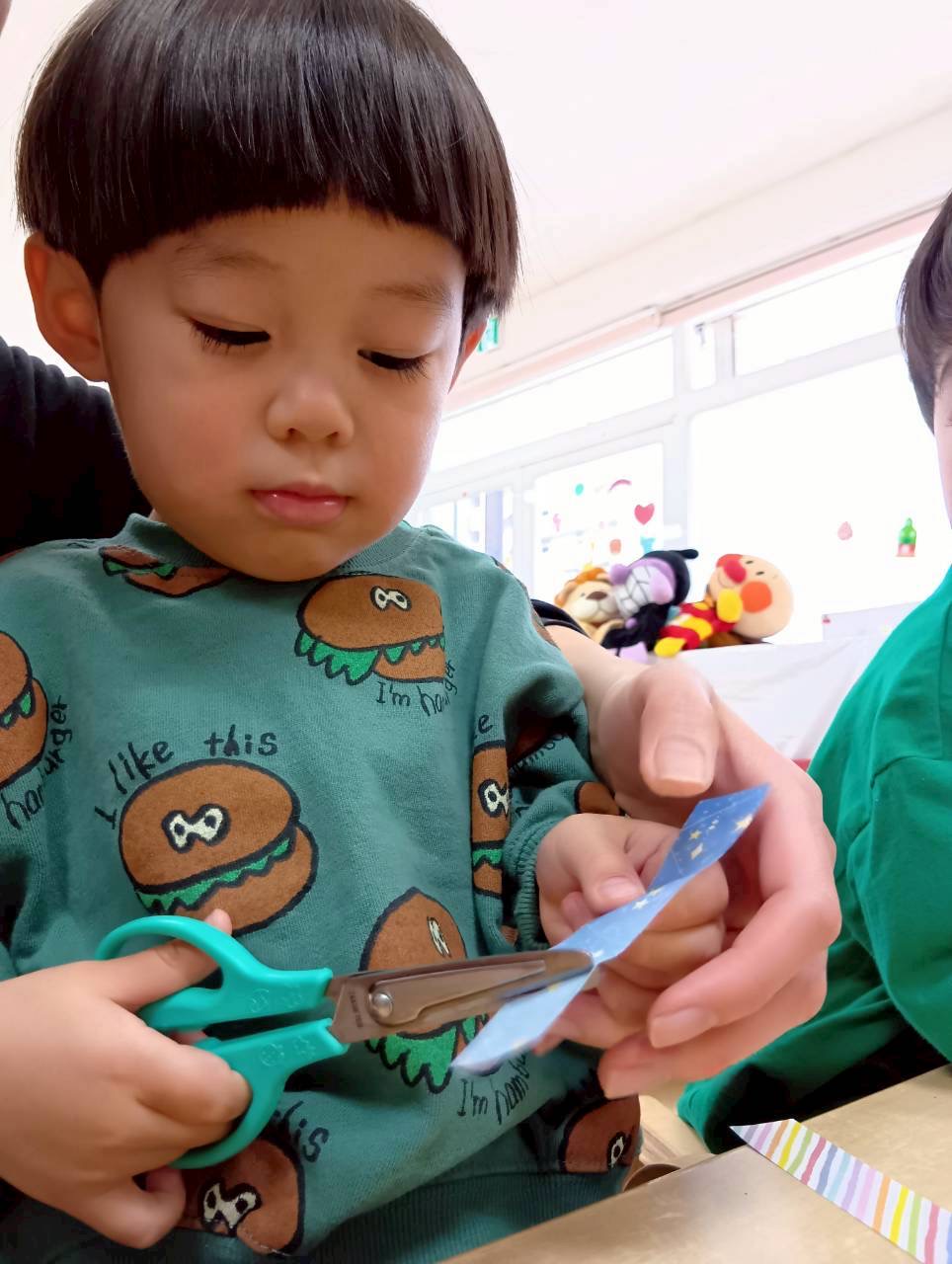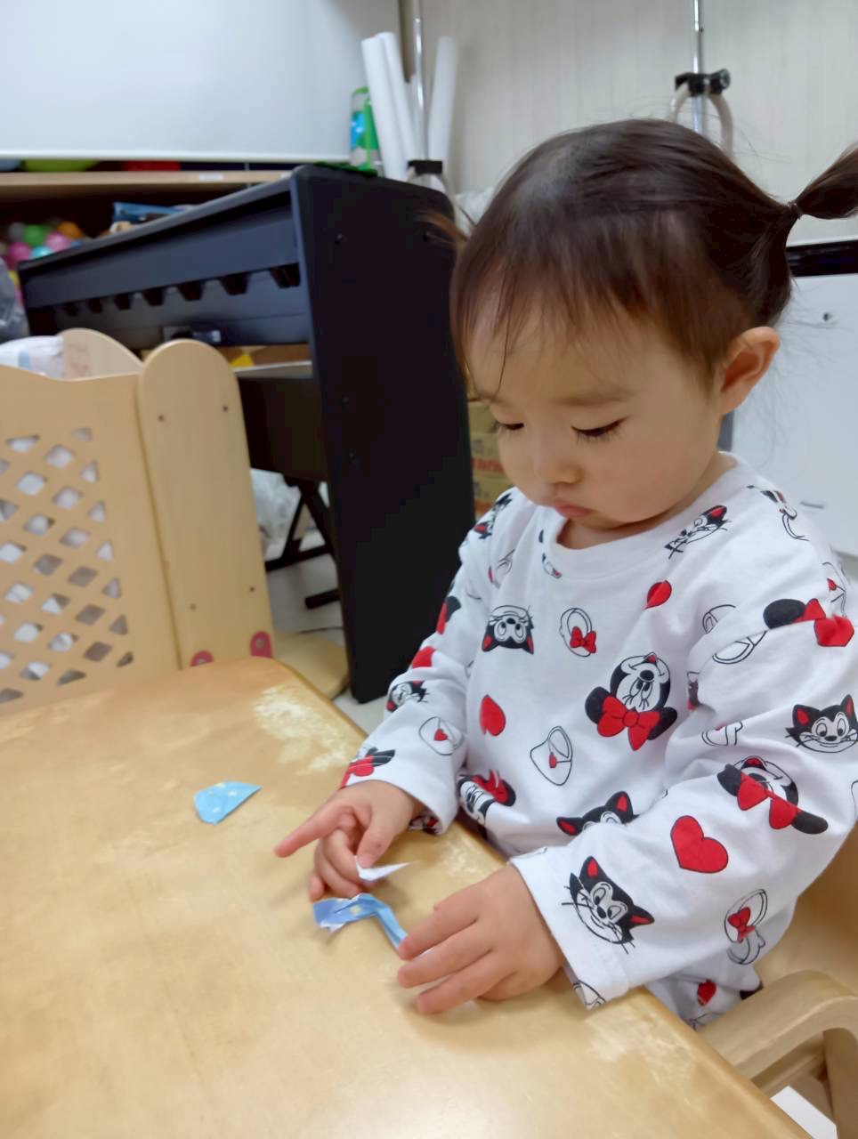 折り紙を2歳児はハサミを使いました✂️✨