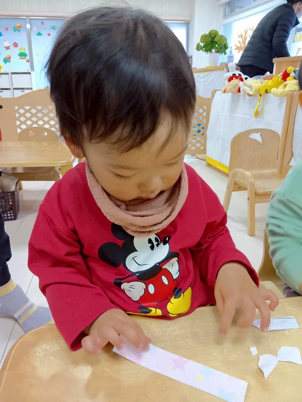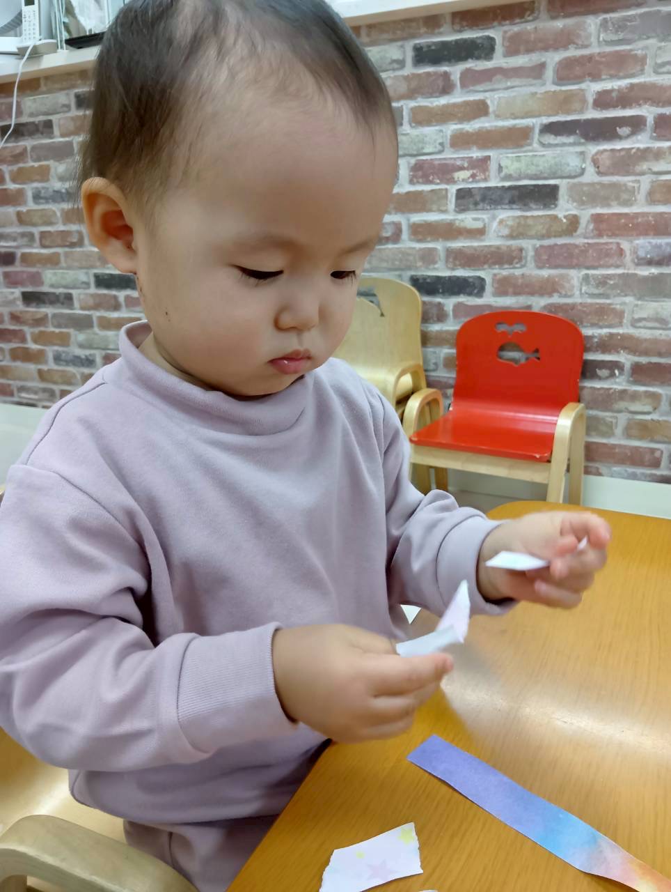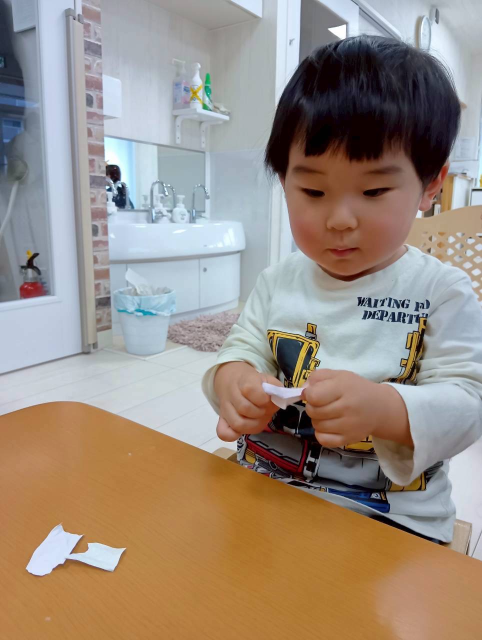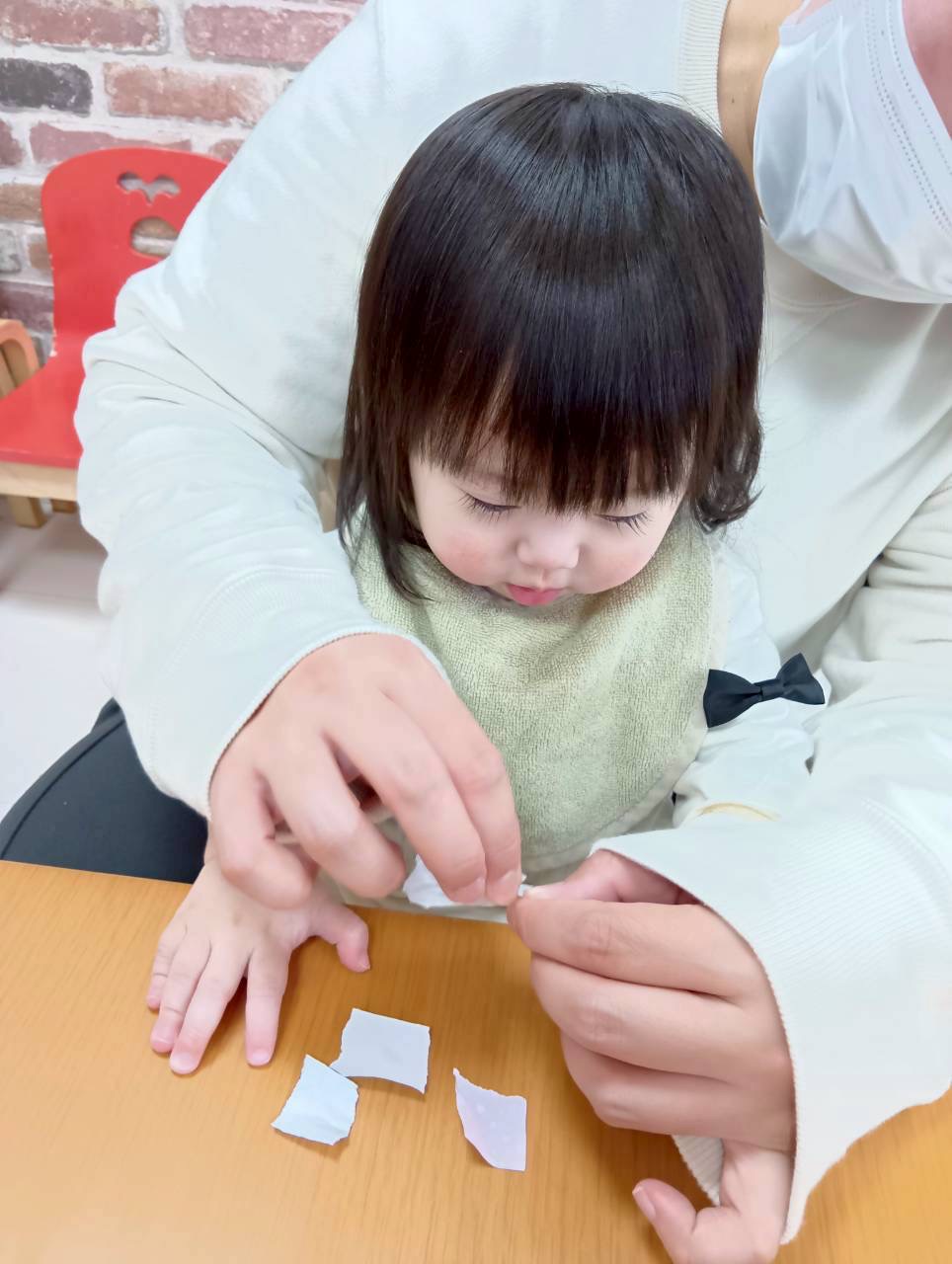 0.1歳児は折り紙ちぎりを頑張りました💫