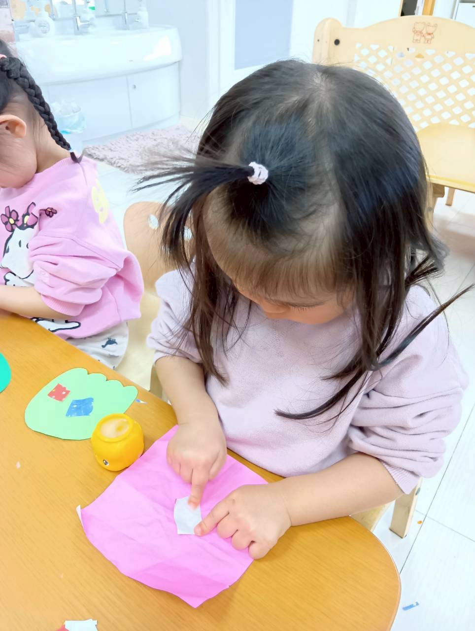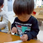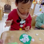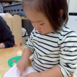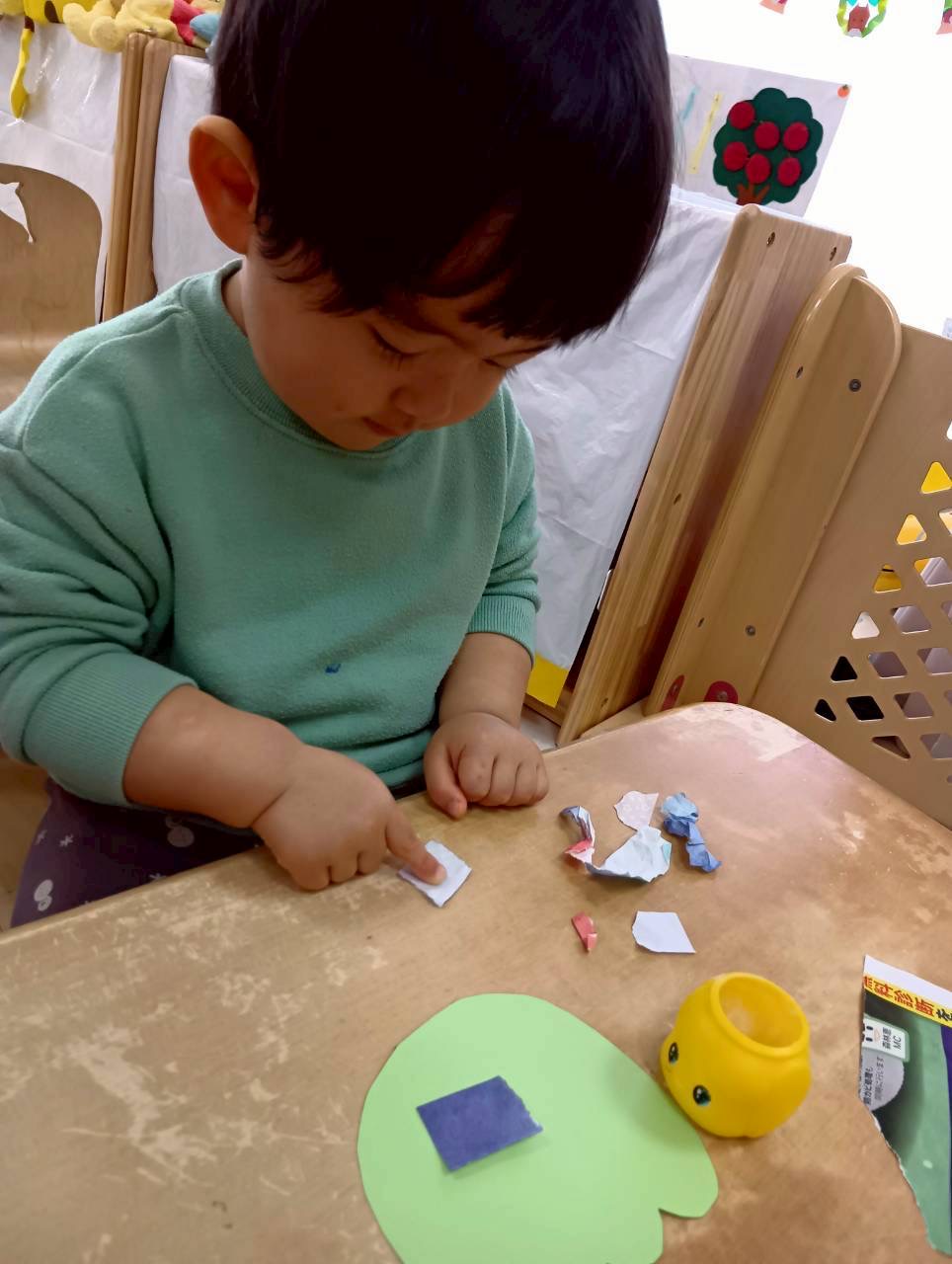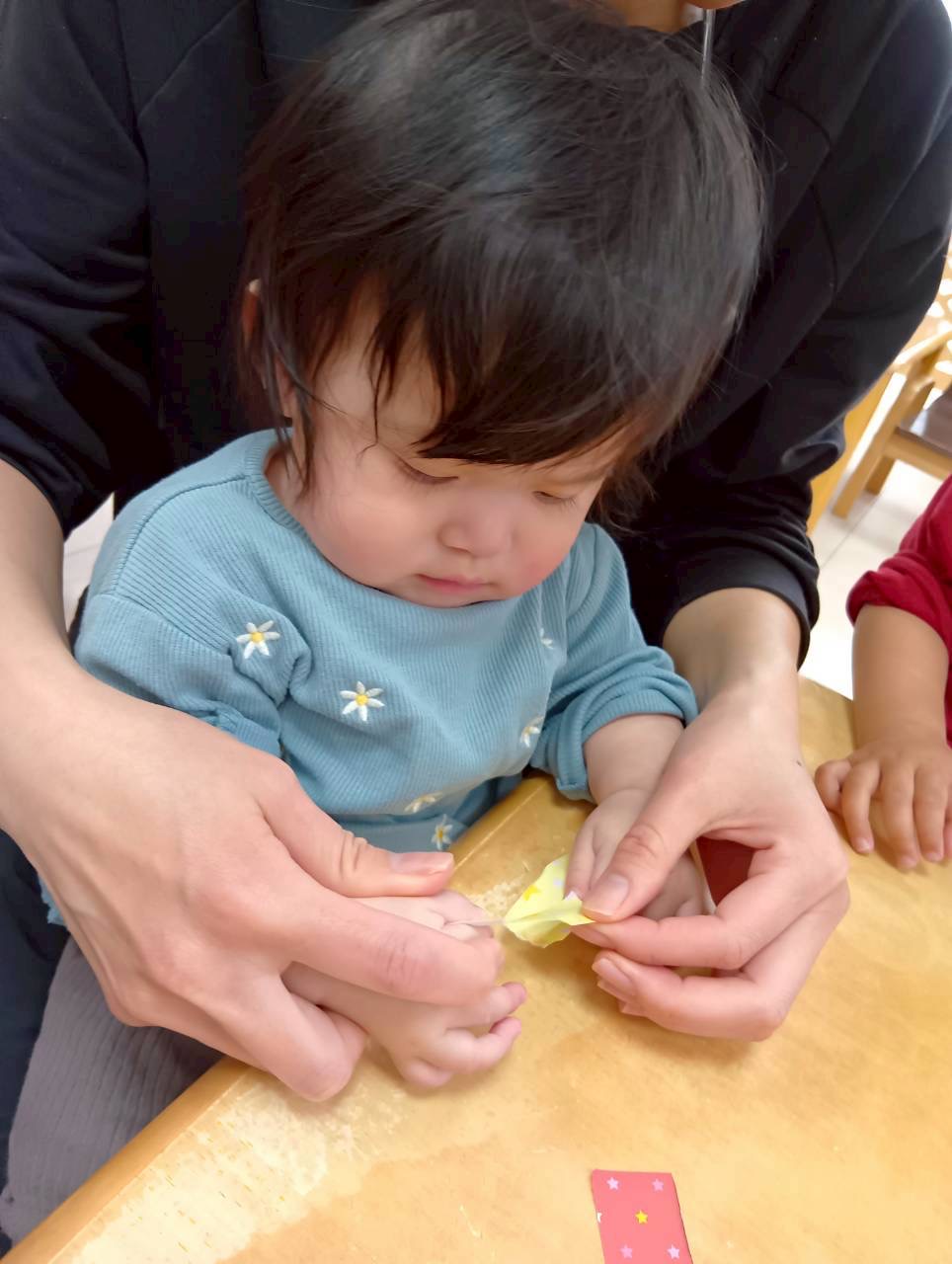 0.1歳児は折り紙ちぎりを頑張りました💫