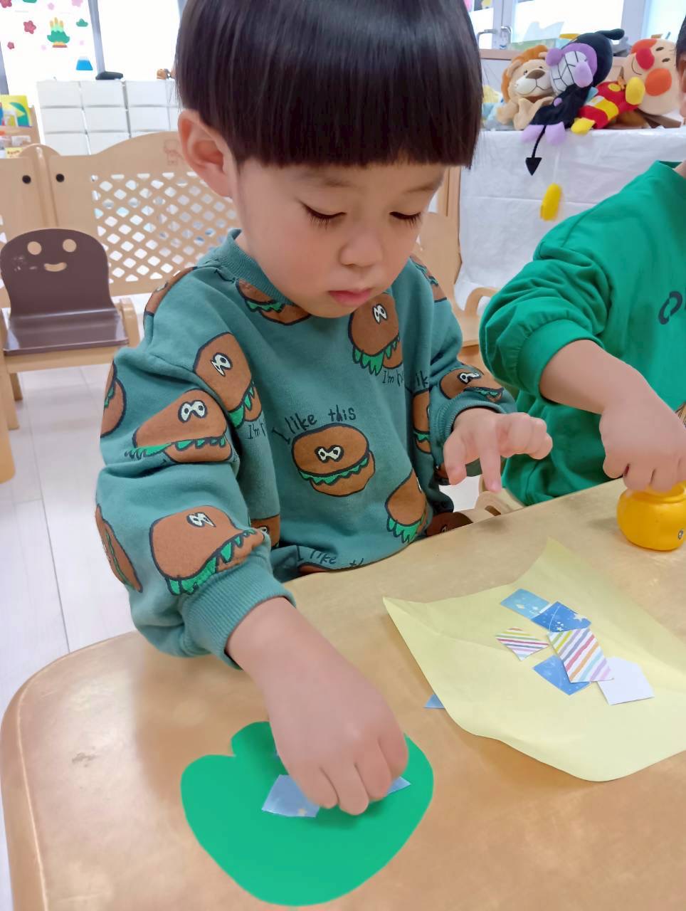 丁寧にのりをつけ、上手に貼れていました🎶