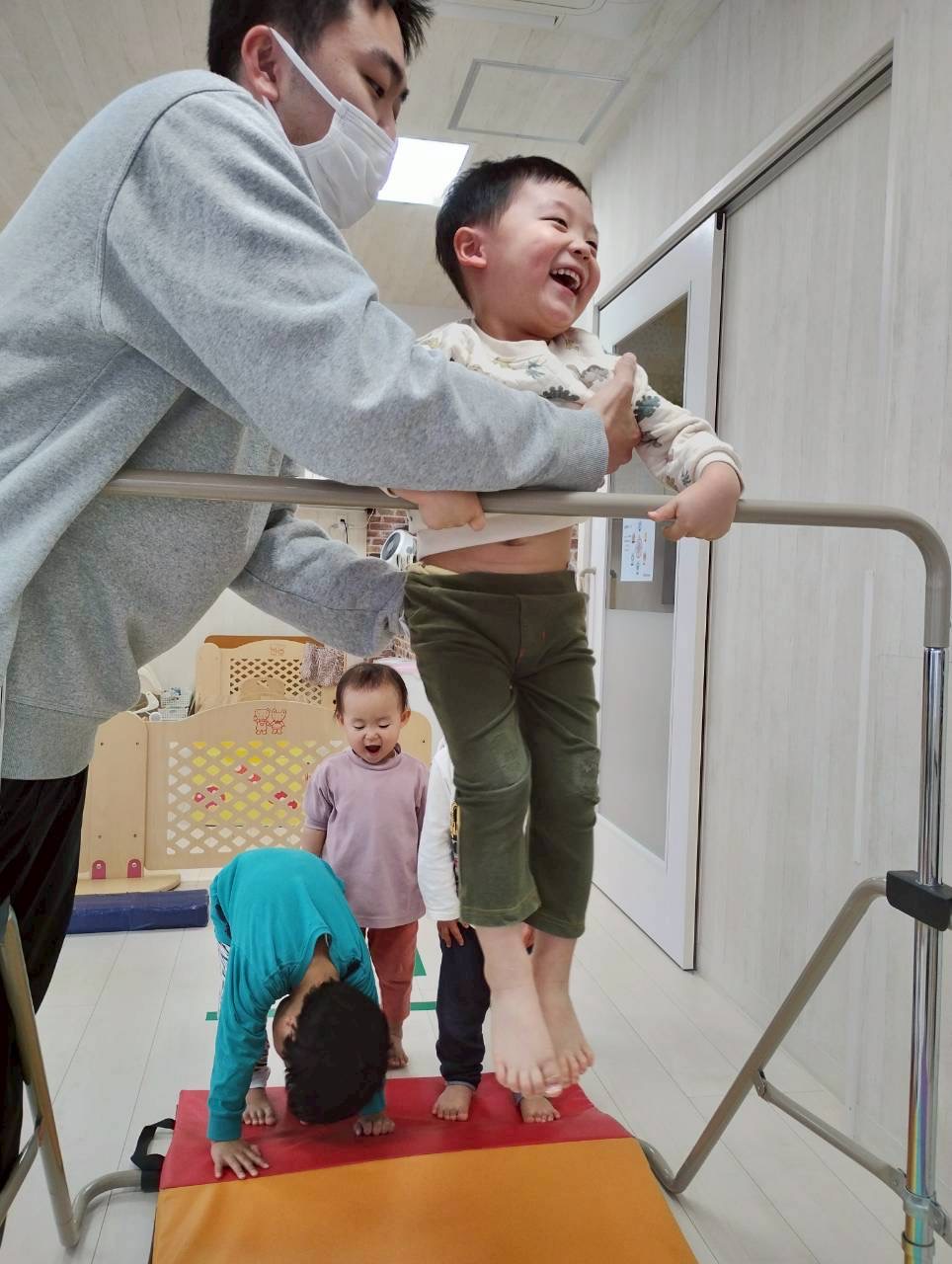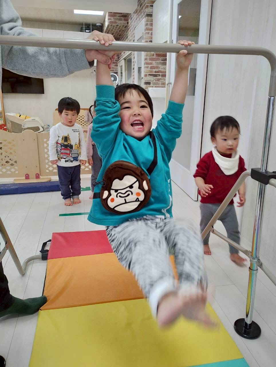 鉄棒も落ちないようにしっかりと握って…何秒ぶら下がれるかな?☺️