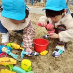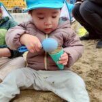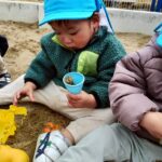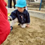 0歳児さんも一緒にお砂で遊んだよ🎶