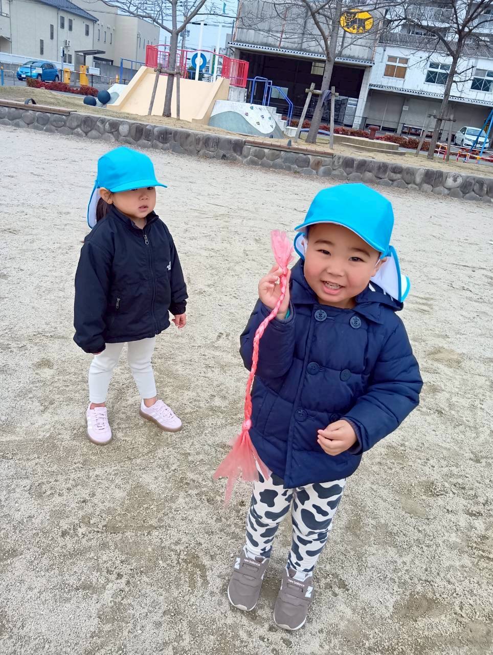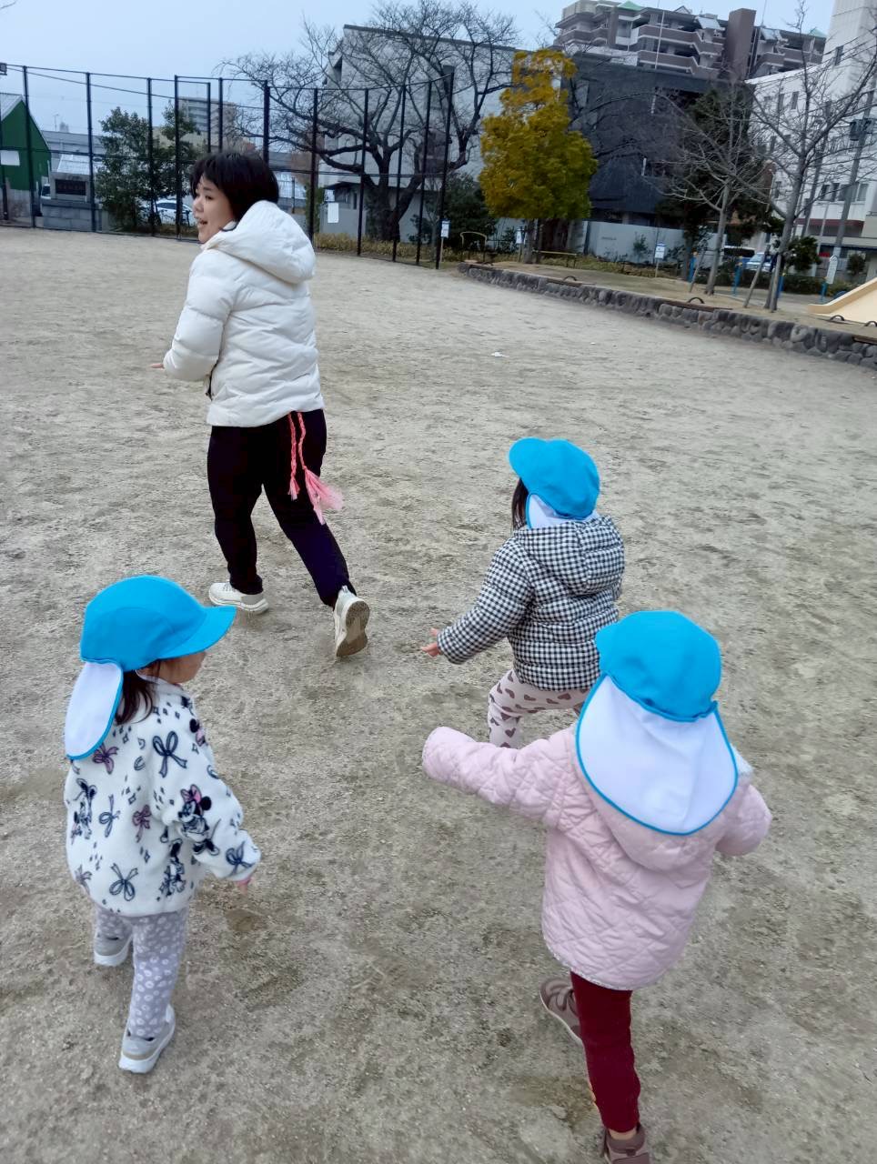公園では、しっぽ取りゲームと砂遊びをしました!