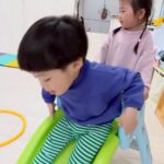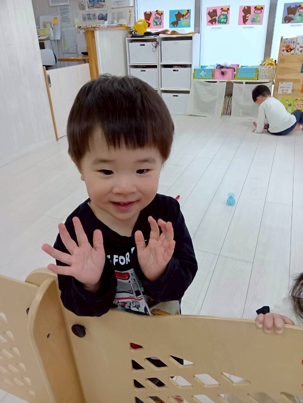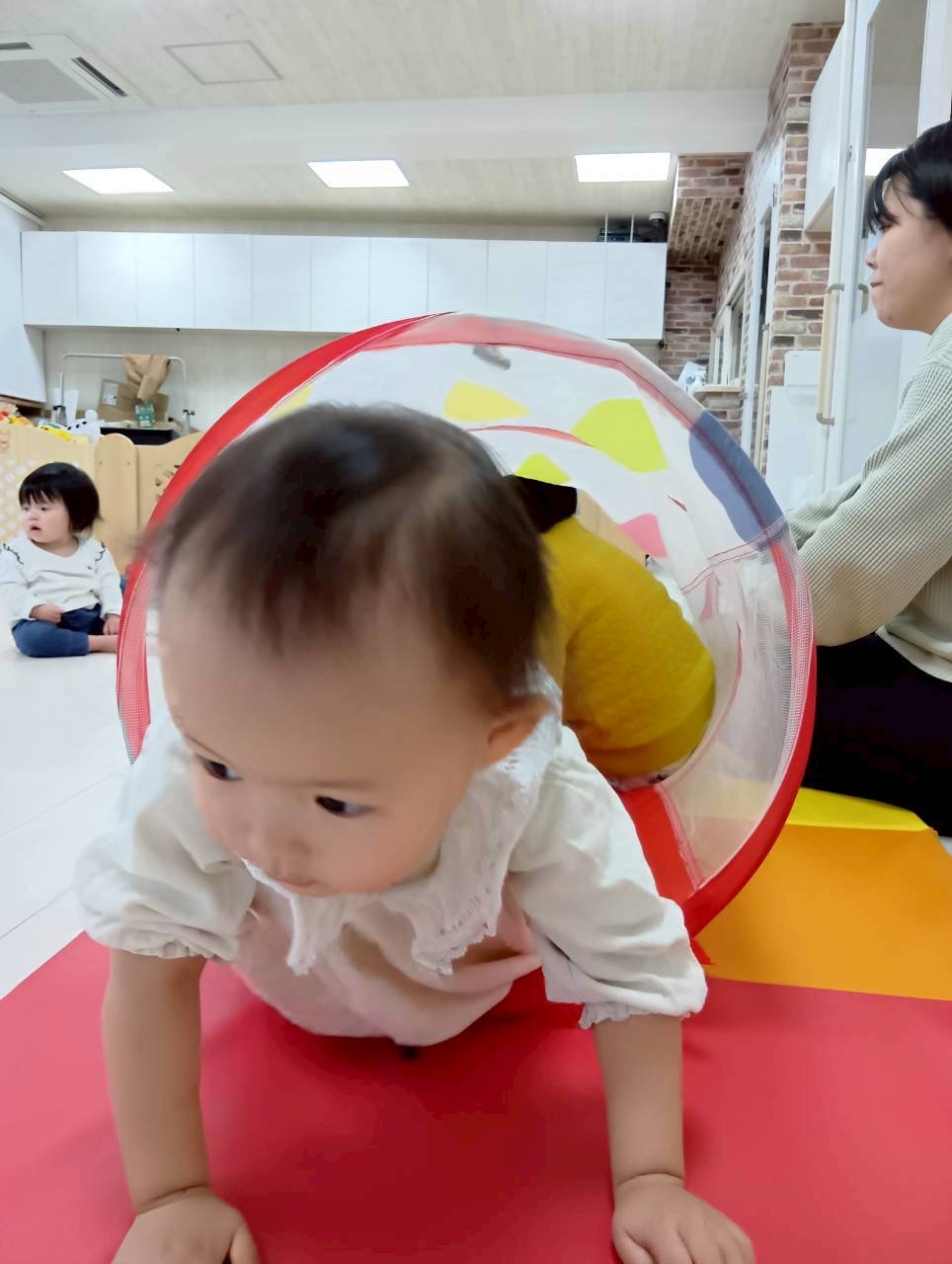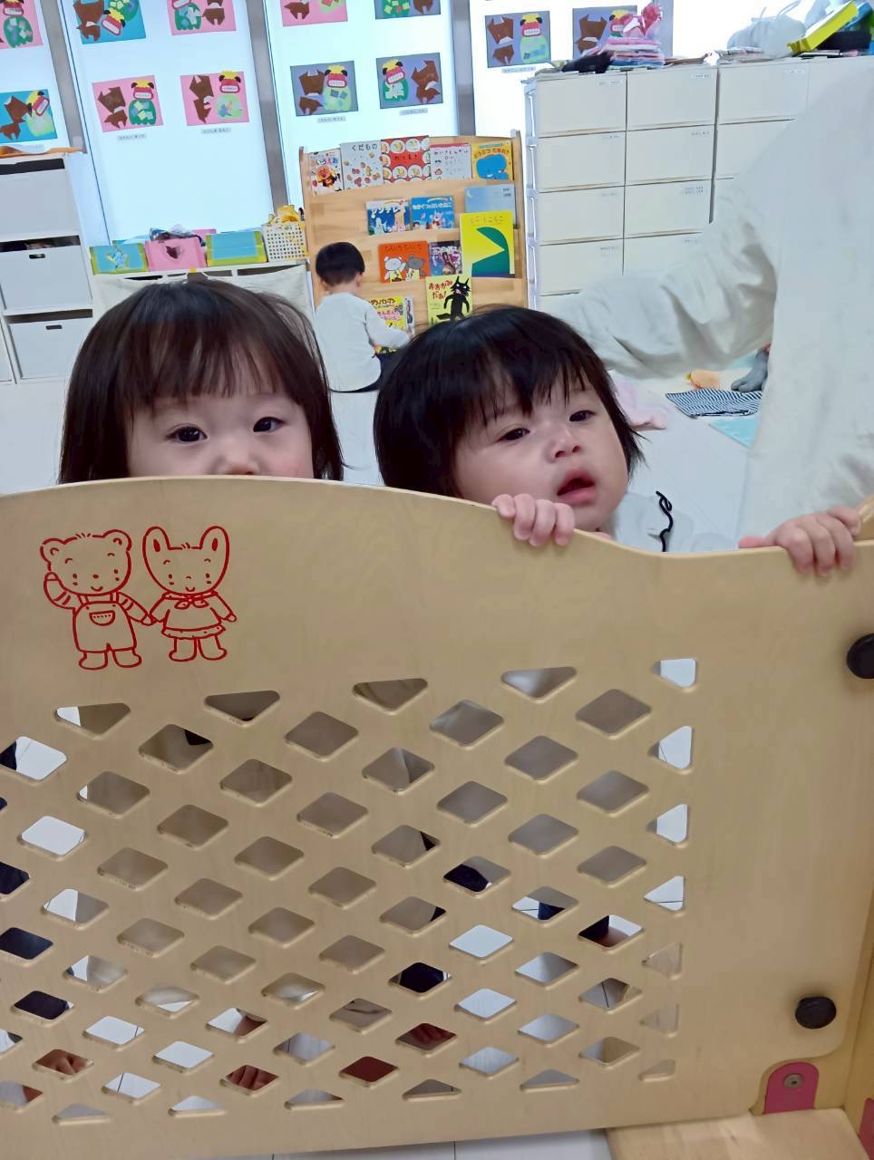朝の可愛い一コマ…0歳児さんがサークルからばっ❣️
