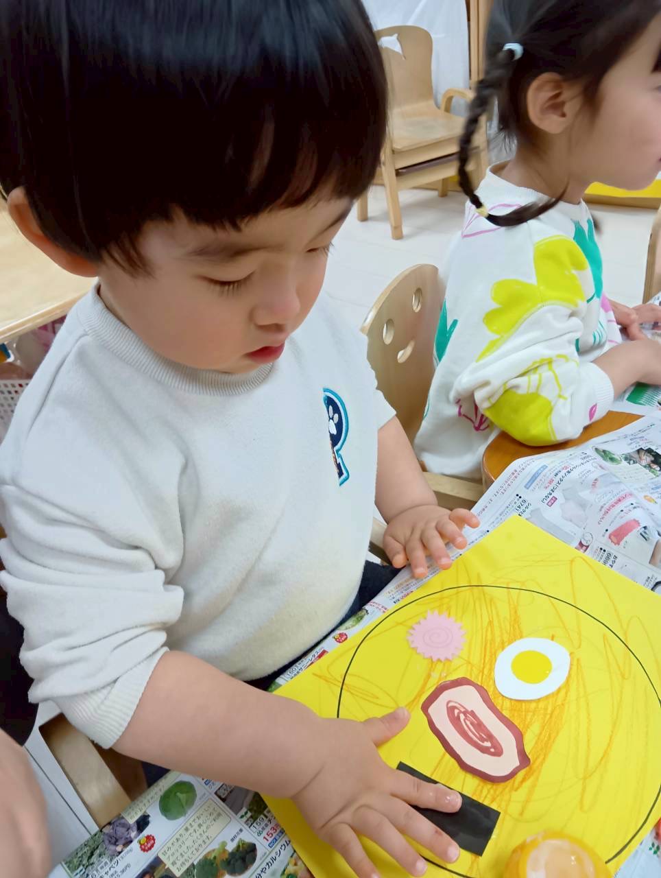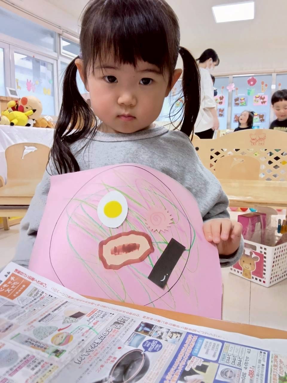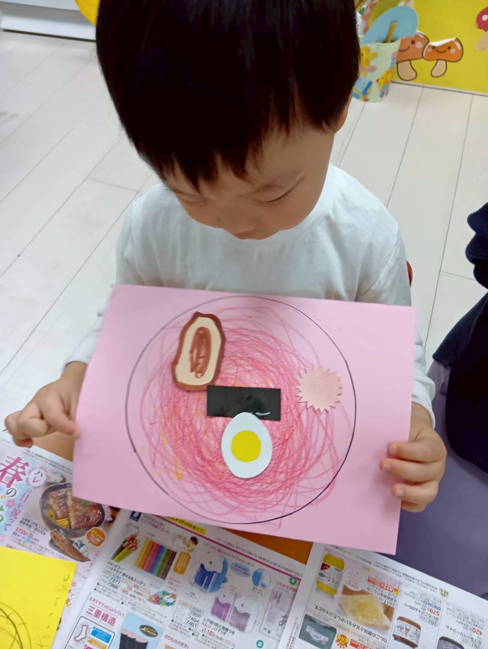麺を描いたり、のりつけも楽しみました💓