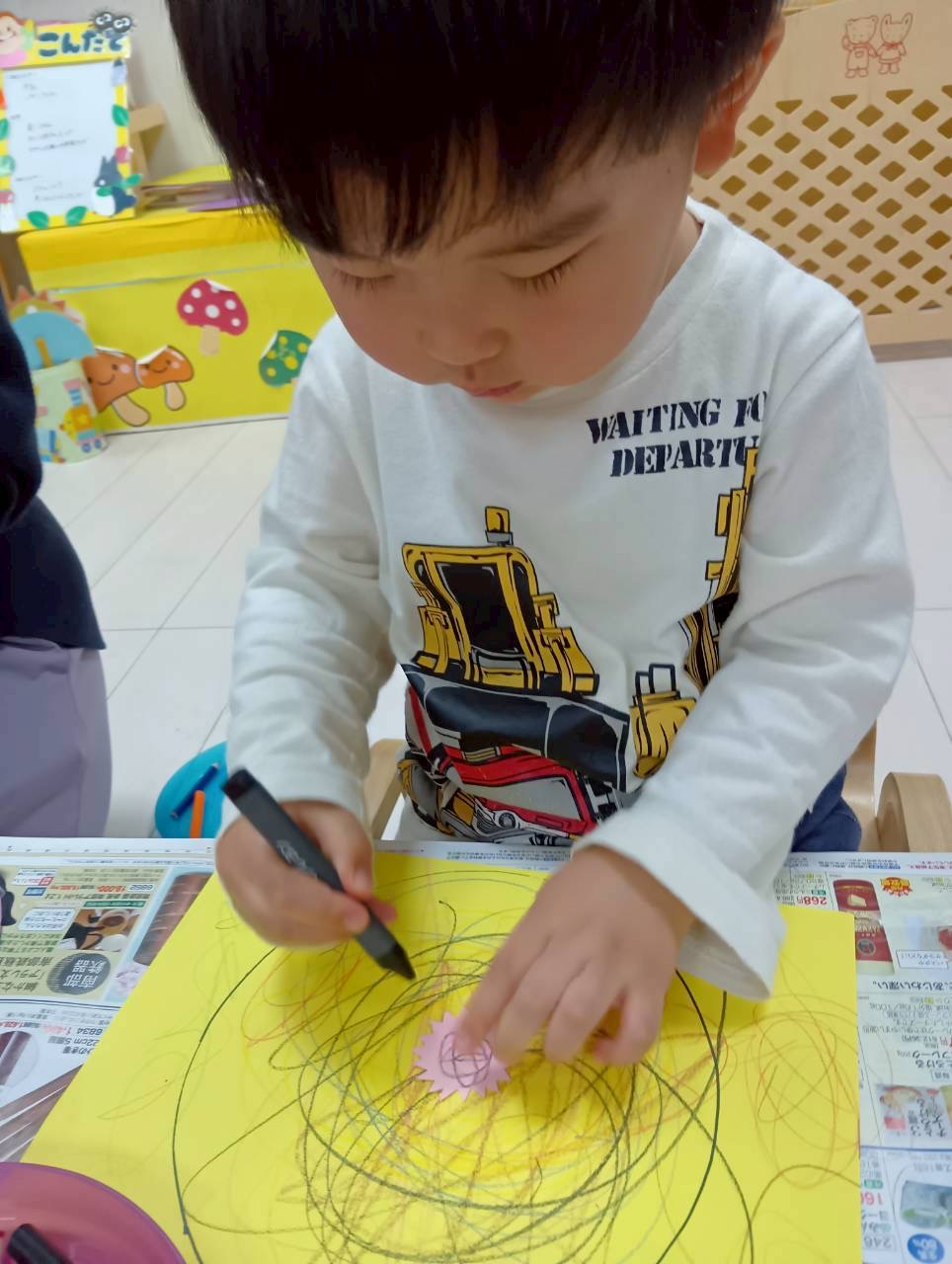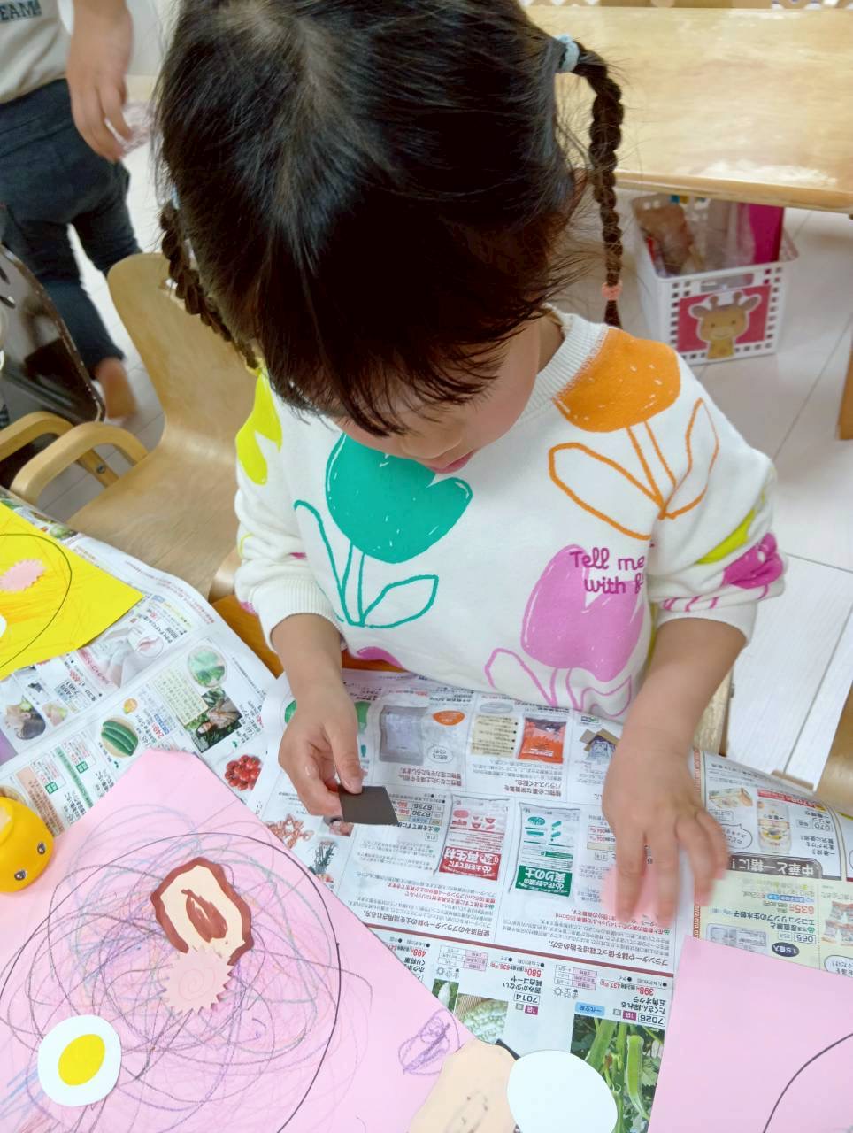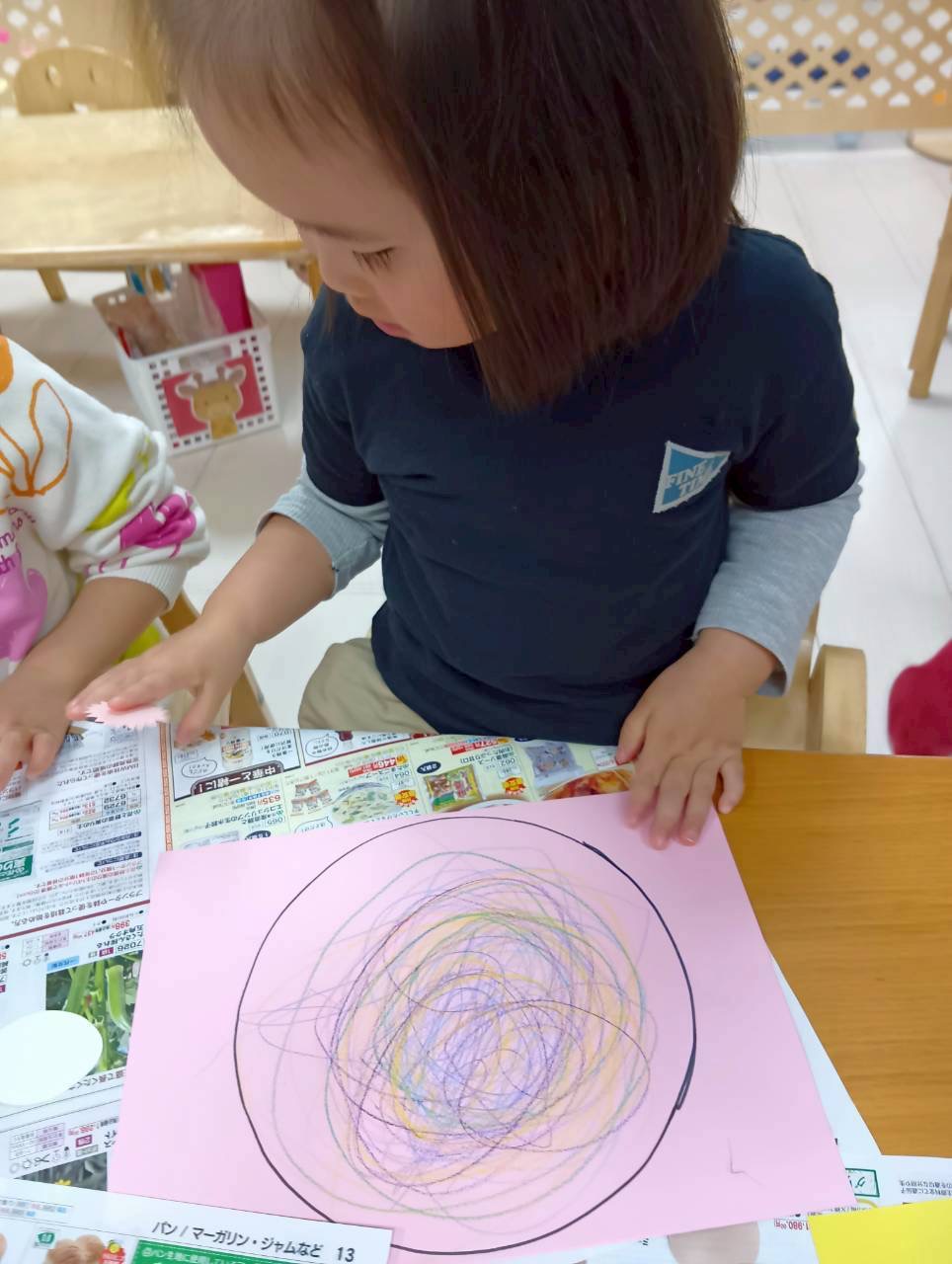 麺を描いたり、のりつけも楽しみました💓