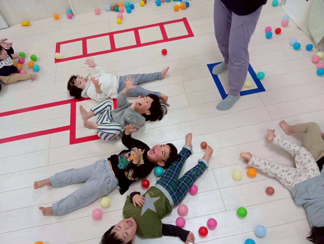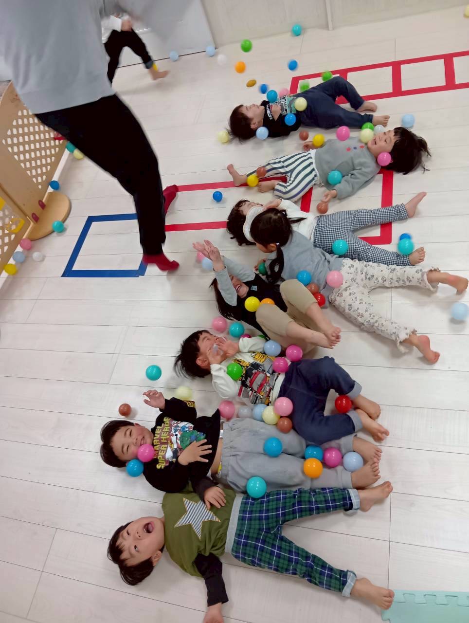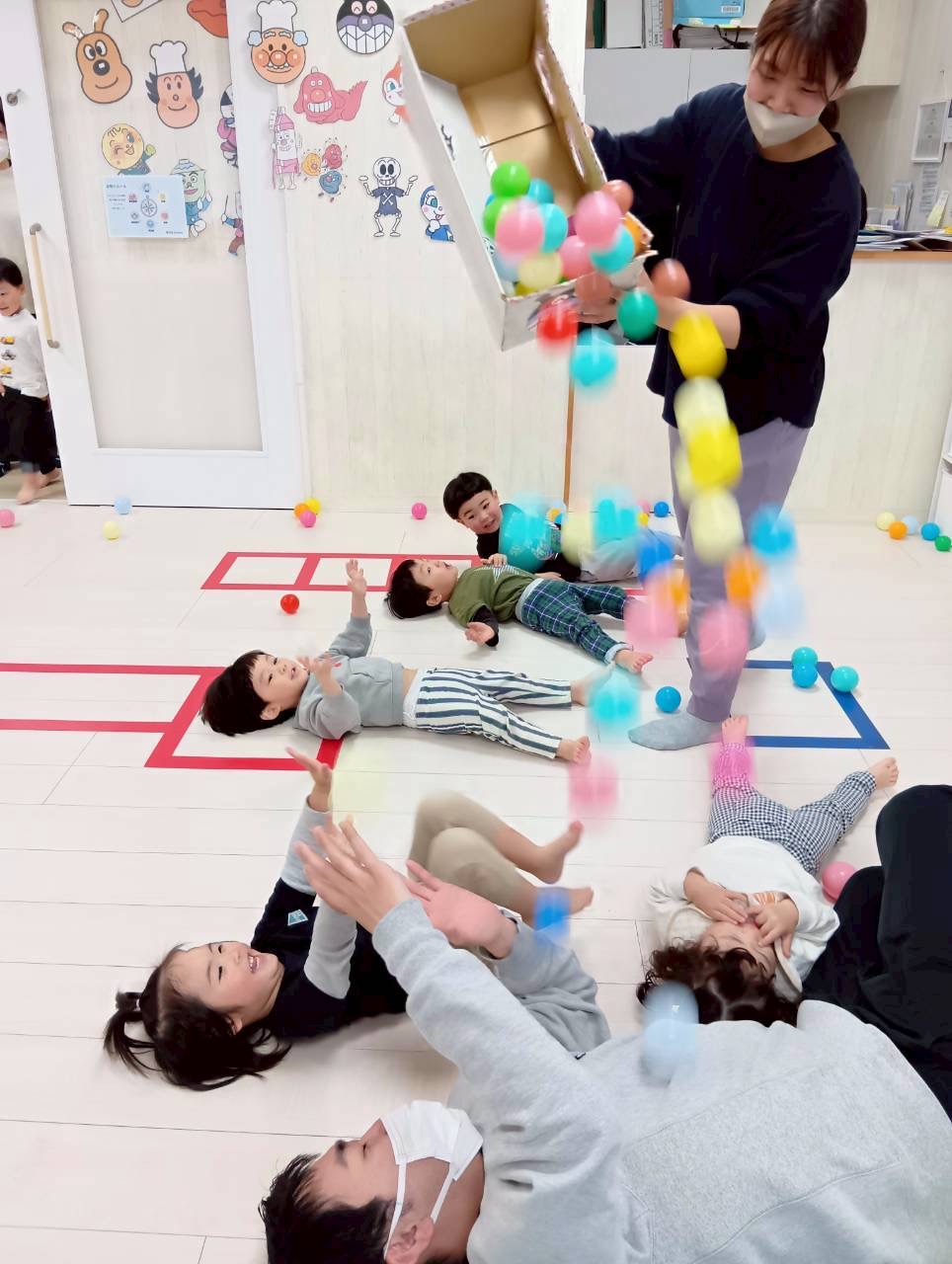 それからみんなの大好きなボールが降ってくる遊びをしました✨