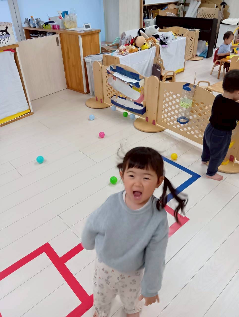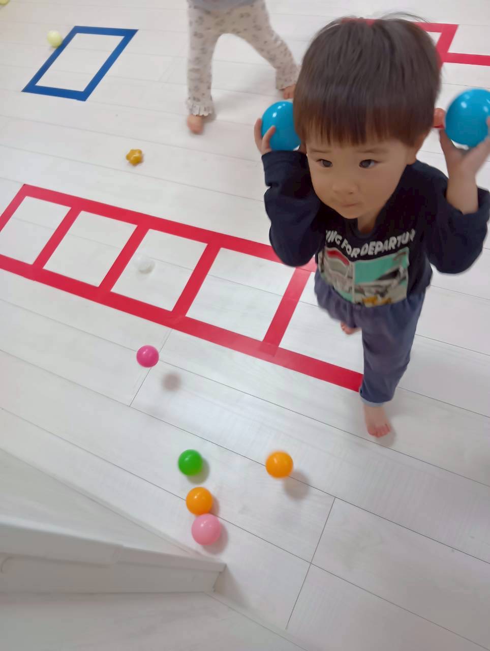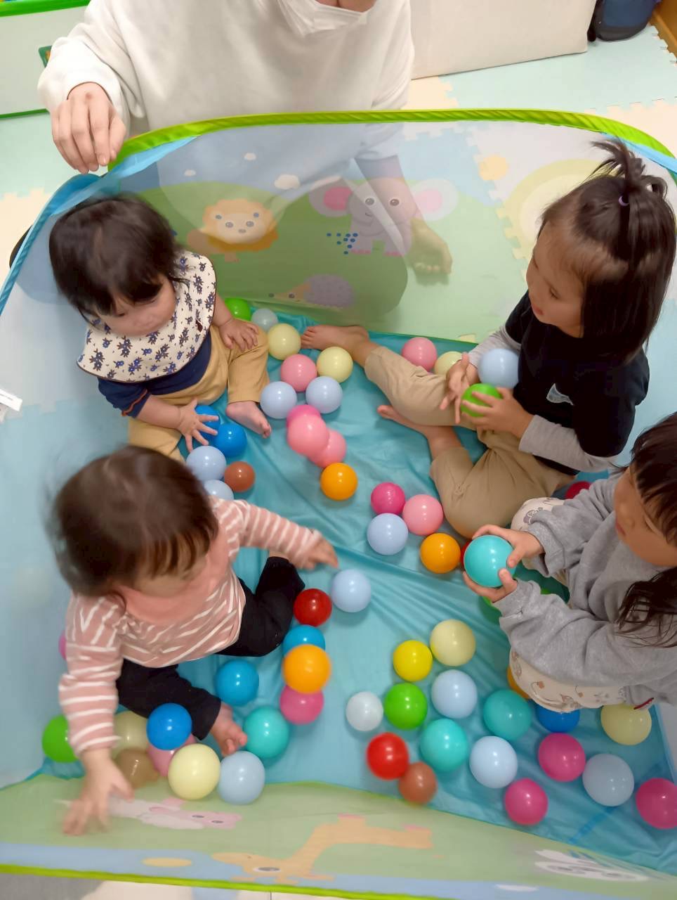それからみんなの大好きなボールが降ってくる遊びをしました✨