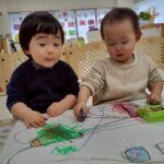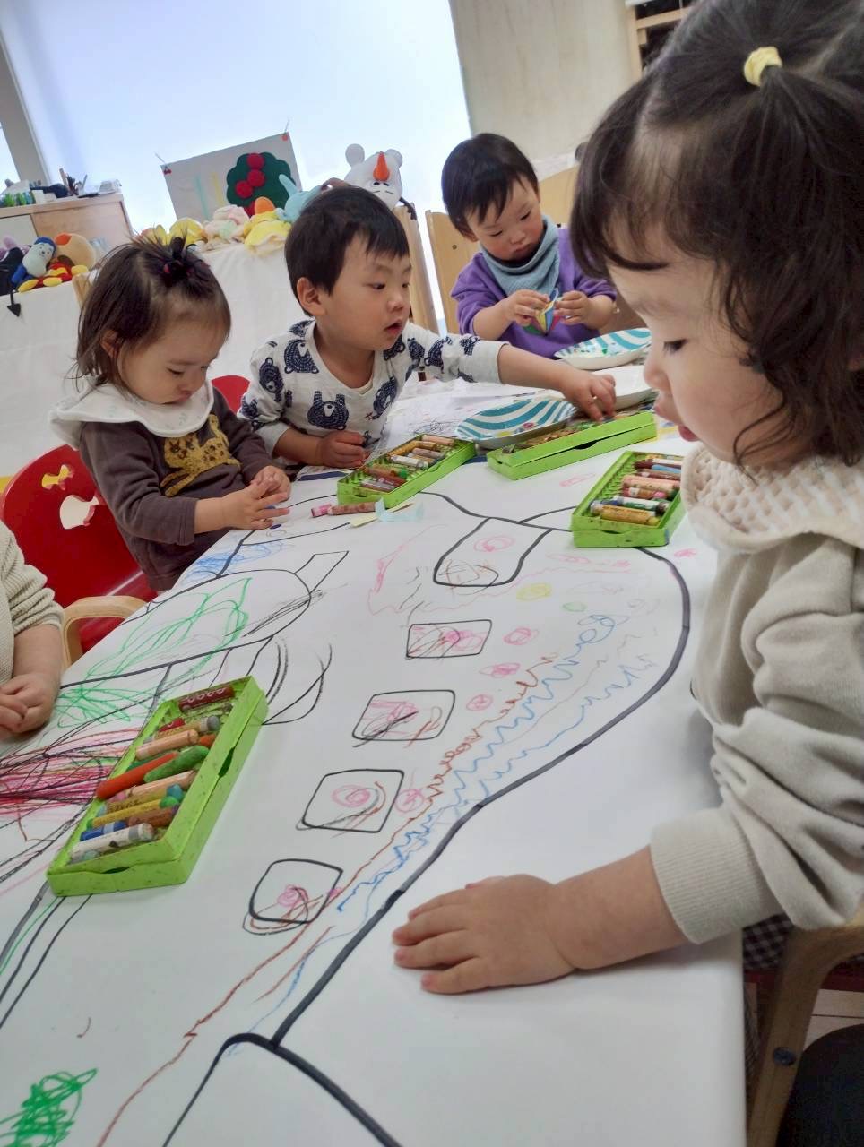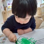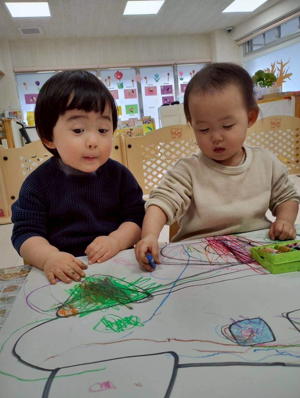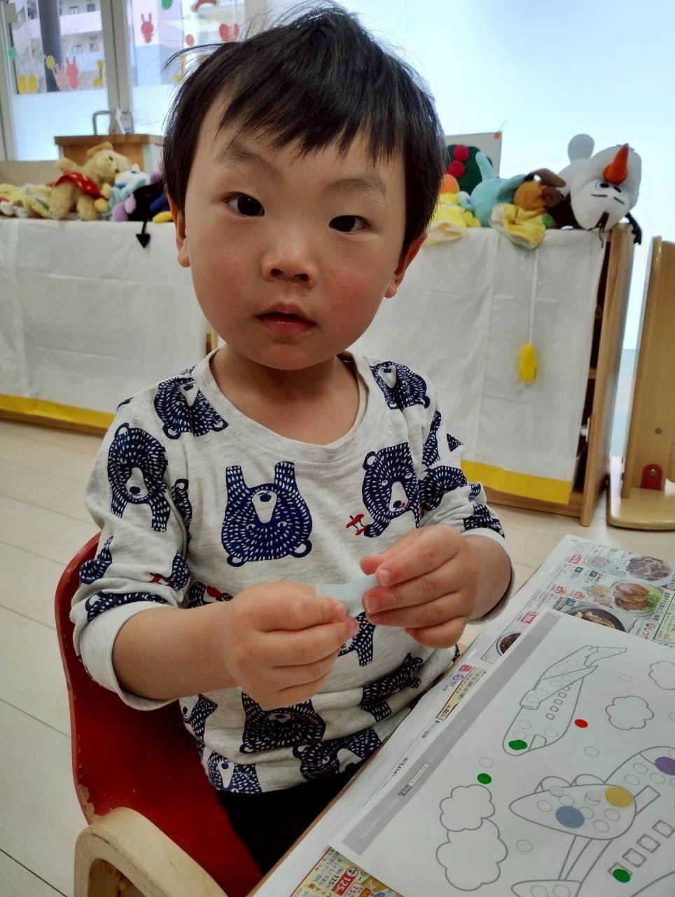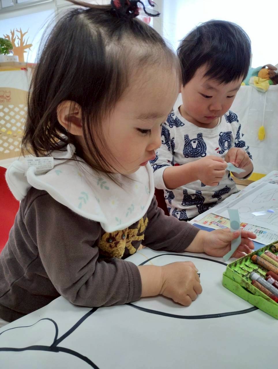 今日はお部屋の中でお絵描きやシール貼りをしましたよ✨