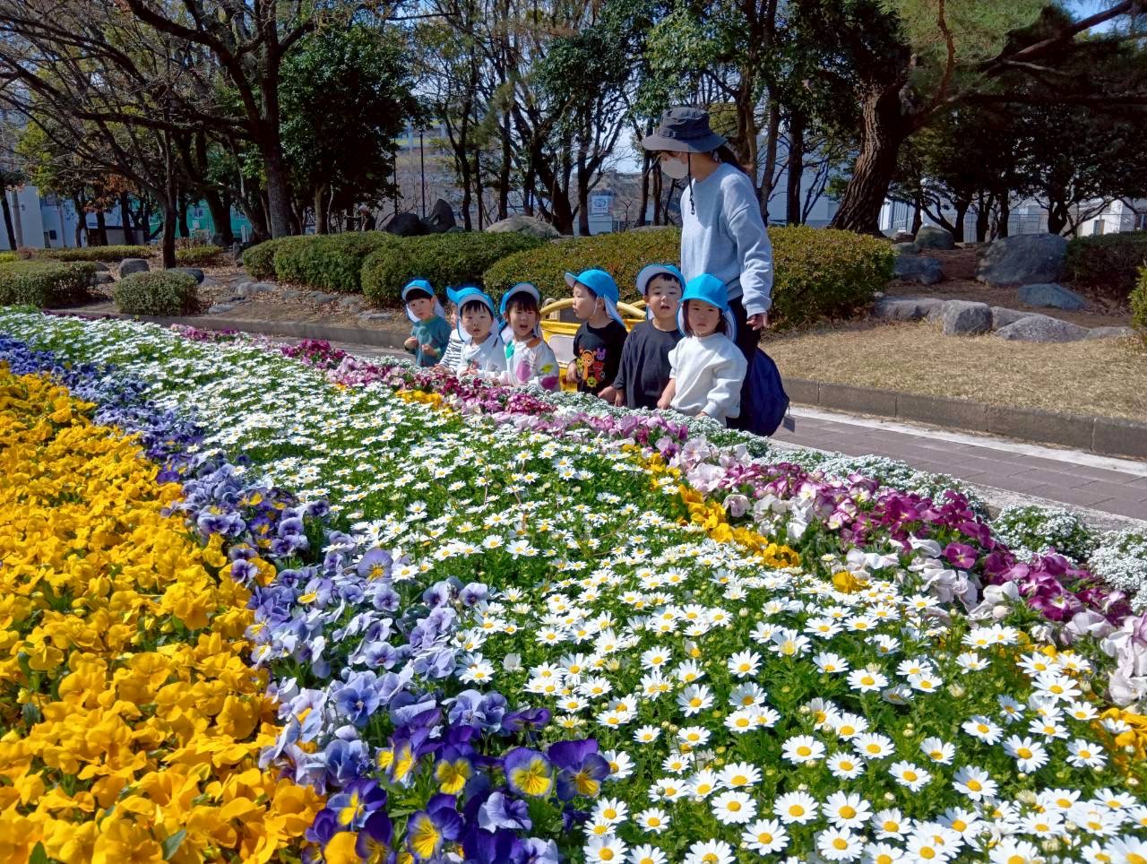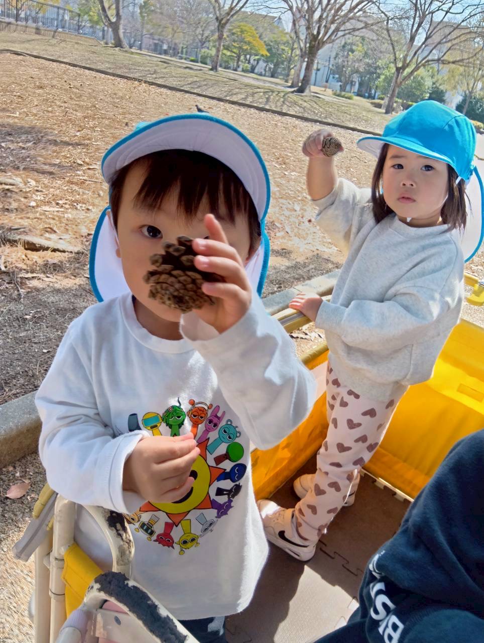 最後は公園に行き、綺麗なお花を見たり、落ち葉やまつぼっくりなど自然に触れました🌟